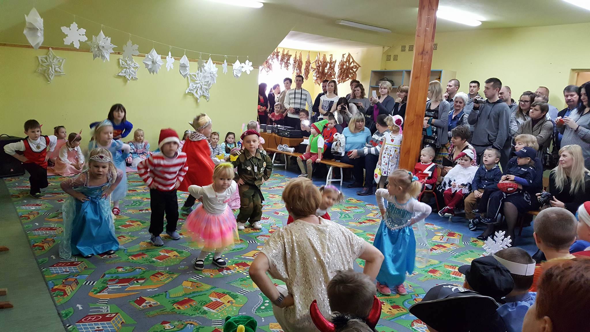 14.01.2017 r. odbyła się w przedszkolu Choinka. Na początku dzieci z grupy ,,Pszczółki” zaprezentowały część artystyczną pt ,,Spotkanie dwunastu miesięcy”. Następnie, dzieci uczęszczające do koła tanecznego ,,W kręgu tańca i muzyki” zaprezentowały poznane w ciągu pierwszego semestru układy choreograficzne do wybranych tworów. Zwieńczeniem przedstawienia było wspólne zaśpiewanie ,,Kolędy na nowy rok”. Dzieci zostały nagrodzone gromkimi brawami. Po wspaniałej wspólnej zabawie przybył do nas Święty Mikołaj, wyczekany przez nasze przedszkolaki, z wieloma podarkami.  Wszyscy udaliśmy się na mały poczęstunek w klasach, po którym mieliśmy okazję pobawić się w rytmach karnawałowej muzyki. Dzieci wyglądały czarująco przenosząc nas w krainę bajek. Oprócz księżniczek na balu pojawiła się cała gama postaci bajkowych. Mogliśmy podziwiać spaidermanów, batmanów, żołnierzy, policjantów oraz liczne zwierzątka: pszczółki, biedronki, motylki, bociana.