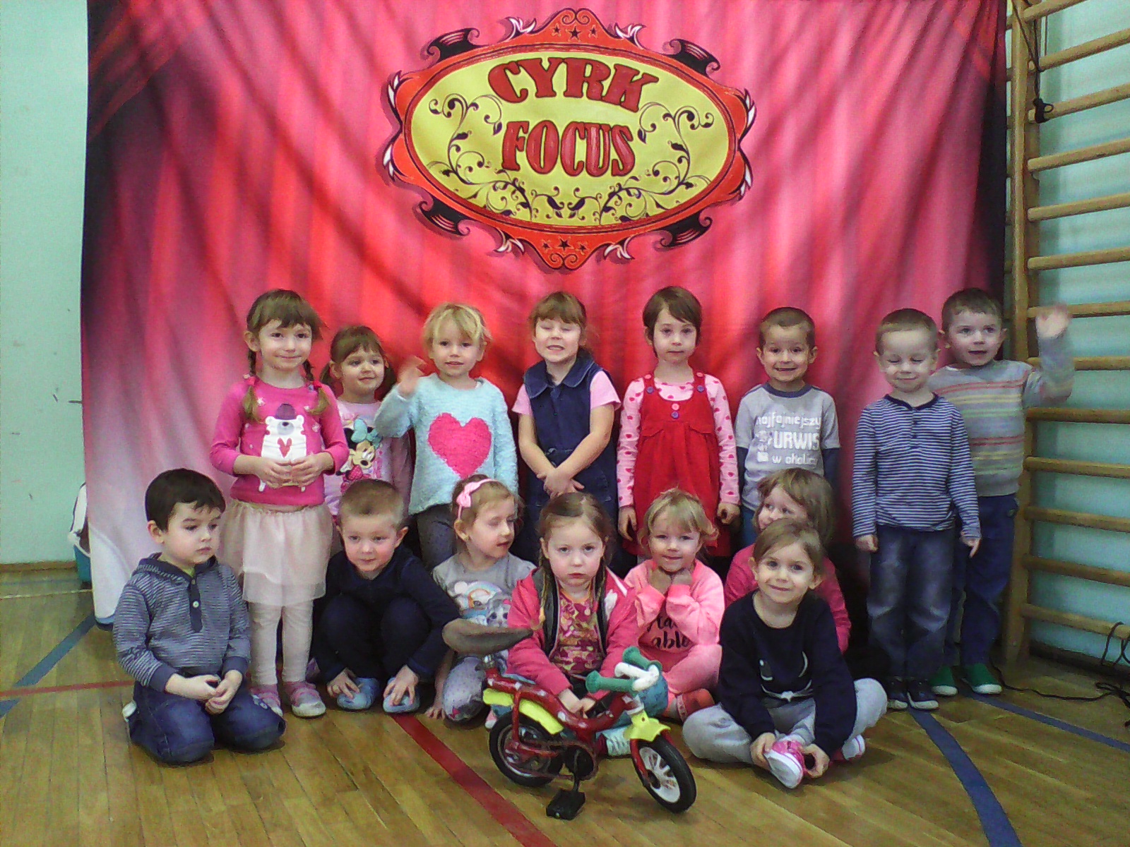 W środę 1 lutego 2017 r. zawitali do naszego przedszkola artyści z cyrku „Focus”. Zaprezentowali program artystyczny zawierający elementy żonglerki, tresury zwierząt, akrobacji, a także sztuki iluzji. Wszystkie przedszkolaki z zapartym tchem śledziły występy cyrkowców. Klaun Maniuś wyczarował z kapelusza królika, zaprezentował zielonego legwana oraz uroczego psa – pudelka wykonującego różne akrobacje: skoki przez przeszkody, turlanie się czy taniec. Nasz gość ubrany w kolorowy strój, zabawiał dzieci tak, że niektóre ze śmiechu chwytały się za brzuszki.