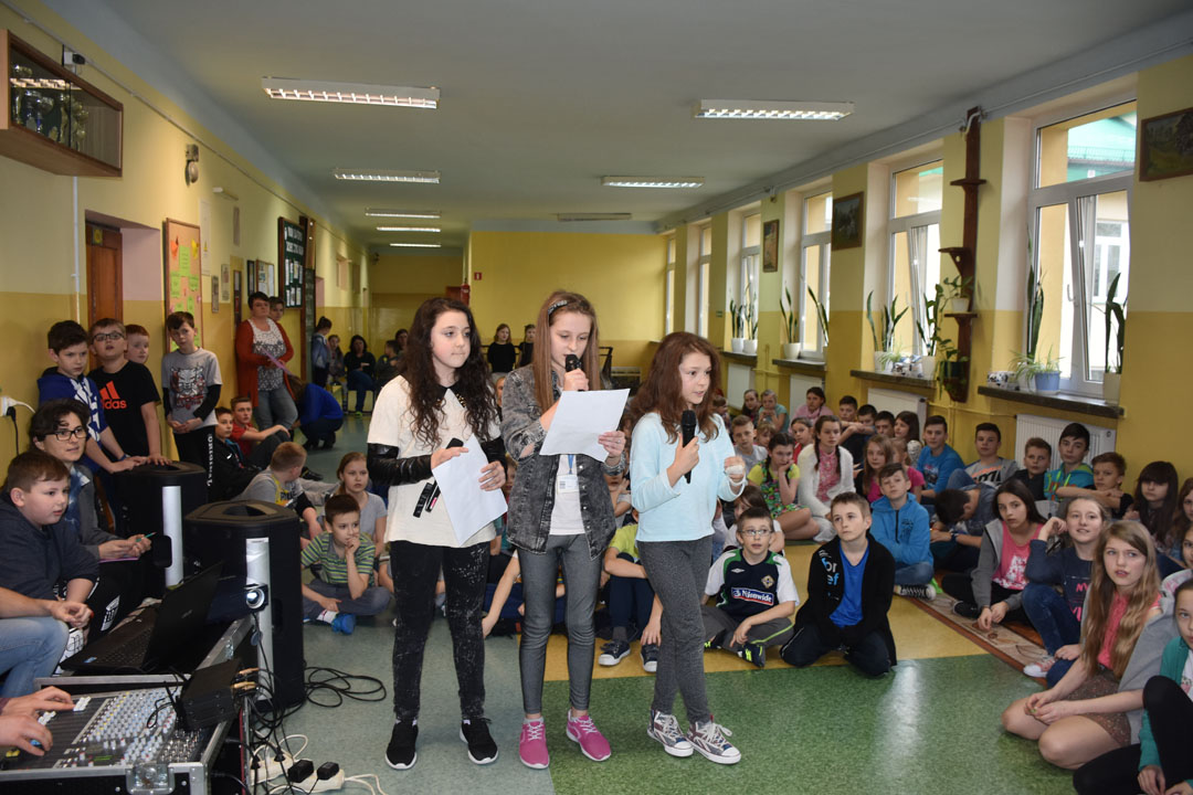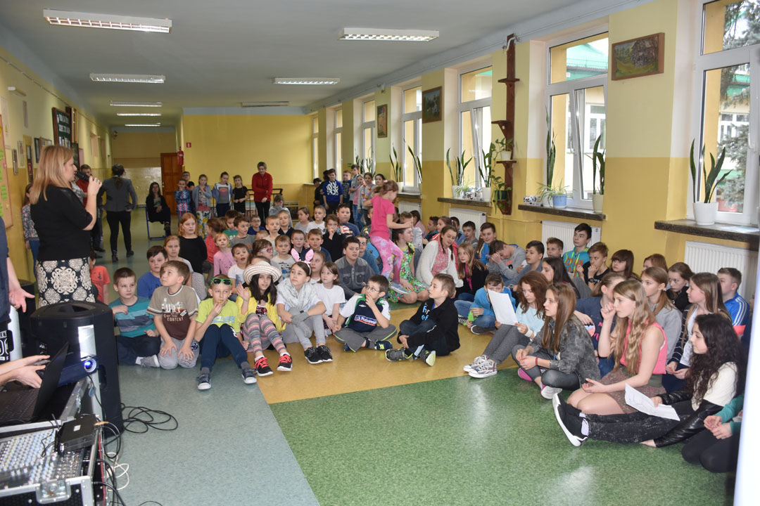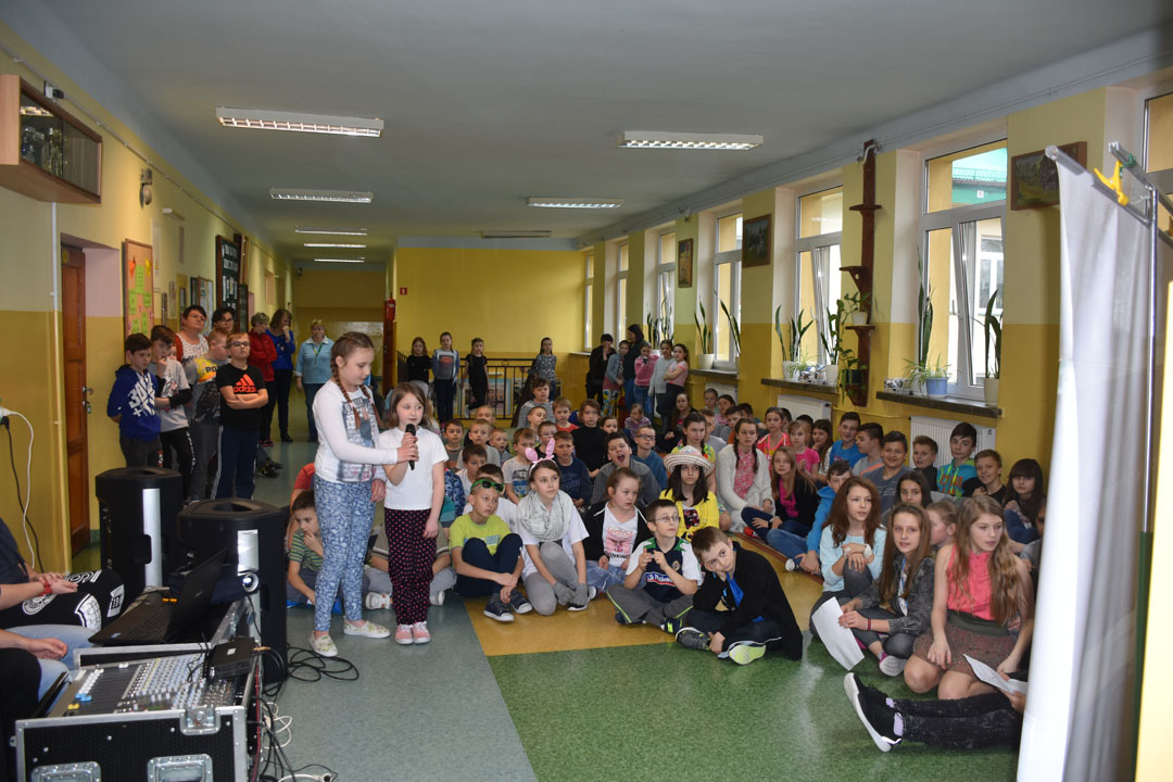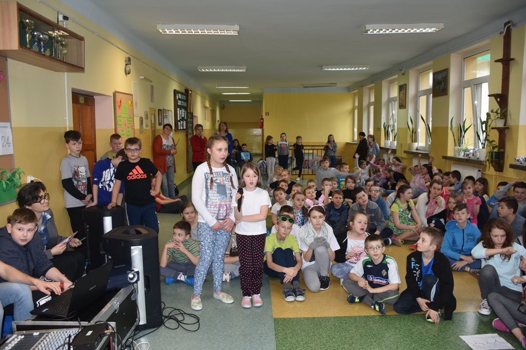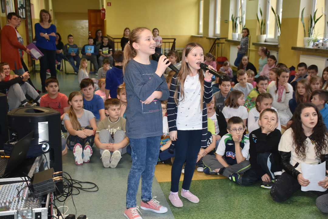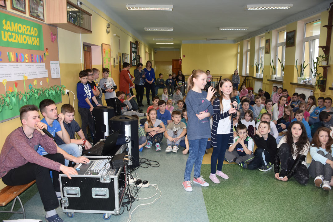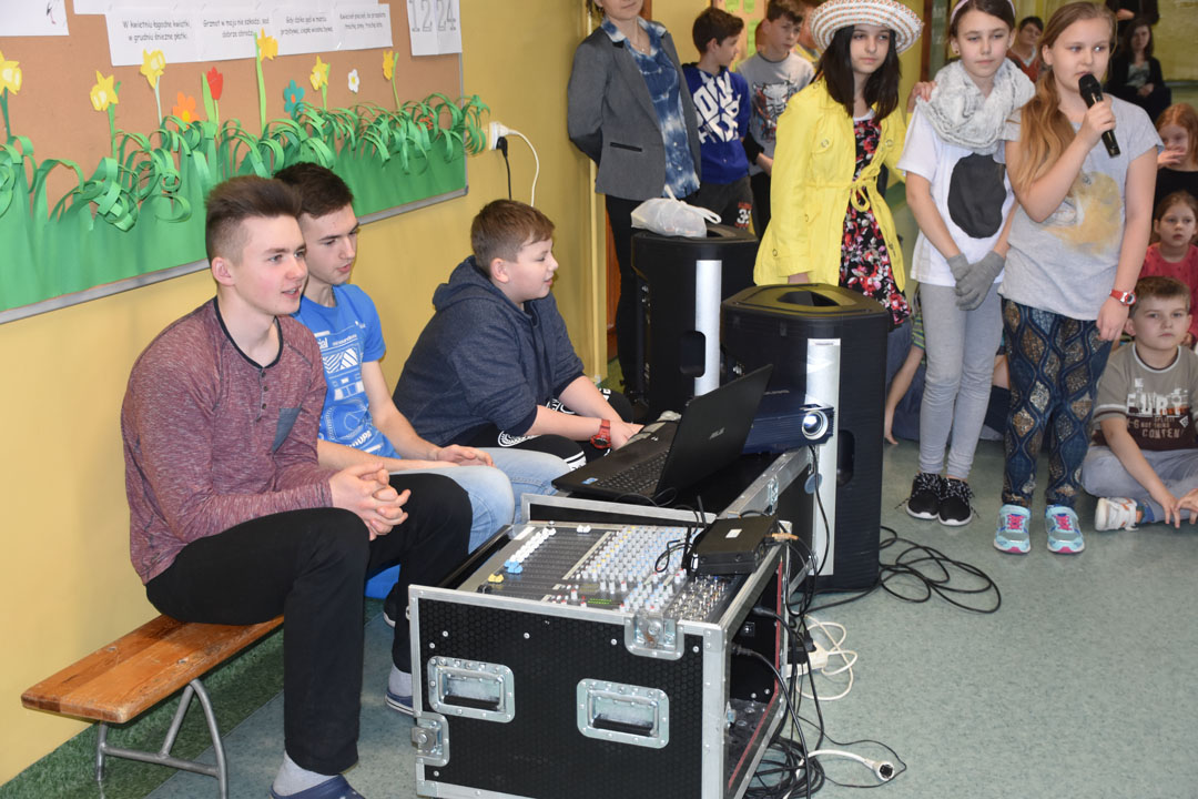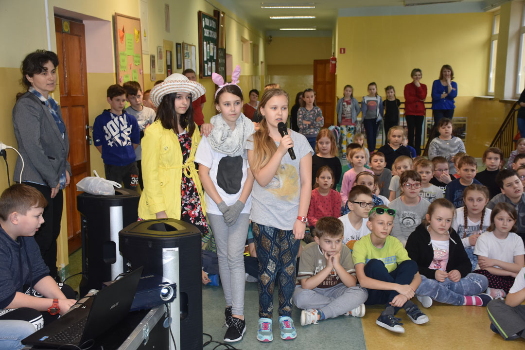 Chętni uczniowie brali udział w konkursie karaoke i prezentowali aranżacje wiosennych przebojów. Uczestnicy wszystkich konkursów otrzymali skromne słodkie nagrody.