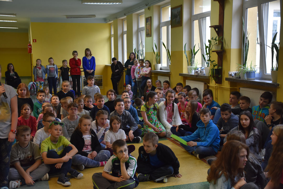 Pierwszy konkurs dotyczył wiedzy o wiośnie. Poszczególne klasy reprezentowane były przez 3-osobowe drużyny, a konkurs przygotowały i przeprowadziły uczennice z klasy IV a. W zaciekłej rywalizacji wygrała drużyna z klasy V. Uczniowie otrzymali dyplomy i skromne nagrody.