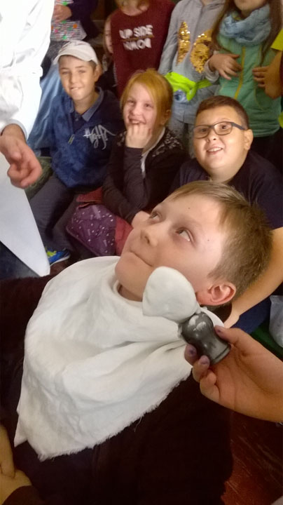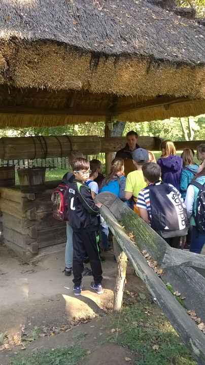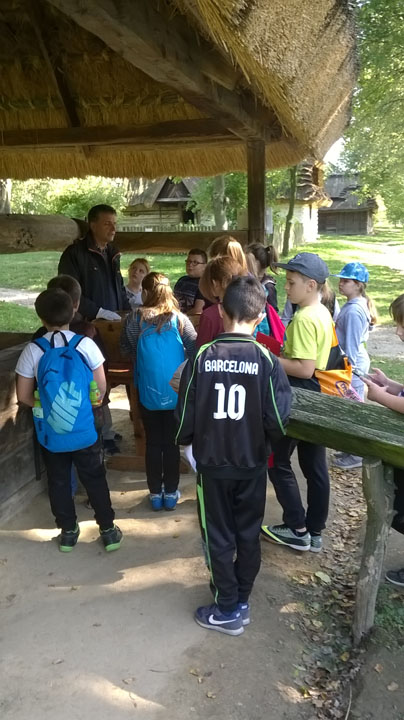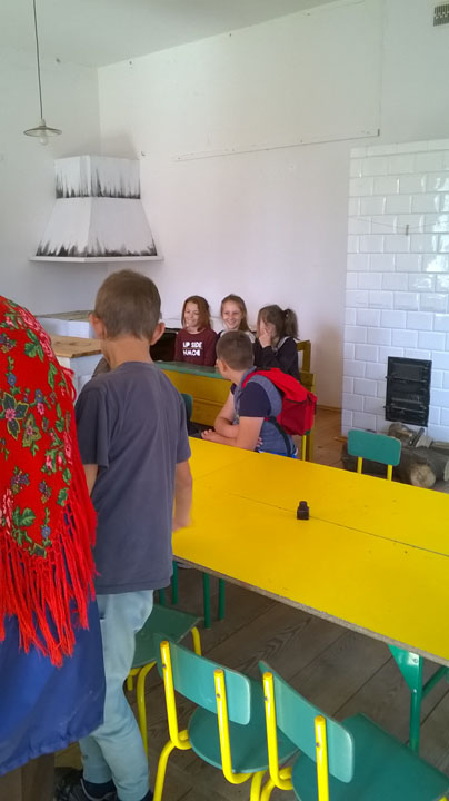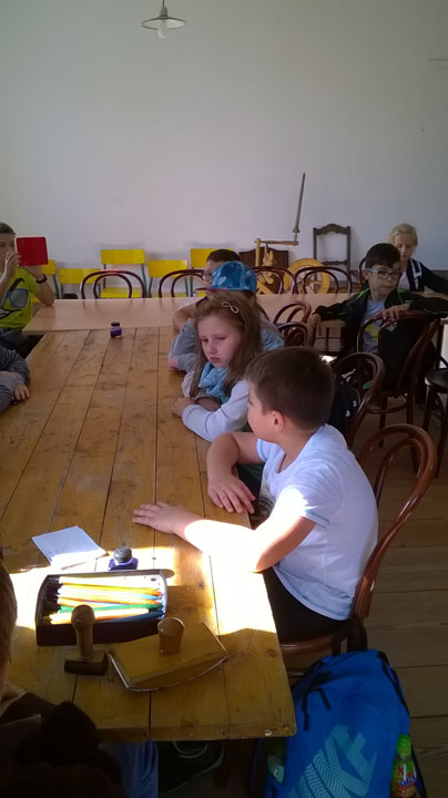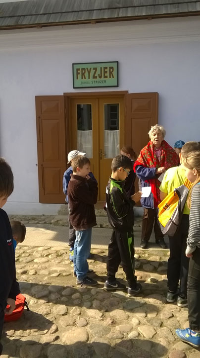 Muzeum Wsi Lubelskiej to jedno z miejsc, które rokrocznie odwiedzają uczniowie naszej szkoły. W tym roku wyjazd odbył się 27 września, a w wyprawie w przeszłość polskiej wsi uczestniczyli młodzi miłośnicy historii z klas 4, 5 i 6. Ścieżki wiodły przez XIX- wieczne miasteczko, olejarnię, kuźnię. Dzieci mogły zobaczyć, jak wypiekało się chleb ( i spróbować go!) i wykonać z bibuły piękne, kolorowe kwiaty. W budynku dawnej szkoły, siedząc przy starych, drewnianych ławach próbowały zaadresować kopertę piórem (stalówka na obsadce!). Przy studni, która niegdyś znajdowała się w centrum miasteczek czy wsi, spotkały wędrownego sprzedawcę różnych drobiazgów. W, na pozór, niewielkich walizkach, które nosił handlarz, znajdowały się metalowe grzebienie, ozdobne chusty, korale, ołówki, koronki i wiele, wiele innych przedmiotów pochodzących z dawnych czasów. Jednym z ciekawszych miejsc okazał się zabytkowy zakład fryzjerski wyposażony w meble pochodzące z dawnego zakładu znajdującego się w Dubience. Można tu było poczuć zapach wody brzozowej, zobaczyć narzędzia fryzjerskie i modne przed II wojną światową fryzury. Jednak najwięcej frajdy dało dzieciom „golenie” kolegi. To było to! Szczególną dociekliwością i wiedzą wykazał się Wojtek – uczeń klasy 4, który w nagrodę otrzymał małą podkowę wykutą i podarowaną grupie przez kowala na początku szlaku zwiedzania.