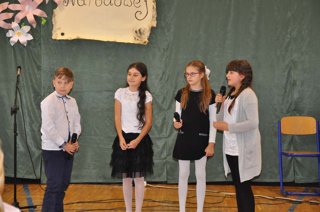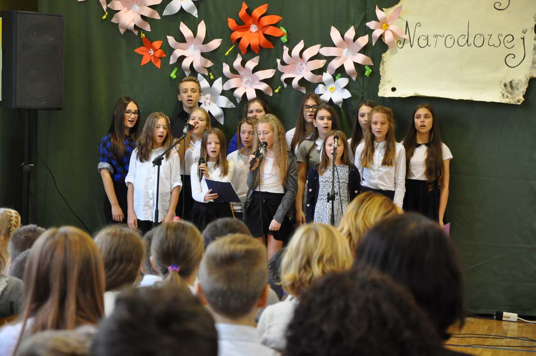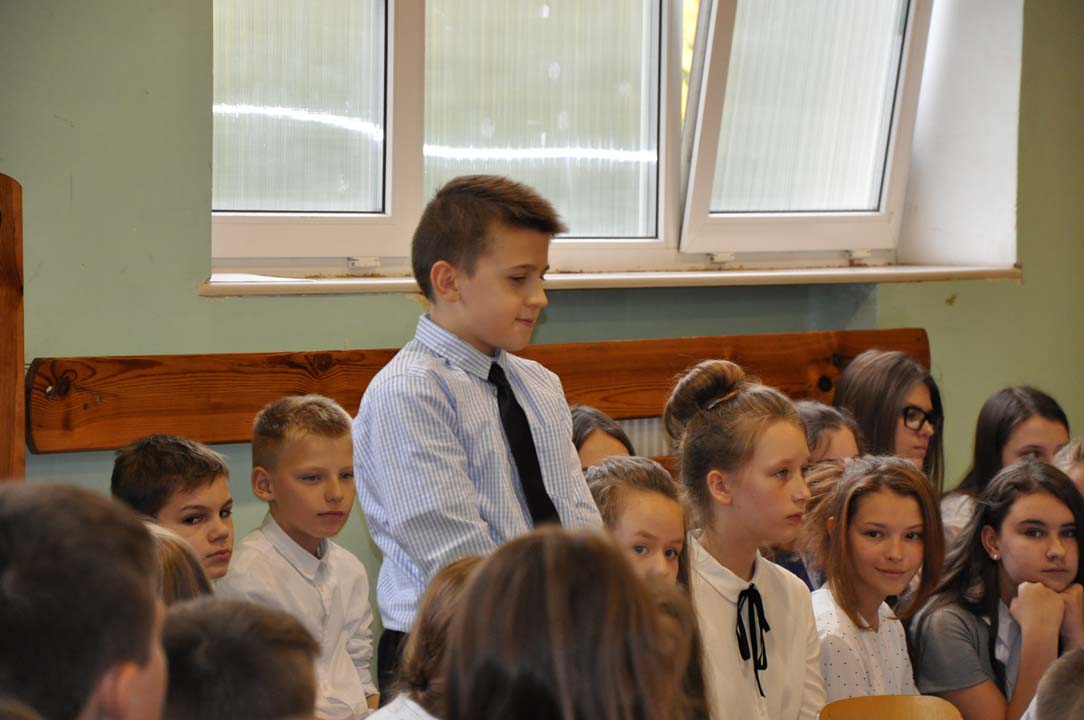 Na widowni zasiedli uczniowie klas IV – VII szkoły podstawowej i II – III gimnazjum. Wspólnie z zaproszonymi gośćmi, nauczycielami oraz pracownikami administracji i obsługi obejrzeli montaż słowno – muzyczny, który na długo zostanie w ich pamięci. Na twarzach oglądających można było dostrzec uśmiech, rozbawienie, ale i powagę, i zamyślenie. Rangę uroczystości podkreślały eleganckie stroje. Podsumowaniem akademii stały się ciepłe słowa pana dyrektora skierowane do całej społeczności szkolnej. Zapraszamy do galerii…