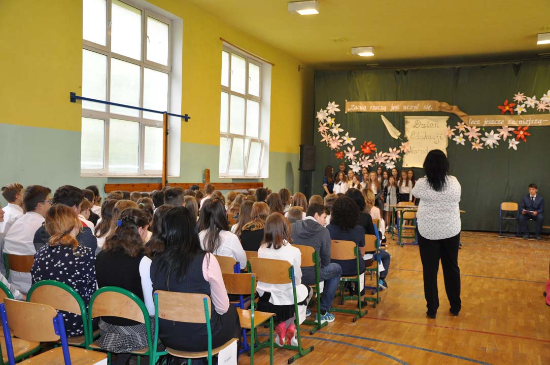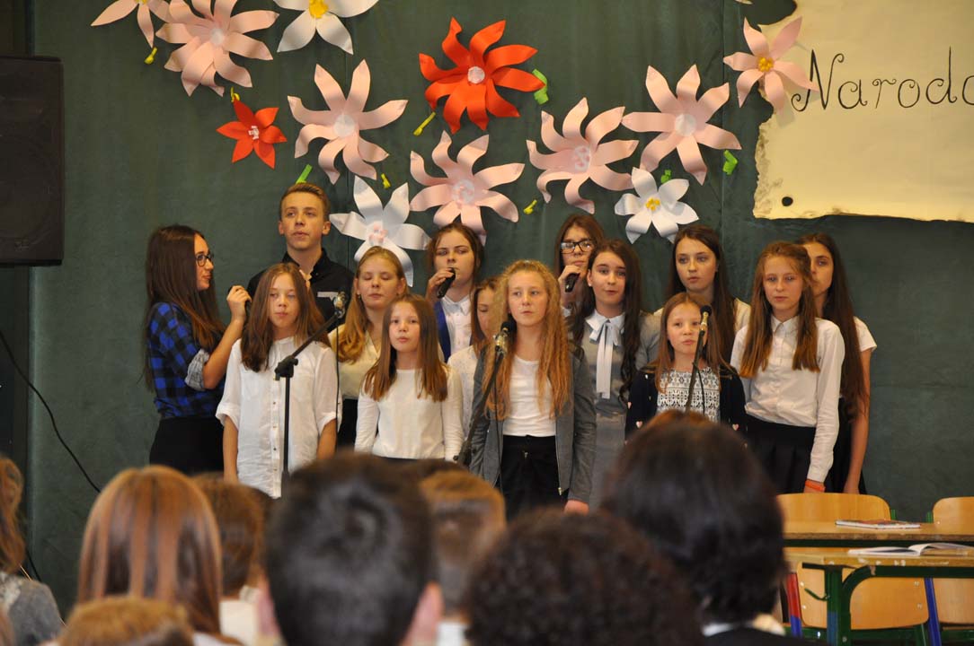 Na widowni zasiedli uczniowie klas IV – VII szkoły podstawowej i II – III gimnazjum. Wspólnie z zaproszonymi gośćmi, nauczycielami oraz pracownikami administracji i obsługi obejrzeli montaż słowno – muzyczny, który na długo zostanie w ich pamięci. Na twarzach oglądających można było dostrzec uśmiech, rozbawienie, ale i powagę, i zamyślenie. Rangę uroczystości podkreślały eleganckie stroje. Podsumowaniem akademii stały się ciepłe słowa pana dyrektora skierowane do całej społeczności szkolnej. Zapraszamy do galerii…