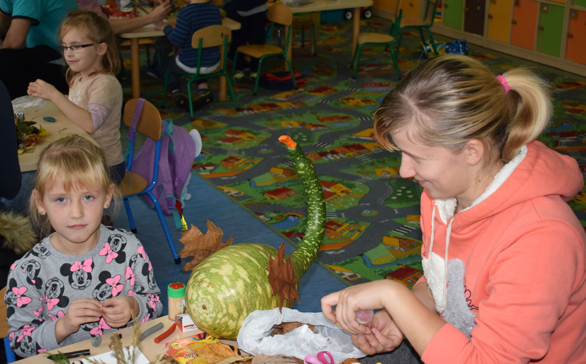 20 października 2017 r. w Punkcie Przedszkolnym w Siennicy Różanej swoje święto obchodził ziemniak. Była to okazja do zaproszenia całych rodzin, które z radością wykonywały ,,Stworki Potworki” z darów jakie przyniosła nam jesień. Wszystkie pracy przedszkolaków i ich opiekunów trafiły na wystawę cieszącą oko zarówno dzieci jak i wszystkich, którzy codziennie odwiedzają Punkt Przedszkolny. Dużą atrakcją było ognisko, zorganizowane przez aktywnie wspierających rodziców. Można było zjeść kiełbaskę oraz pieczonego ziemniaka, którego z apetytem próbowały dzieci oraz dorośli. Rodzice i dziadkowie wspominali czasy, kiedy często organizowano ogniska, które były okazją do rozmów i wspaniałego spędzania czasu w gronie najbliższych- rodziny i przyjaciół. Właśnie taki cel przyświecał naszemu spotkaniu: wspólne rozmowy, wspomnienia, integracja dzieci z rodziną i nauczycielkami, spędzenie mile czasu na świeżym powietrzu.