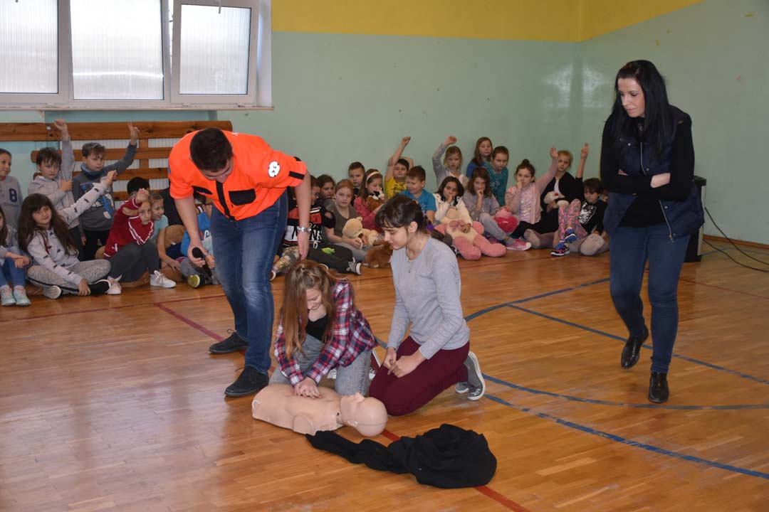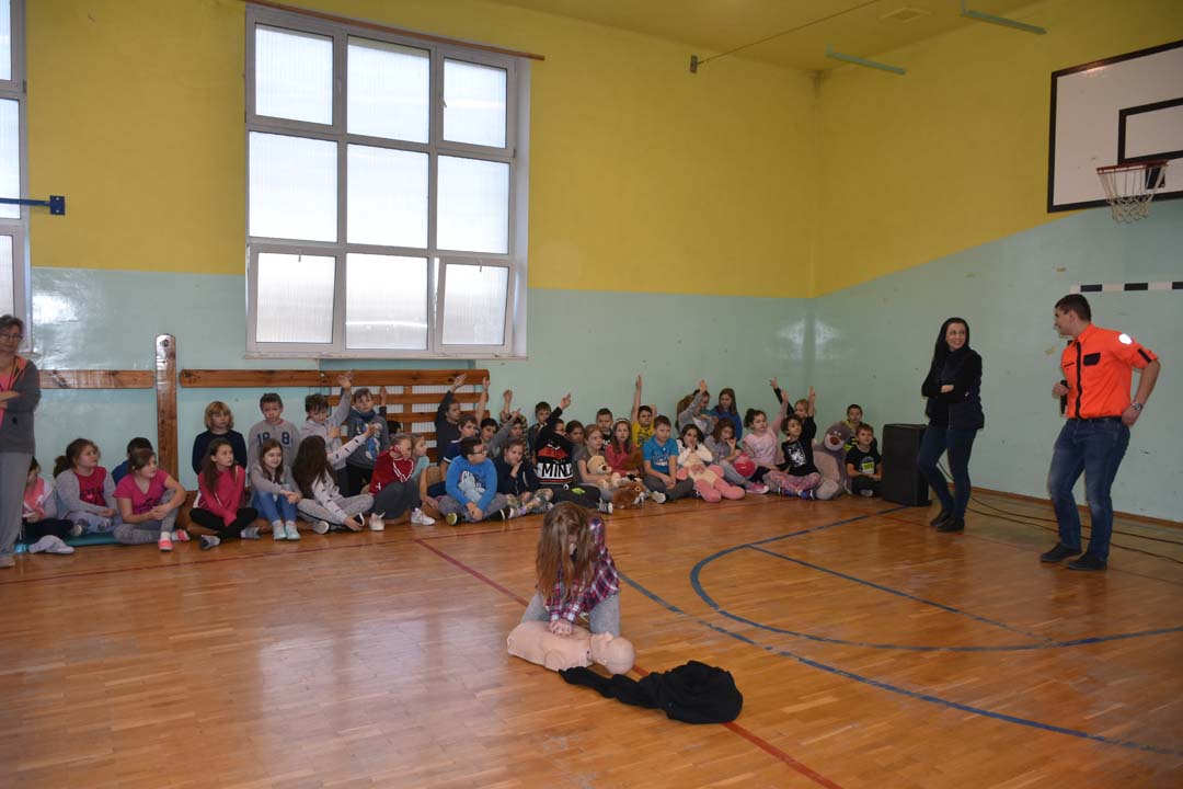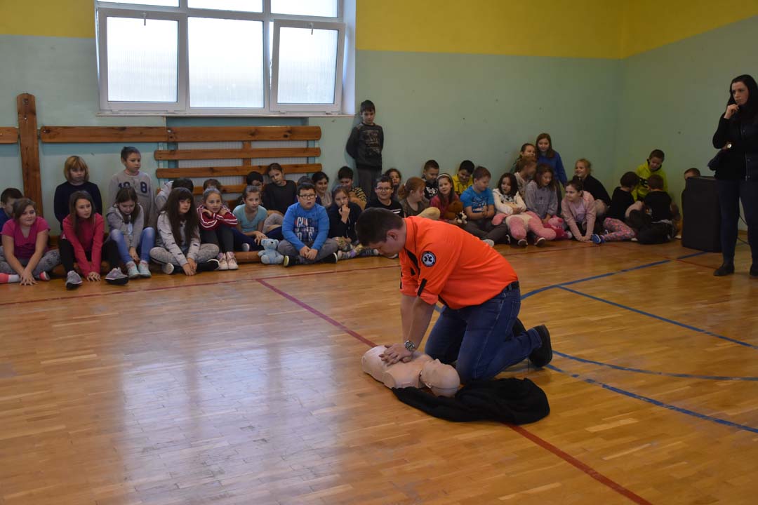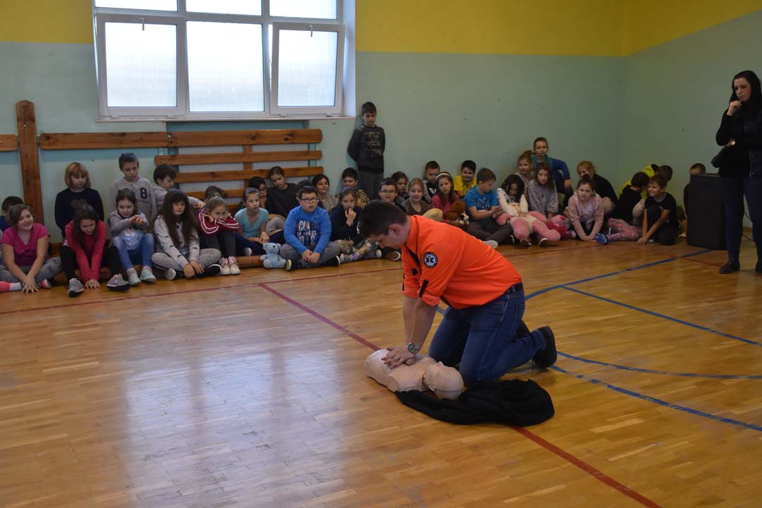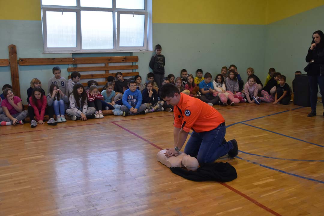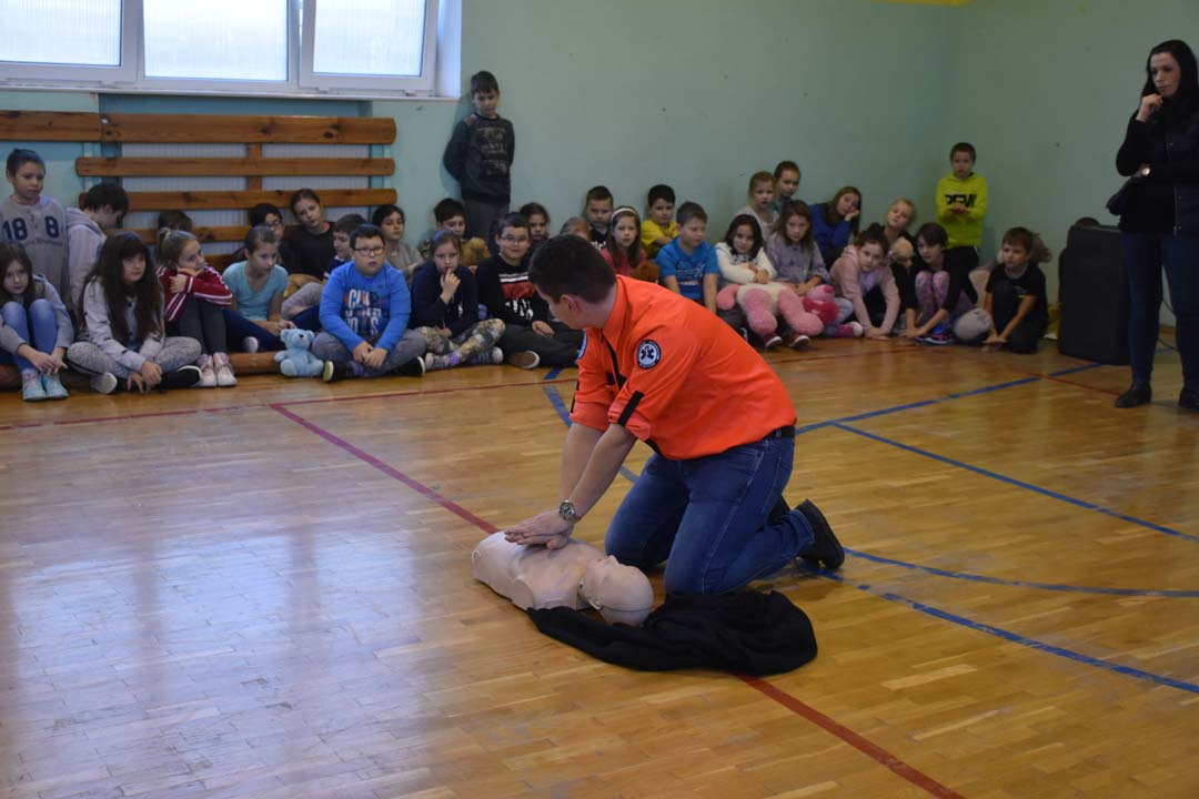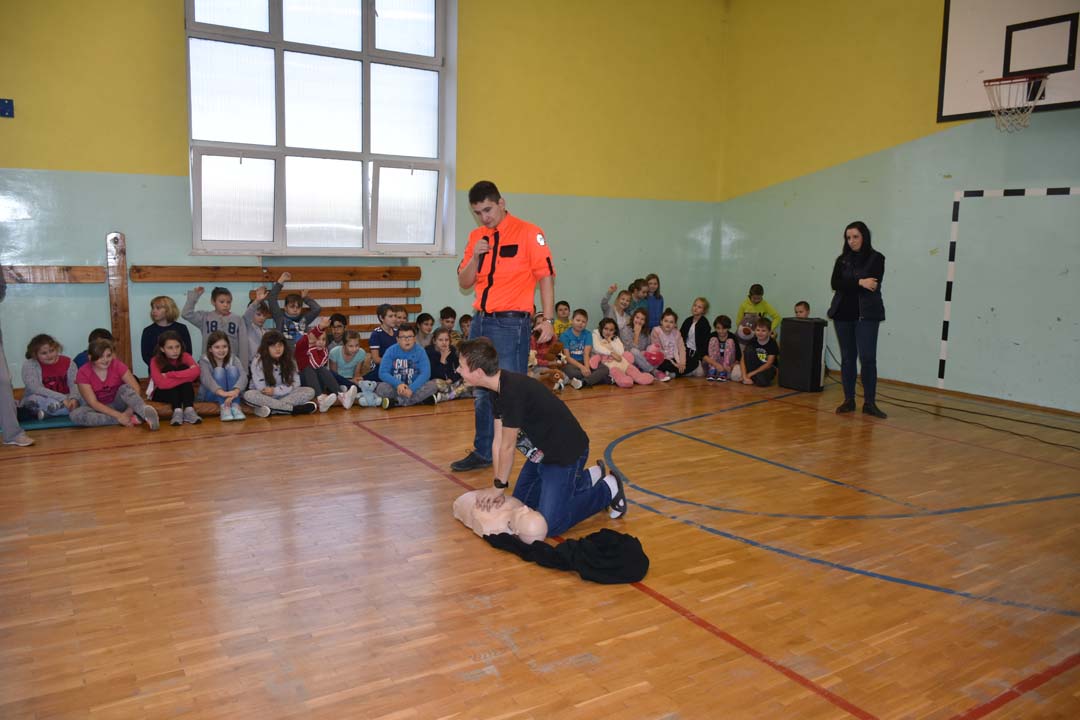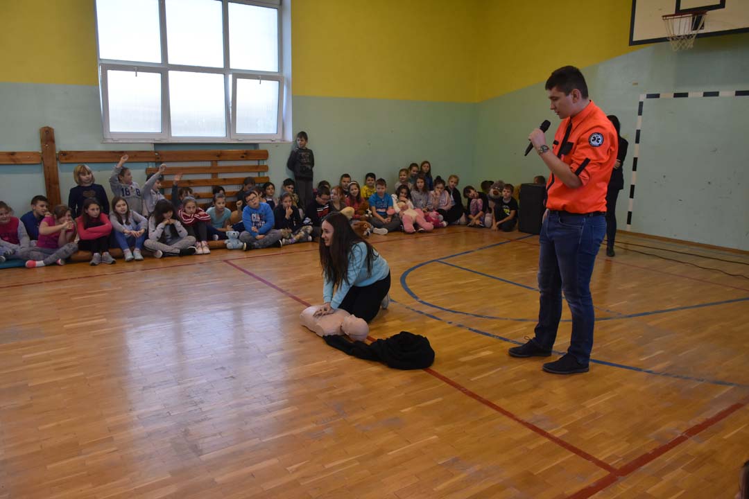 Jak ważne jest udzielenie pierwszej pomocy przed pojawieniem się ratowników, wie każdy. Jednak jak należy postępować w sytuacji zagrożenia, to wiedza, którą warto utrwalać. Dlatego 24 listopada gościł w naszej szkole ratownik medyczny ze stacji ratownictwa z Chełma. W formie warsztatowej poprowadził zajęcia, podczas których uczniowie starszych klas szkoły podstawowej i II gimnazjalnej mogli wykazać się wiedzą i umiejętnościami z zakresu udzielania pierwszej pomocy. Warsztaty łączyły wiedzę teoretyczną z praktycznymi umiejętnościami. Młodzież przećwiczyła ułożenie poszkodowanego w pozycji bezpiecznej oraz reanimację oddechowo-krążeniową. Wszyscy chętnie udzielali odpowiedzi na pytania, które pojawiały się podczas warsztatów. Zajęcia były połączeniem zabawy z przekazaniem bardzo istotnej wiedzy, która może kiedyś uratować czyjeś życie.