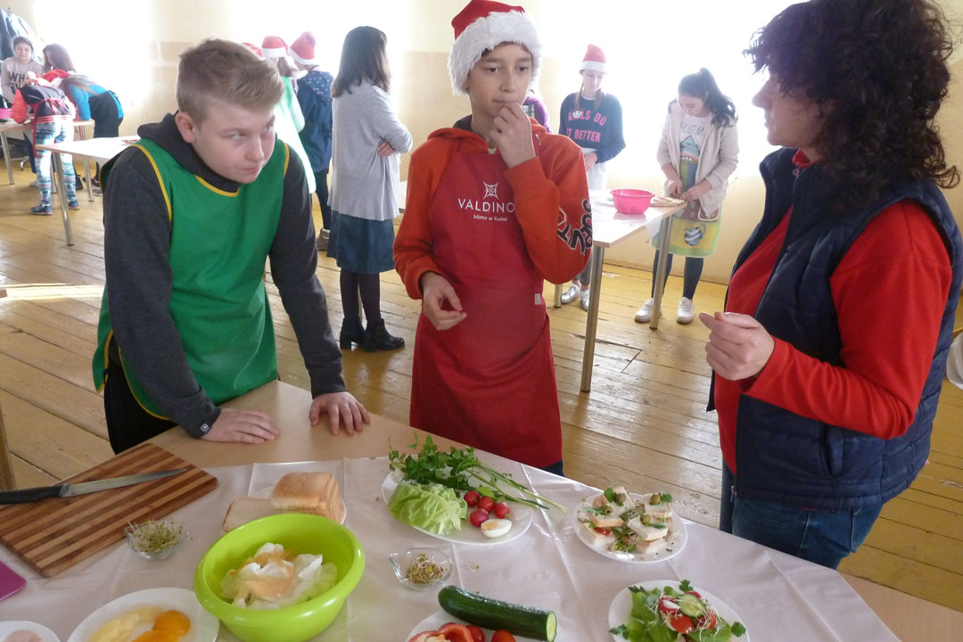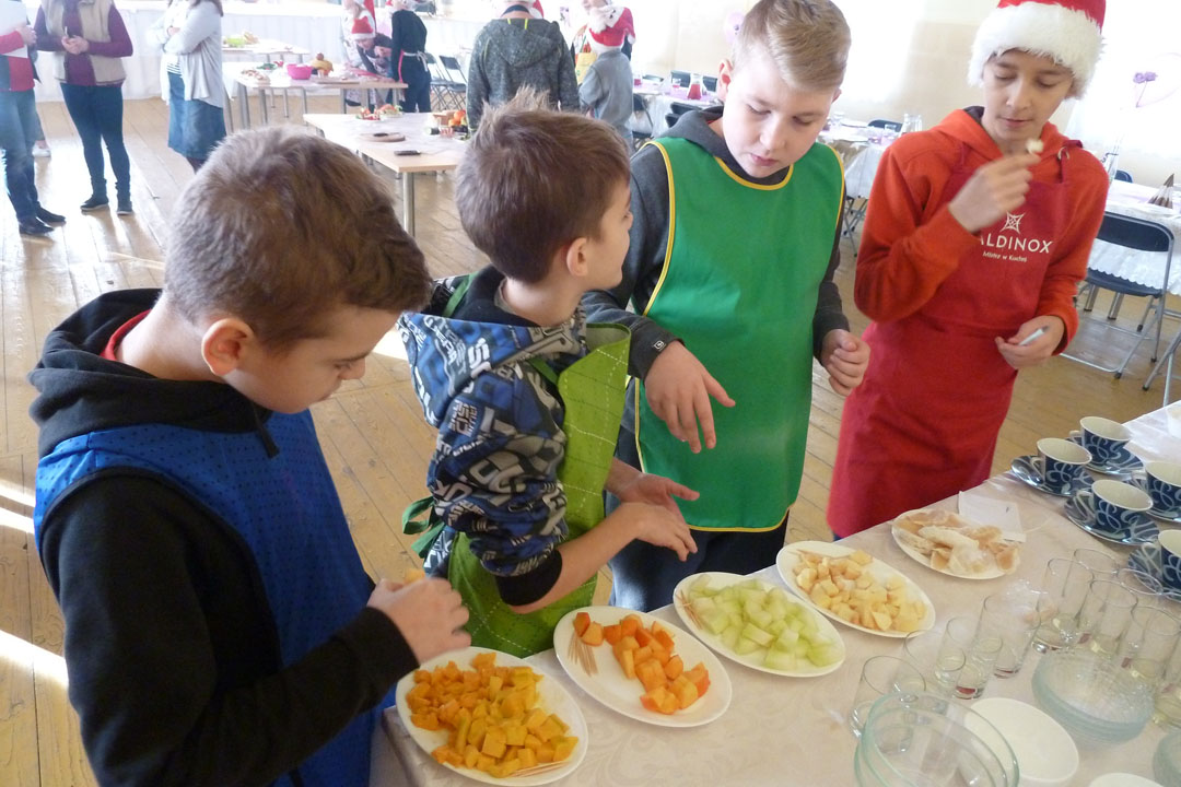 8 grudnia 2017 r. jako uczniowie klasy VI uczestniczyliśmy w Mikołajkowych warsztatach kulinarnych, które odbyły się w Żdżannem. Celem naszego wyjazdu było poznanie zasad racjonalnego odżywiania, propagowanie zdrowej żywności oraz stworzenie przyjaznej atmosfery wśród nas – uczniowskiej braci . Podczas trwania warsztatów pracowaliśmy w grupach, a naszym zadaniem było przygotowanie koreczków, kanapek, sałatki owocowej oraz soku. Każda grupa wykazała się dużą inwencją twórczą, a przygotowane przez nas zestawy możecie obejrzeć w galerii. Dodatkową atrakcją, którą w tym dniu zorganizowali nam rodzice, była możliwość obejrzenia wyposażenia samochodu strażackiego oraz przejażdżka nim. Po powrocie czekała na nas pyszna zupa pomidorowa, którą przygotowała dla nas pani Wiesława Popik.