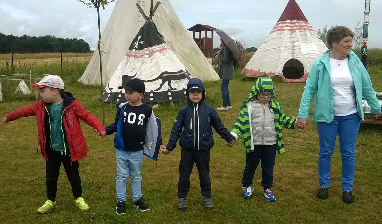 Dnia 26 czerwca 2018 roku przedszkolaki z Punktu Przedszkolnego w Siennicy Różanej wyruszyli na wyprawę do ,, Wioski Indiańskiej Topai” w Olszance. Dzieci miały okazję poznać niezwykłą kulturę i zwyczaje indiańskie oraz zobaczyć a nawet dotknąć przedmiotów, których używali dawni Indianie. Aktywnie spędzali czas korzystając z przygotowanych urządzeń takich jak: trampolina, dmuchańce, lina zjazdowa, labirynt ze słomy itp. Na dzieci czekały przyjaźnie nastawione zwierzęta: kucyk, koniki, osiołek i kózki. Na miejscu odbyły się warsztaty, na których dzieci wykonały własnoręcznie ozdoby indiańskie.