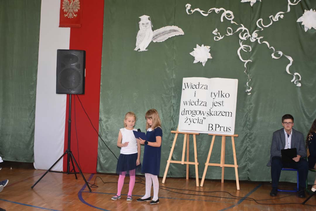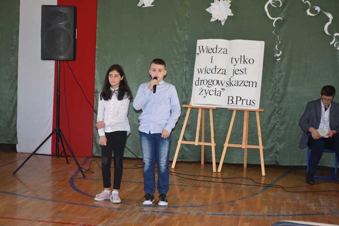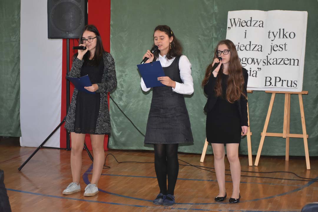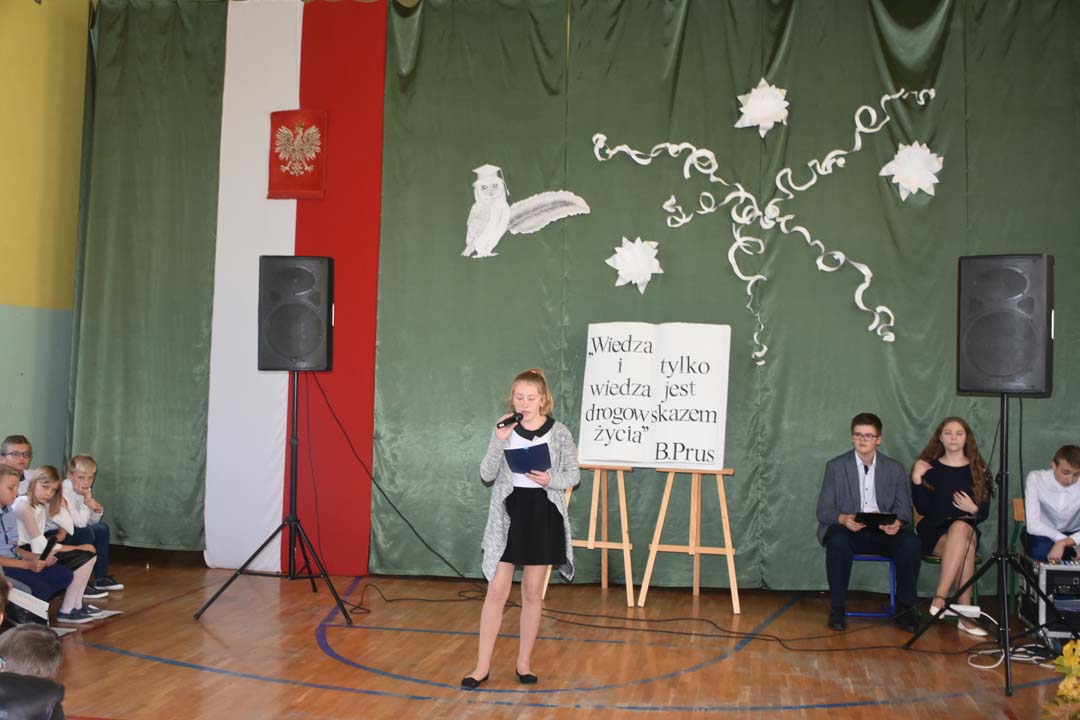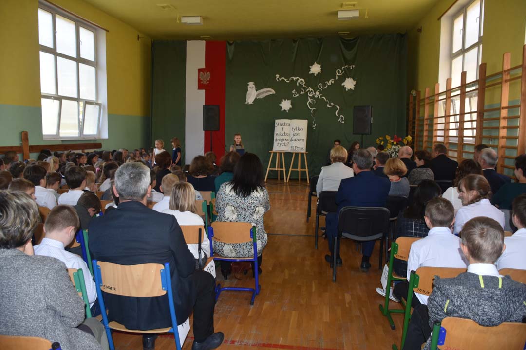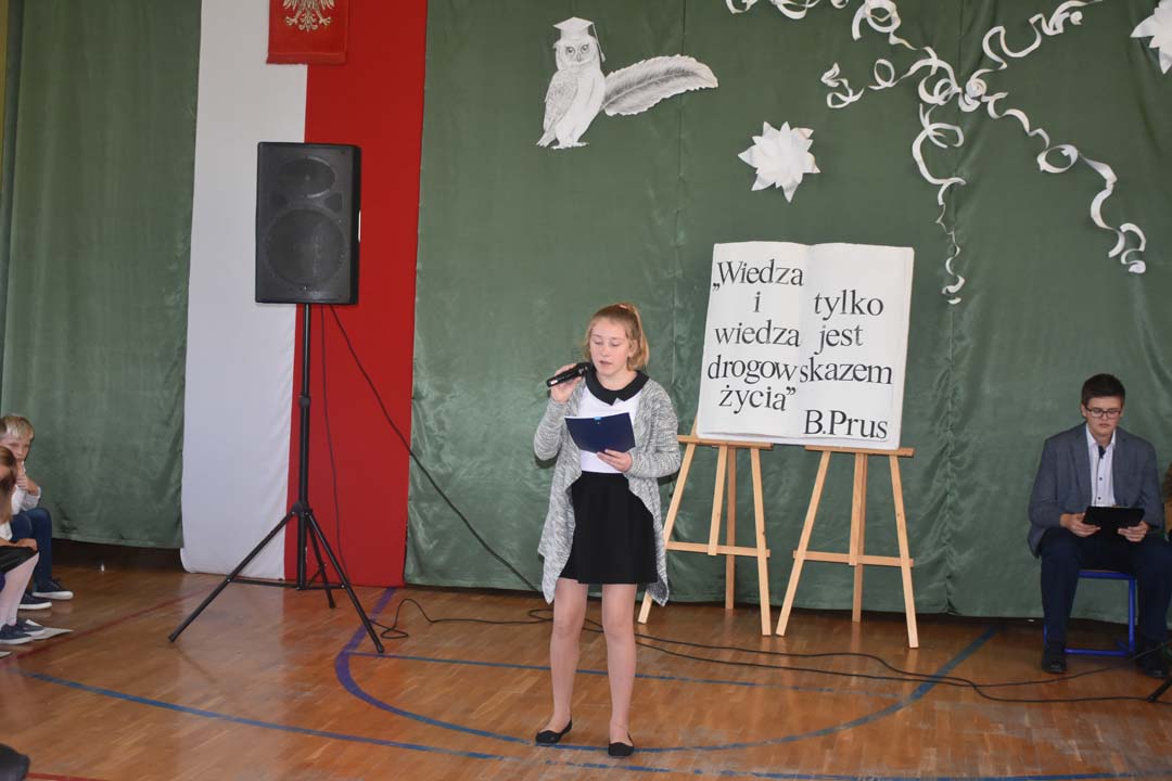 16 października obchodziliśmy w naszej szkole Dzień Edukacji Narodowej. W uroczystej akademii wzięła udział cała społeczność szkolna. Na widowni zasiedli uczniowie wszystkich klas szkoły podstawowej i gimnazjum, zaproszeni goście, nauczyciele oraz pracownicy administracji i obsługi. Wszyscy  obejrzeli montaż słowno – muzyczny przygotowany przez uczniów, którzy inspirowali się słowami Bolesława Prusa: „Wiedza i tylko wiedza jest drogowskazem życia”. Podsumowaniem uroczystości stały się ciepłe słowa pana dyrektora skierowane do wszystkich pracowników szkoły.