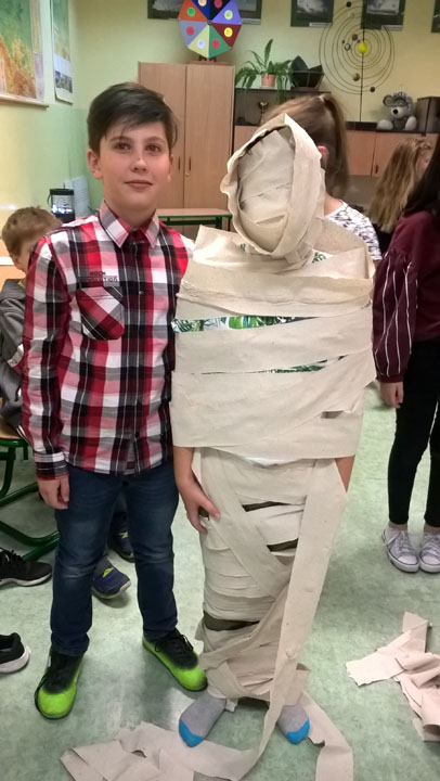 W dniu 30 października odbyła się w naszej szkole dyskoteka zorganizowana przez Samorząd Uczniowski. Motywem przewodnim dyskoteki było święto Halloween, obchodzone w krajach anglojęzycznych w dniu 31 października. Poza dobrą muzyką i tańcami czekały na uczniów liczne atrakcje, jak chociażby zabawa w robienie mumii na czas, taniec z miotłą, czy łowienie jabłek bez użycia rąk. Odważniejsi uczniowie wzięli udział w grze Halloweenowy Escape Room- czyli pokój zagadek w języku angielskim. Uczniowie w trzyosobowych grupach musieli rozwiązać łańcuch zadań, aby dotrzeć do ostatniego, które było tajnym szyfrem do uwolnienia z pokoju i odczarowania klątwy rzuconej przez Edu-Czarownicę. Wszystkie zadania nawiązywały do tradycji związanych z Halloween. Dyskoteka trwała od 16:00 do 19:00, a nad bezpieczeństwem uczniów czuwali jak zawsze nauczyciele i wychowawcy.