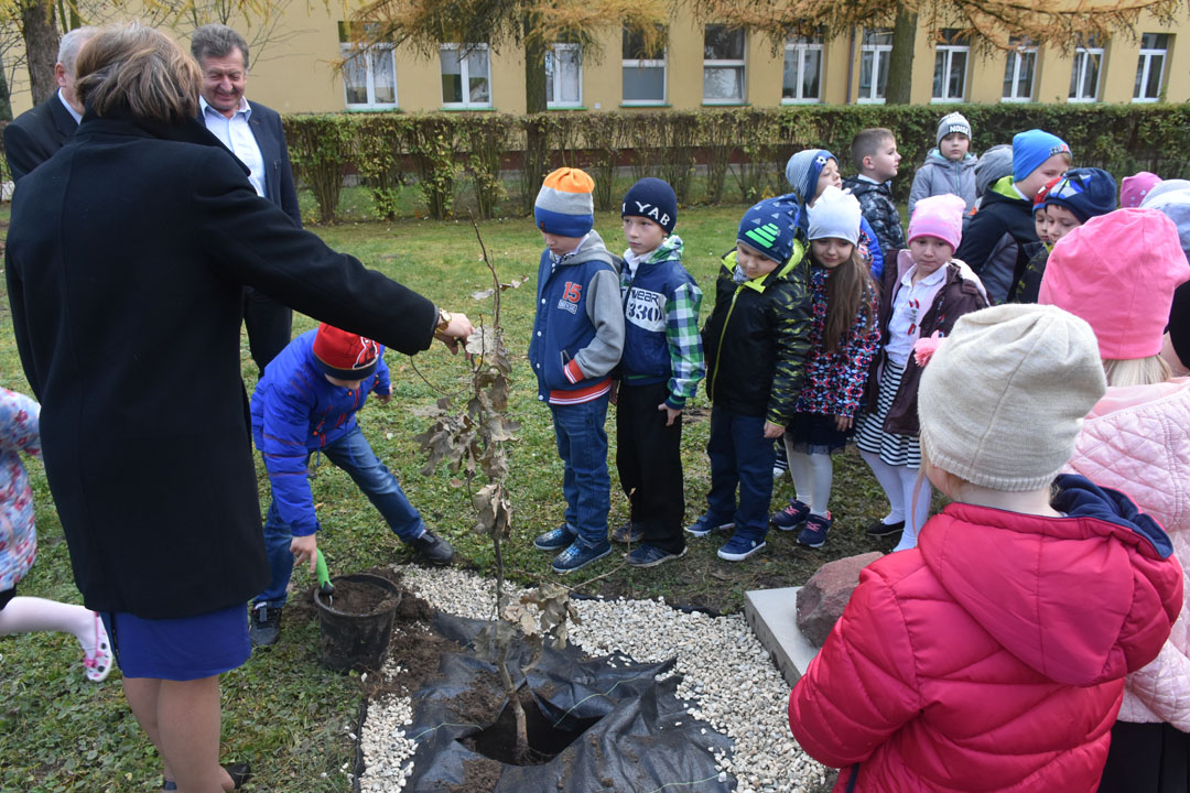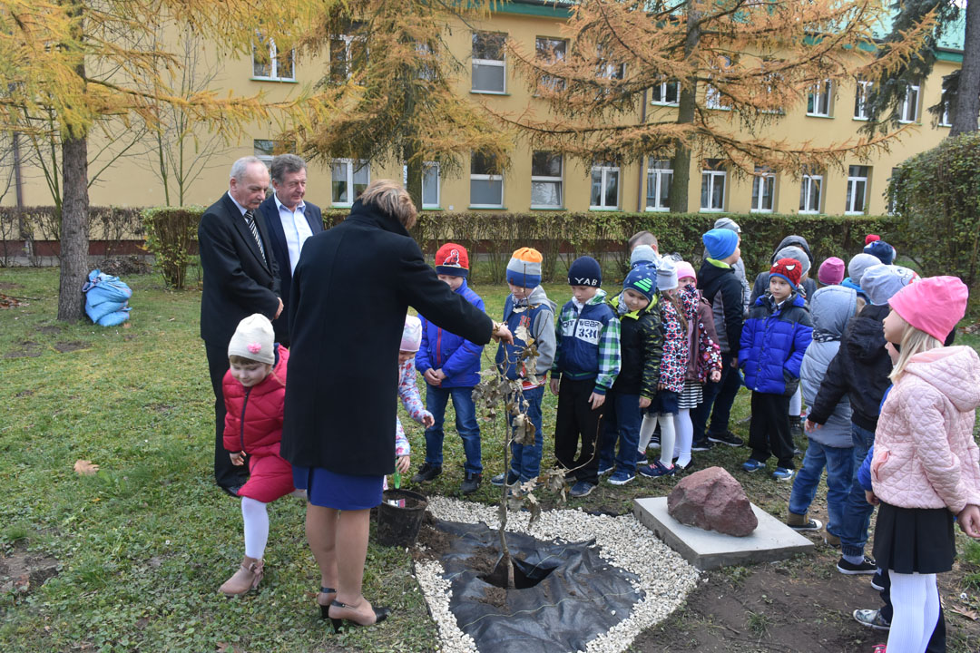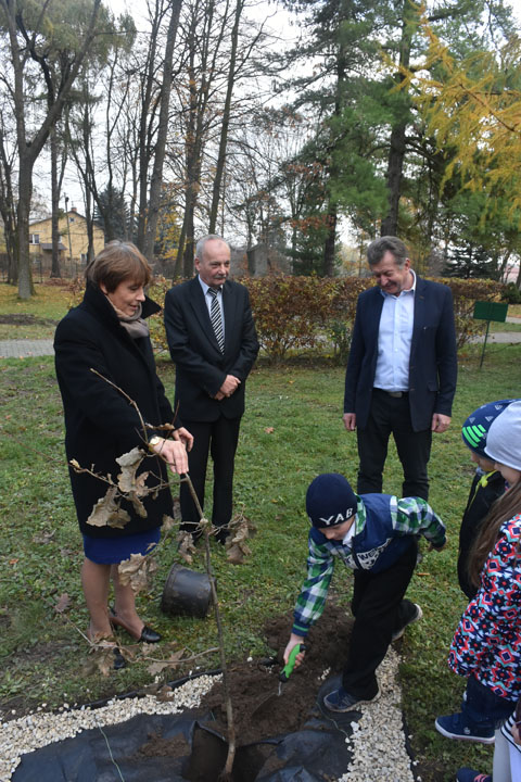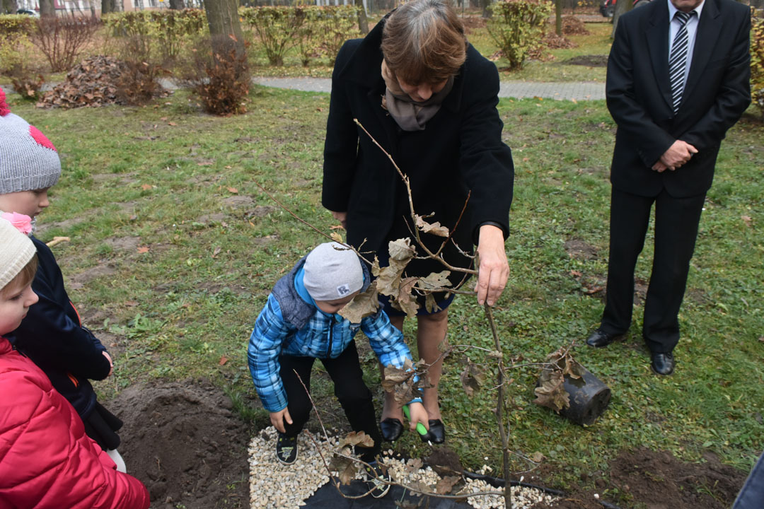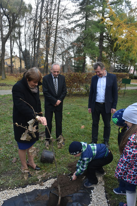 W latach 1918-1928 polskie społeczeństwo wraz z leśnikami sadziło drzewa, głównie dęby, będące uosobieniem siły, długowieczności i nieprzemijającej pamięci. Drzewa te, stanowiące dziękczynne wotum naszych przodków za przywróconą niepodległość, nierzadko przetrwały do dziś jako blisko stuletni świadkowie ważnych dla naszego narodu wydarzeń. W tym szczególnym dniu uczniowie klas pierwszych, w obecności zaproszonych gości i całej społeczności szkolnej, podobnie jak nasi przodkowie posadzili dąb pamięci z okazji 100. rocznicy odzyskania przez Polskę niepodległości.