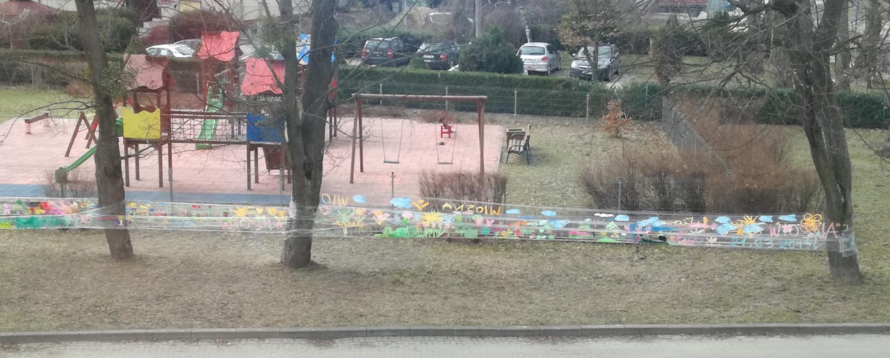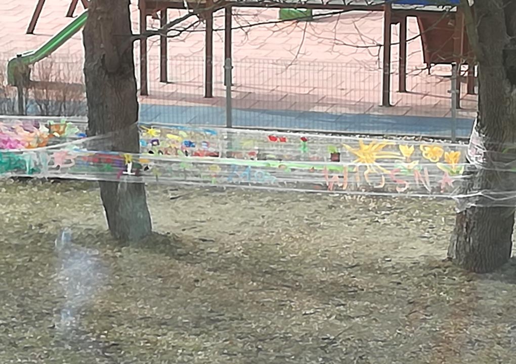 Najbardziej oczekiwaną częścią dnia było wyjście na spacer. Dzieci radośnie maszerowały w wiosennym pochodzie z Marzanną, które pożegnały według tradycji. Następnie na powieszonej folii, miedzy drzewami, malowały farbami oznaki wiosny. Przedszkolaki powróciły do przedszkola z radością i nadzieją, że wreszcie zawita, tak upragniona wiosna.