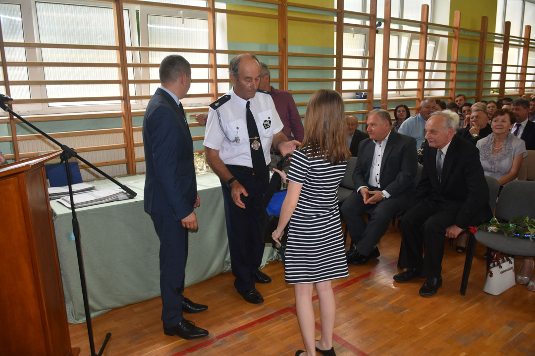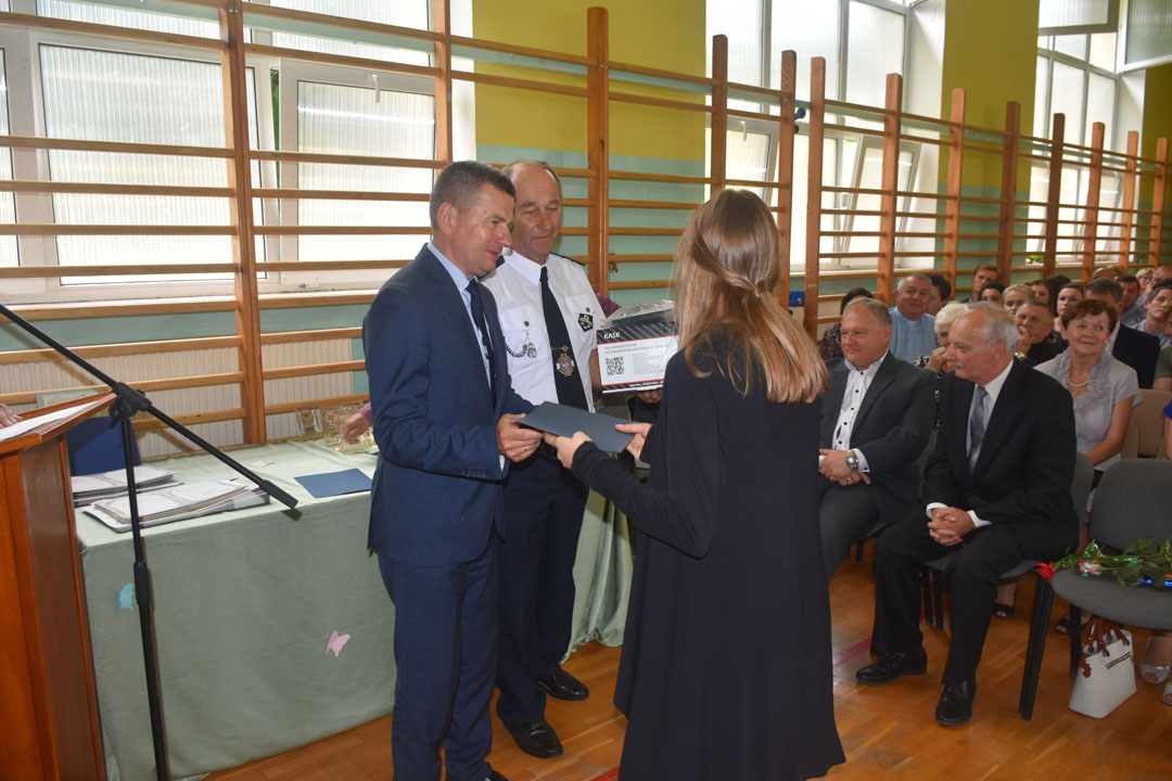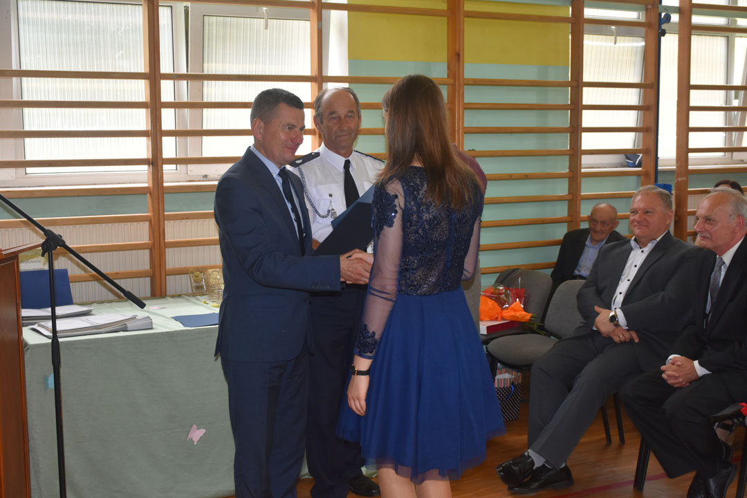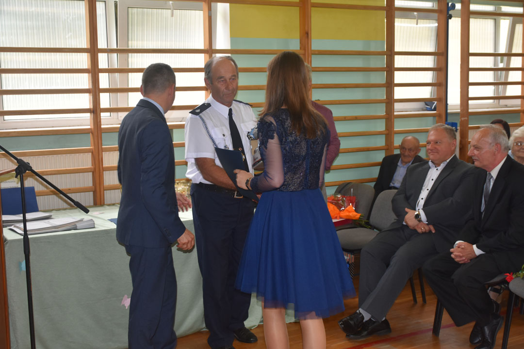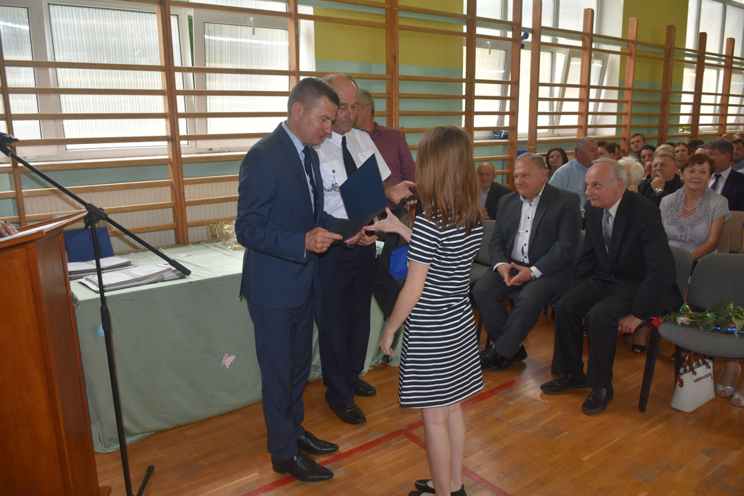 Uczniowie, rodzice oraz specjalnie przybyli na tę uroczystość goście: starszy wizytator delegatury kuratorium w Chełmie Henryk Radej, sekretarz gminy Dariusz Turzyniecki, przewodnicząca gminnej komisji oświaty Maria Kiliańska, prezes Uniwersytetu Trzeciego Wieku Anna Fornal pożegnali też przechodzącego na emeryturę wieloletniego dyrektora placówki pana Dariusza Michalaka. Pan dyrektor ze wzruszeniem oraz właściwym sobie poczuciem humoru podsumował swoją pracę na rzecz gminy oraz podziękował wszystkim współpracownikom. Wspomniał, że zarówno dla niego, jak i absolwentów nic się nie kończy. Zaczyna się po prostu nowy etap w życiu. Tak więc absolwentom i panu dyrektorowi życzymy wszystkiego najlepszego na tym nowym etapie, a wszystkim uczniom