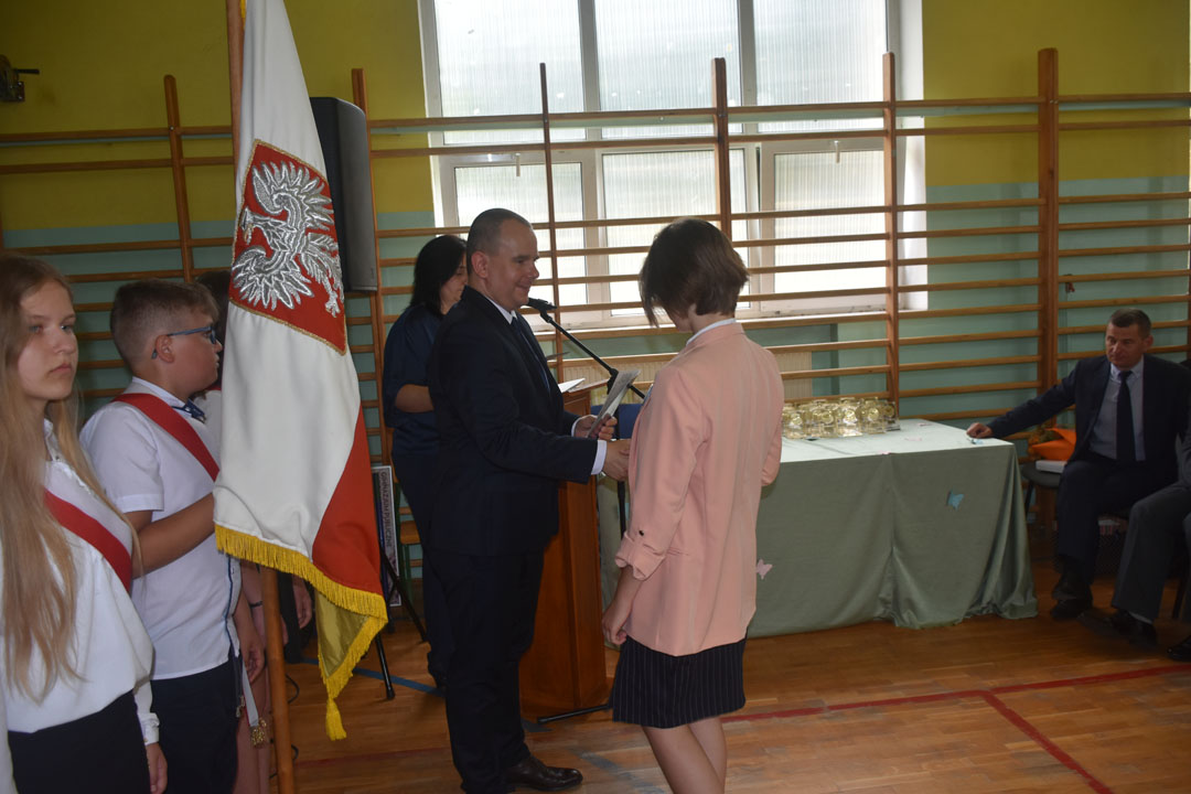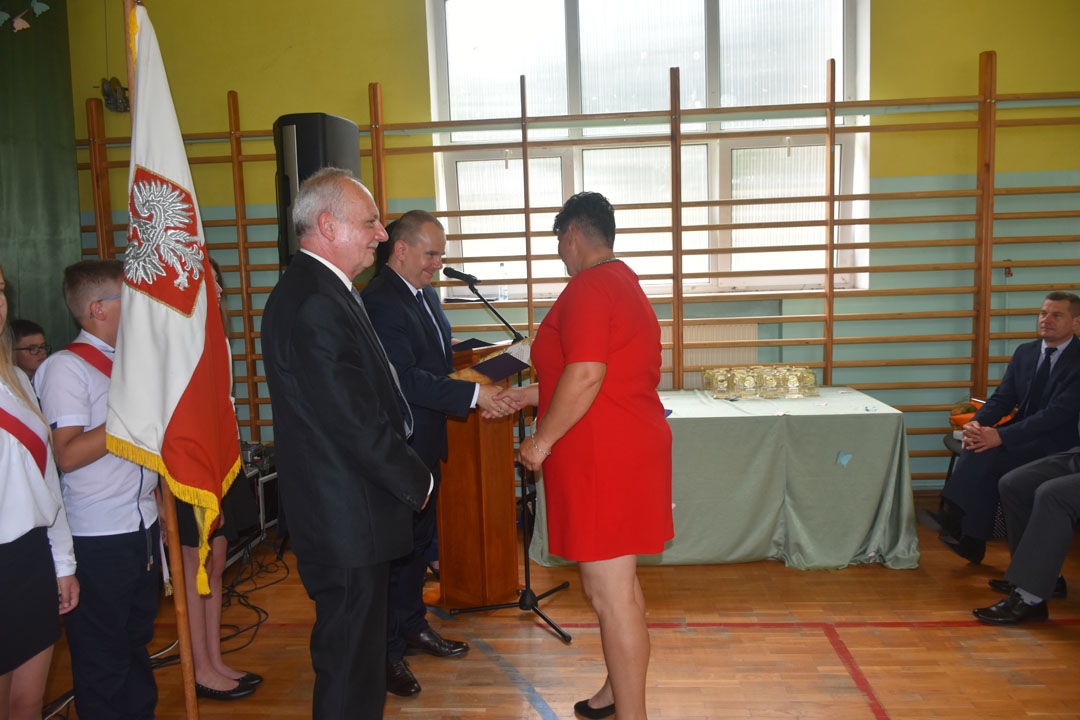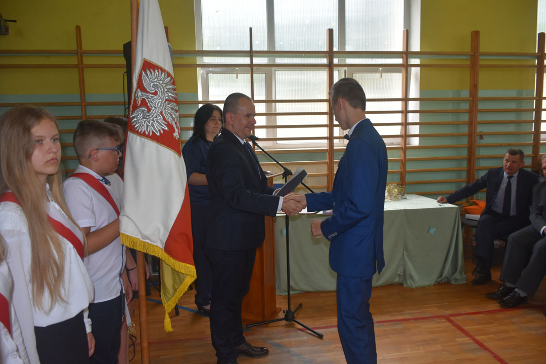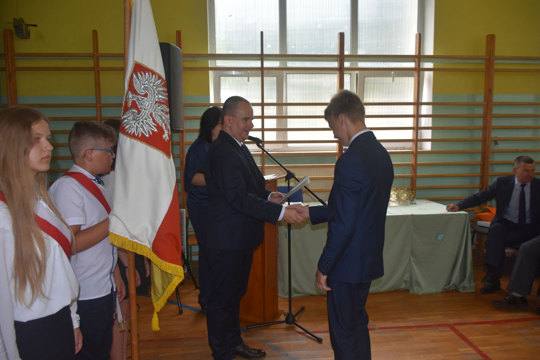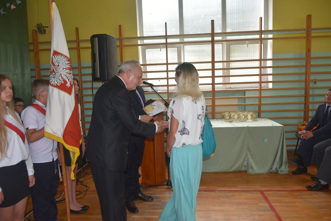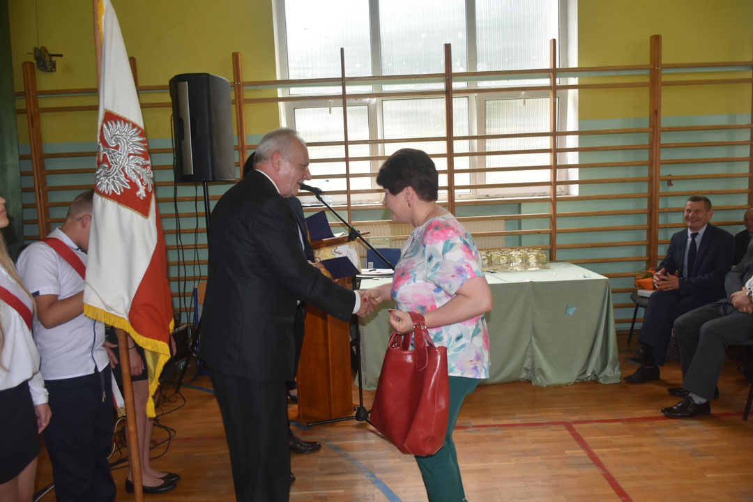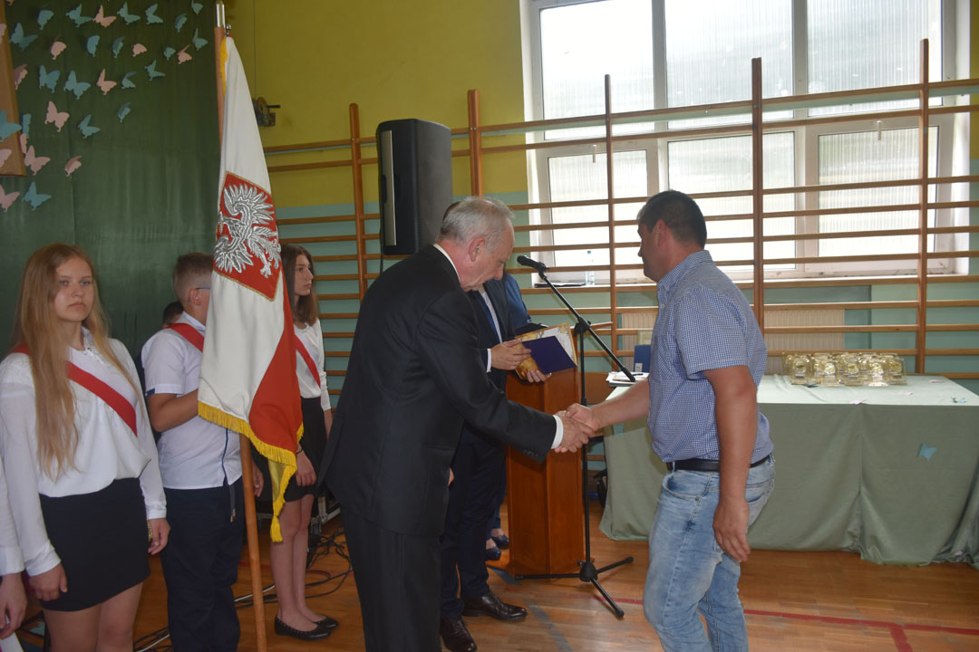 Uczniowie, rodzice oraz specjalnie przybyli na tę uroczystość goście: starszy wizytator delegatury kuratorium w Chełmie Henryk Radej, sekretarz gminy Dariusz Turzyniecki, przewodnicząca gminnej komisji oświaty Maria Kiliańska, prezes Uniwersytetu Trzeciego Wieku Anna Fornal pożegnali też przechodzącego na emeryturę wieloletniego dyrektora placówki pana Dariusza Michalaka. Pan dyrektor ze wzruszeniem oraz właściwym sobie poczuciem humoru podsumował swoją pracę na rzecz gminy oraz podziękował wszystkim współpracownikom. Wspomniał, że zarówno dla niego, jak i absolwentów nic się nie kończy. Zaczyna się po prostu nowy etap w życiu. Tak więc absolwentom i panu dyrektorowi życzymy wszystkiego najlepszego na tym nowym etapie, a wszystkim uczniom