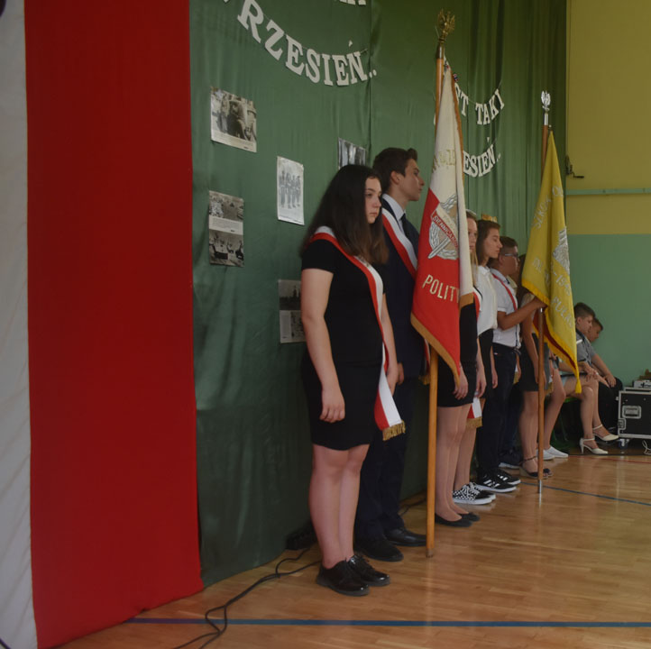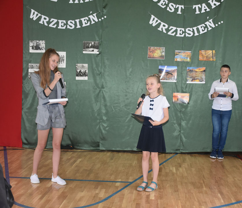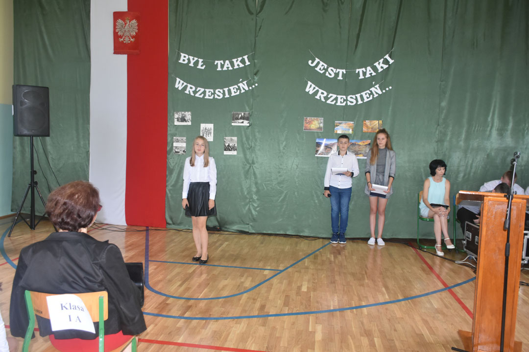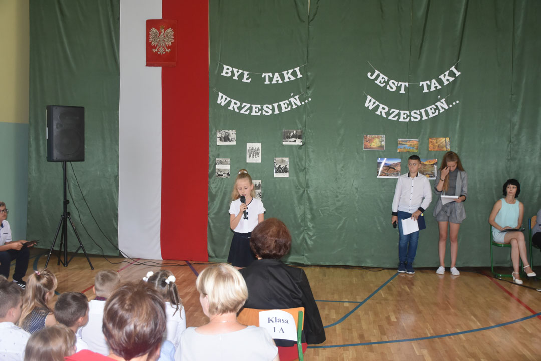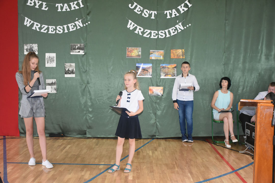 Uczniowie pod czujnym okiem nauczycieli przygotowali część artystyczną. Było poważnie z odrobiną humoru. Uczcili 80 rocznicę wybuchu II wojny światowej. Delegacja złożyła wieniec i zapaliła znicze pod pomnikiem żołnierzy, który znajduje się na terenie naszej placówki. Uczniowie przygotowali dla zebranych również coś na wesoło, aby choć trochę umilić im bolesny powrót z wakacyjnej rzeczywistości. Przywitali szczególnie serdecznie uczniów klas pierwszych, którzy dopiero rozpoczynają szkolną przygodę oraz uczniów klasy ósmej, przed którymi duże wyzwanie – egzamin ósmoklasisty. Wszyscy odczuwali uroczystą atmosferę tego wyjątkowego dnia. Życzymy uczniom i pracownikom sukcesów w nowym roku szkolnym.