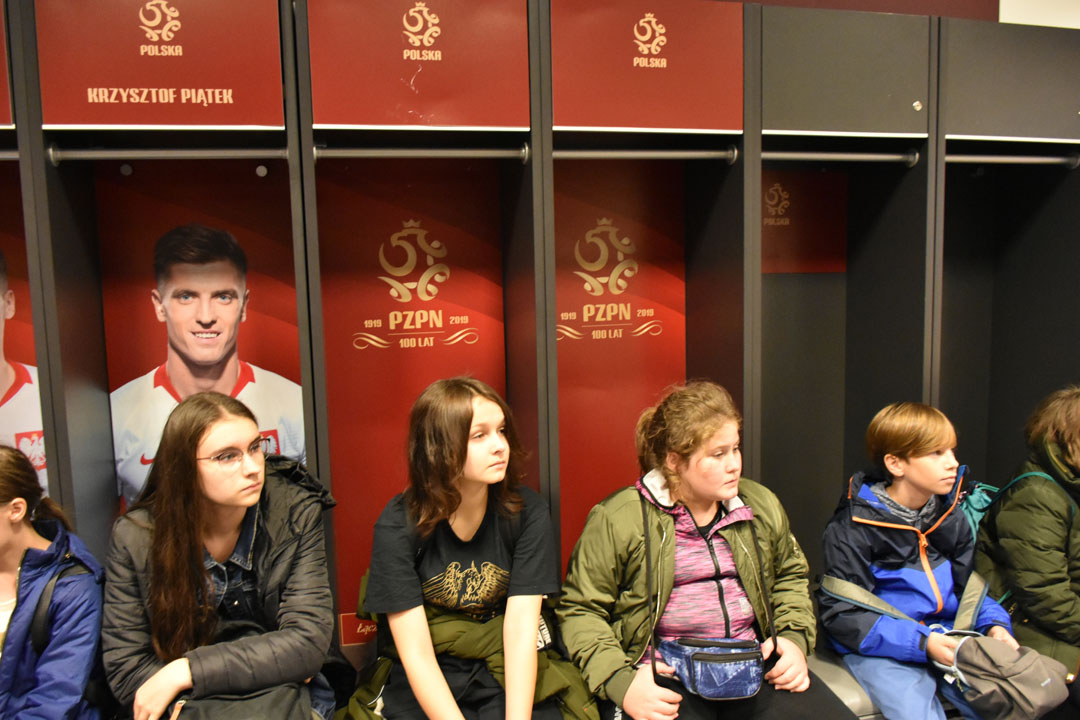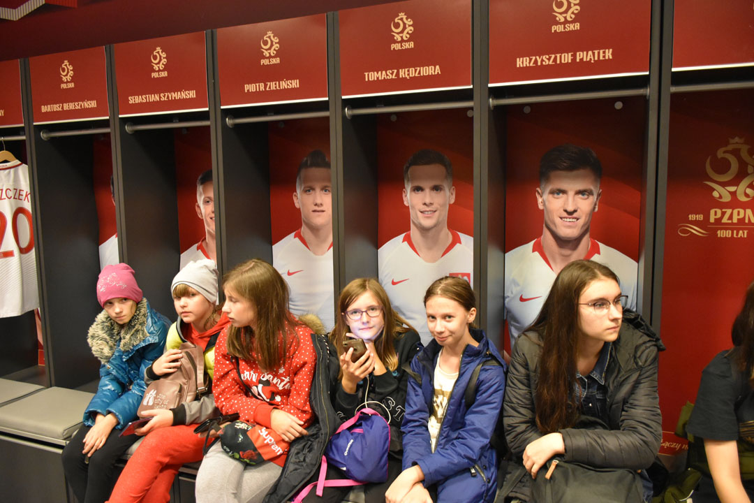 Na zakończenie wszyscy mogli się poczuć jak Robert Lewandowski. Uczniowie zwiedzili bowiem Stadion Narodowy. Zobaczyli nie tylko koronę stadionu do tej pory znaną im z telewizyjnych transmisji meczów, ale także mogli poczuć atmosferę piłkarskiej szatni. Zaplecze naszego reprezentacyjnego obiektu sportowego wzbudziło wielkie zainteresowanie, bowiem nieczęsto można je oglądać.