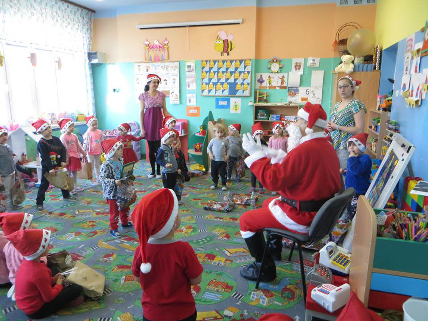 6 grudnia- wizyta Mikołaja w Punkcie Przedszkolnym, to jeden z najbardziej oczekiwanych przez dzieci dni w roku. Dzieci z grupy ,,Biedronek” i ,,Pszczółek” pracowicie przygotowały się na to spotkanie. Sala pięknie przystrojona, a przedszkolaki przygotowane z wierszami i piosenkami dla wyjątkowego gościa. Ponieważ nie było śniegu Mikołaj przybył samochodem, przywiózł też prezenty dla wszystkich dzieci. Każda grupa zaprezentowała się przed Mikołajem, któremu bardzo podobało się takie przywitanie. Nagrodził dzieci brawami, obdarował wszystkie prezentami.