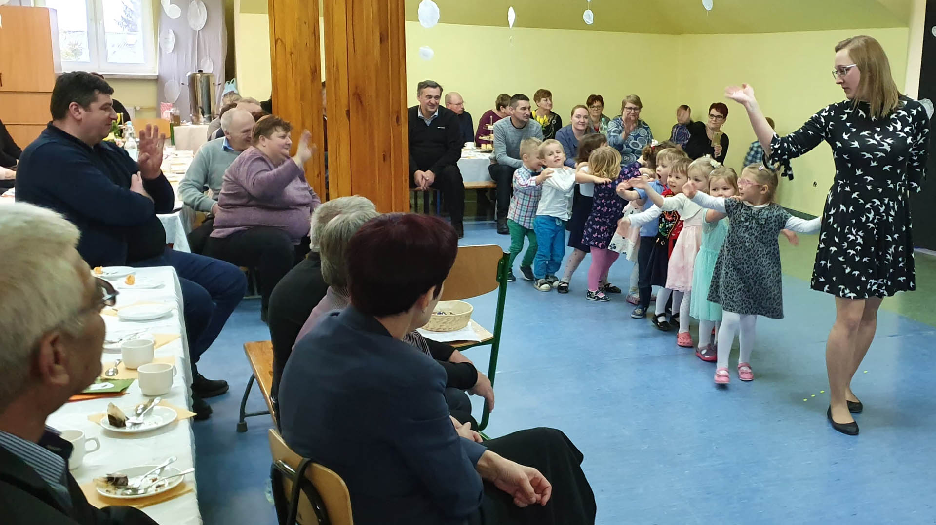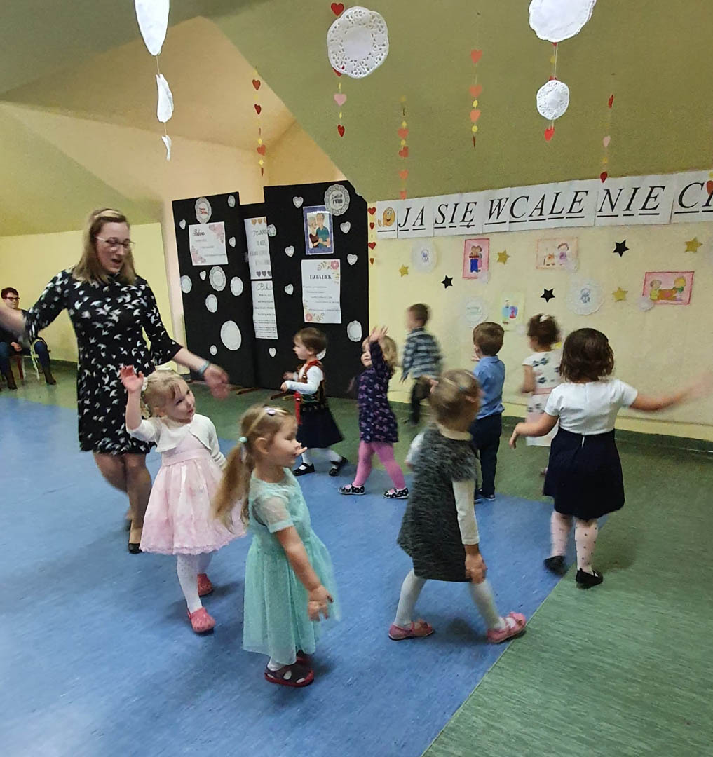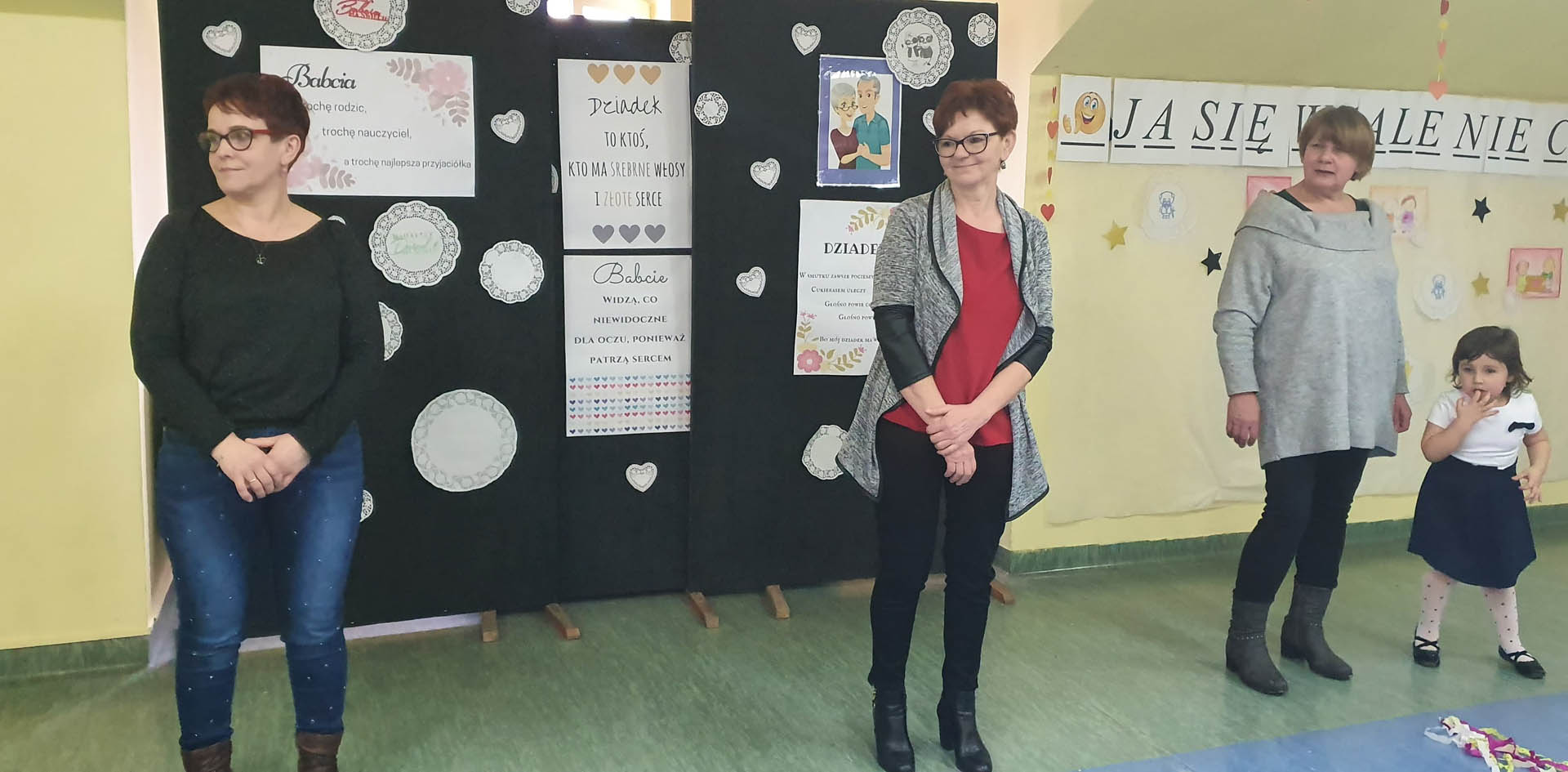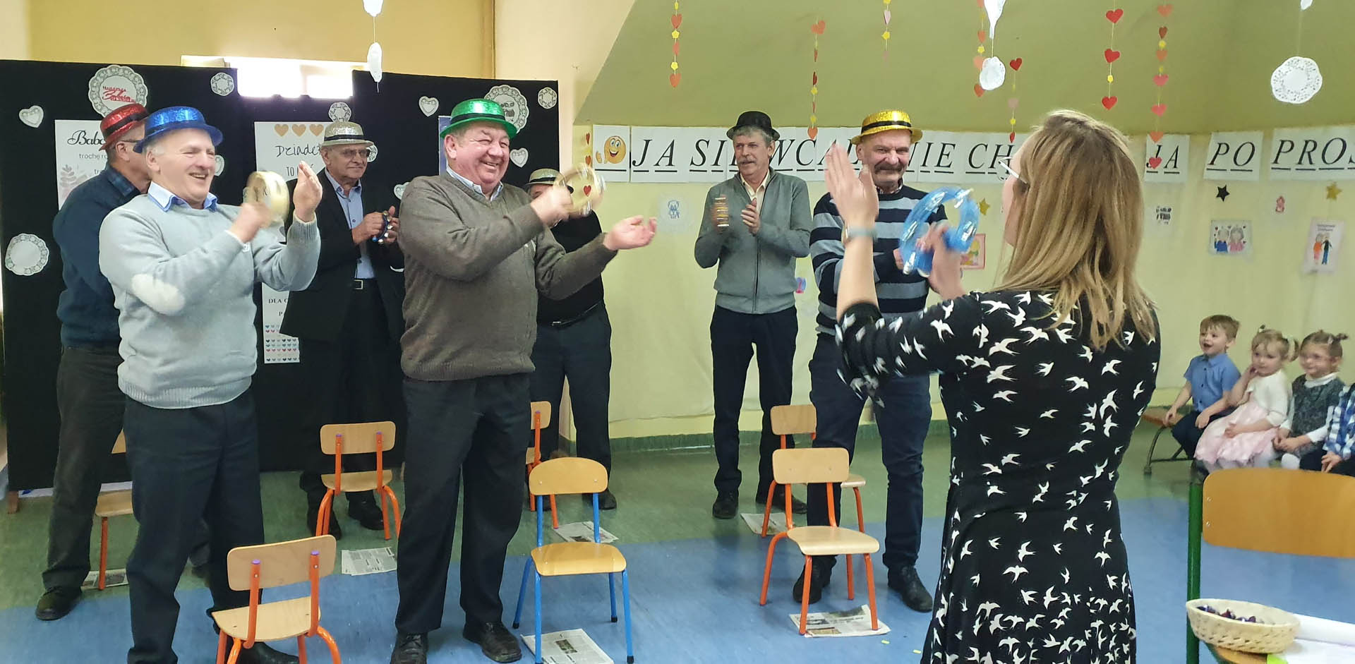 Babcia i Dziadek to słowa, które każdemu dziecku kojarzą się z ciepłem, miłością i wszystkim, co dobre. Dlatego dzieci z grupy IV,,Biedronki” 14 lutego gościły swoje Babcie oraz Dziadków na uroczystości z tej okazji. Przedszkolaki od samego rana z niecierpliwością wyczekiwały zaproszonych gości, nie mogąc doczekać się, kiedy zapukają do drzwi Punktu Przedszkolnego. Licznie przybyli: Babcie i Dziadkowie, mieli okazję podziwiać swoje wnuczęta w specjalnie dla nich przygotowanym programie artystycznym. Dzieci zaprezentowały wiersze, piosenki oraz tańce, które ćwiczyły na tę uroczystość. Następnie wnuczęta podarowały upominki oraz zaprosiły na słodki poczęstunek i herbatę, przygotowane przez rodziców. Babcie i Dziadkowie bardzo chętnie uczestniczyli we wspólnych zabawach i tańcach. W ten szczególny sposób dzieci okazały swoim bliskim szacunek i po raz kolejny podziękowały za miłość, cierpliwość, zrozumienie. Uroczystość pokazała jak ważne są takie chwile spędzone wspólnie z wnukami. To były naprawdę wyjątkowa uroczystość, pełna uśmiechu, radości i dumy.
