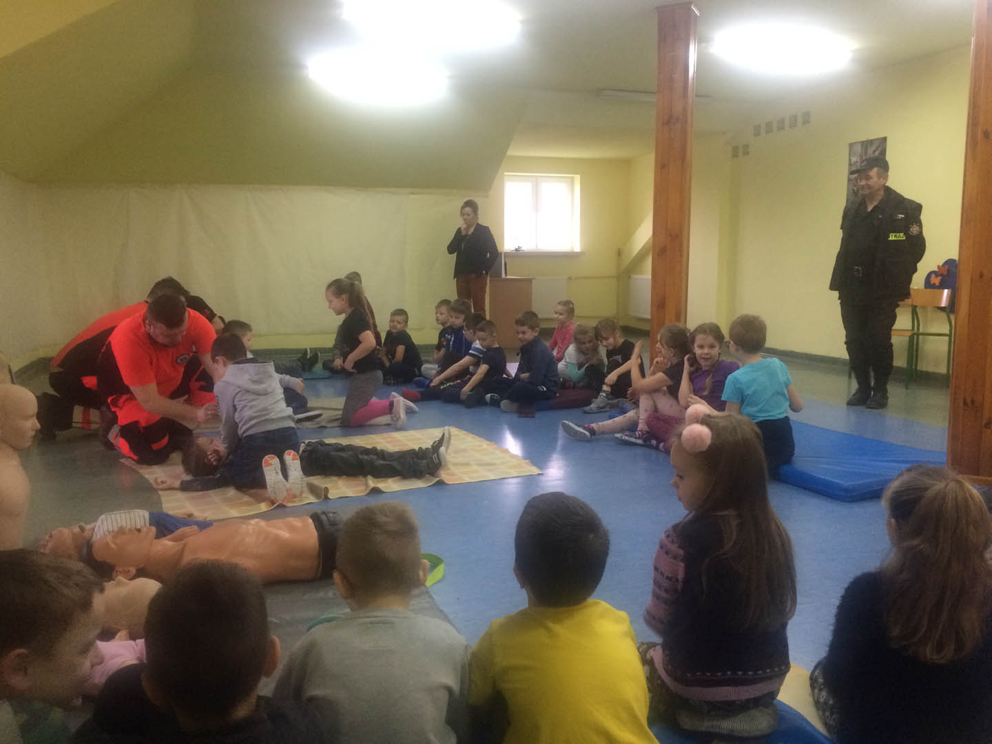 Dnia 28 lutego 2020 roku w naszej szkole odbyło się szkolenie z zakresu udzielania pierwszej pomocy. Szkolenie zorganizowane zostało w ramach dotacji udzielonej Ochotniczej Straży Pożarnej w Siennicy Królewskiej Dużej, a przeprowadziła je firma Life Med z Opola Lubelskiego. Przeszkolone zostały dzieci z klas I –III. Jak się okazuje nasze dzieciaczki mają dużą wiedzą w tym zakresie, co stwierdzili sami ratownicy medyczni, a spotkanie dodatkowo ugruntowało ich wiadomości i umiejętności praktyczne. Dziękujemy serdecznie za wizytę w naszej szkole.