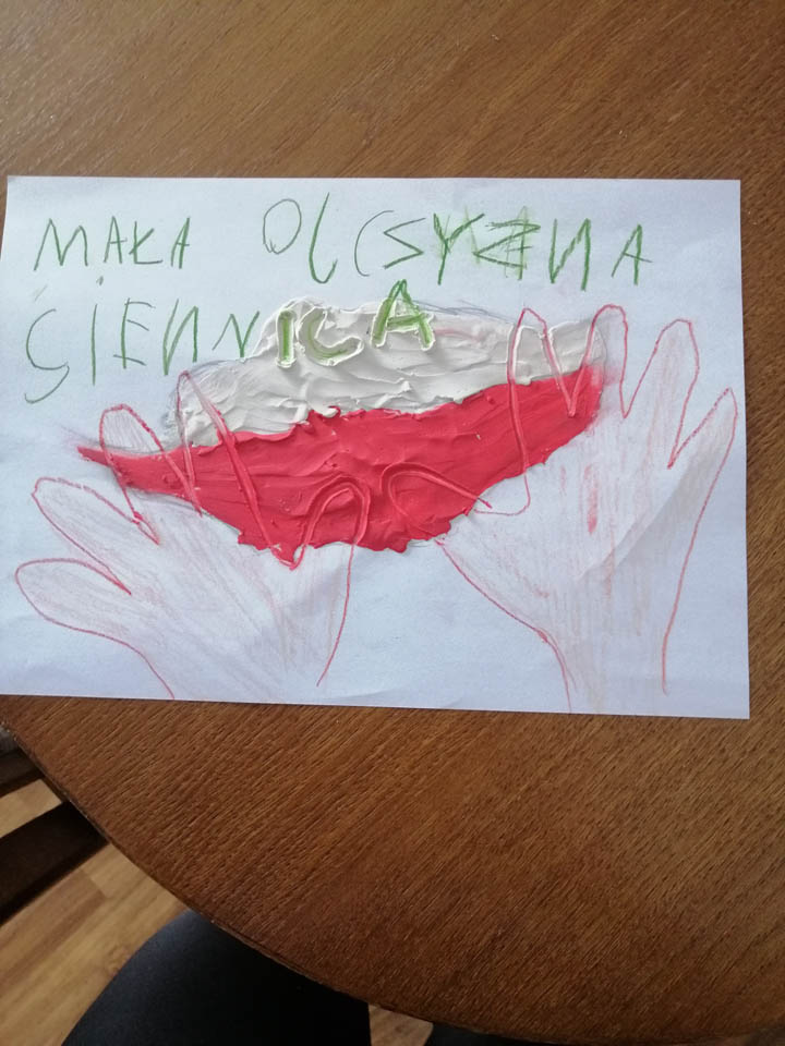 W tym szczególnym czasie, jaki mamy teraz, podczas zabaw z rodzicami i rodzeństwem w domu dzieci nie zapomniały, czym dla nich jest Ojczyzna, co znaczy być patriotą oraz jak ważną rolę w życiu każdego człowieka odgrywa szacunek wobec symboli narodowych.