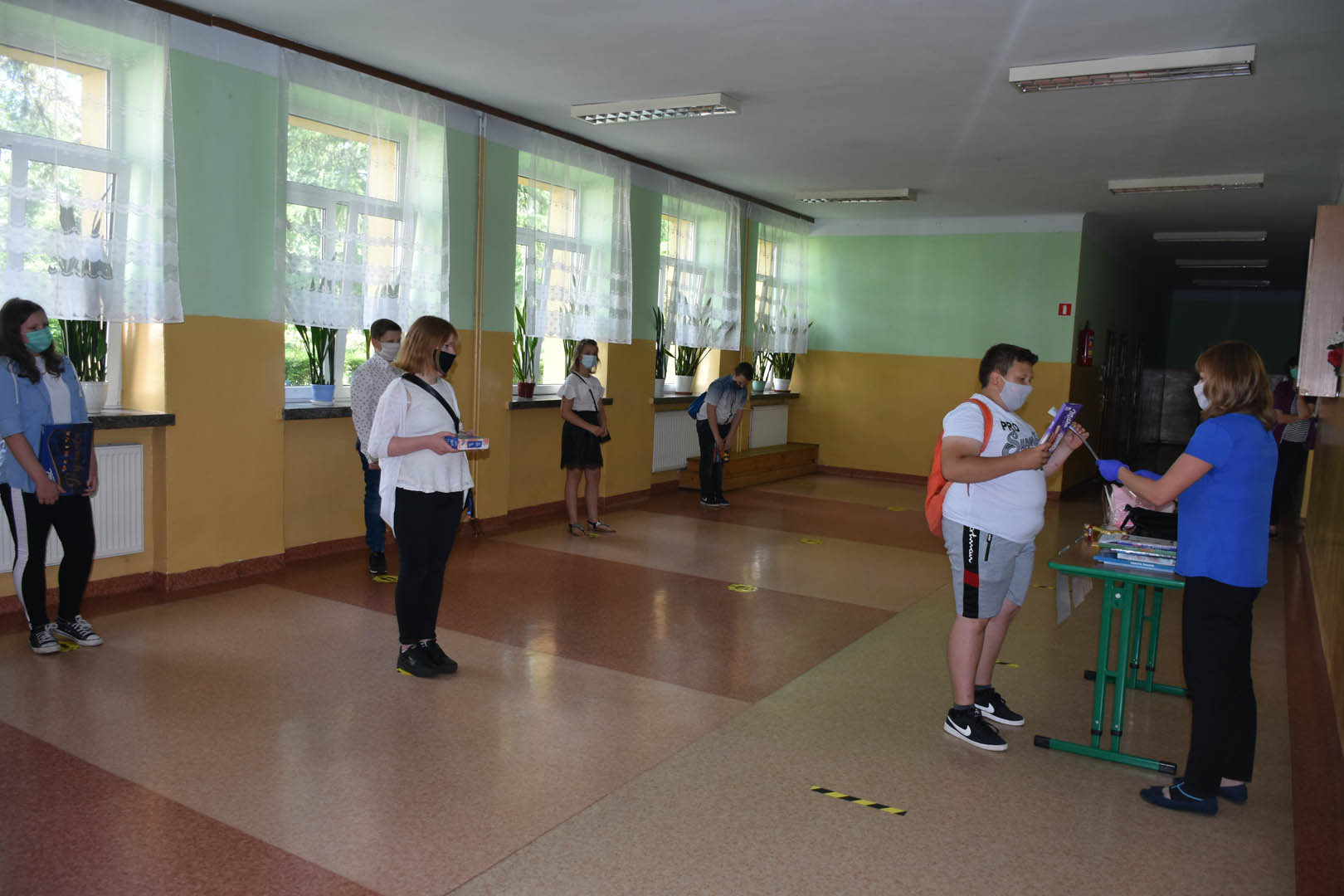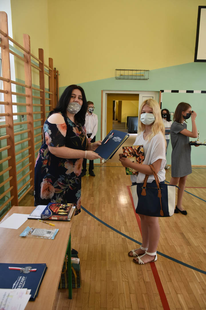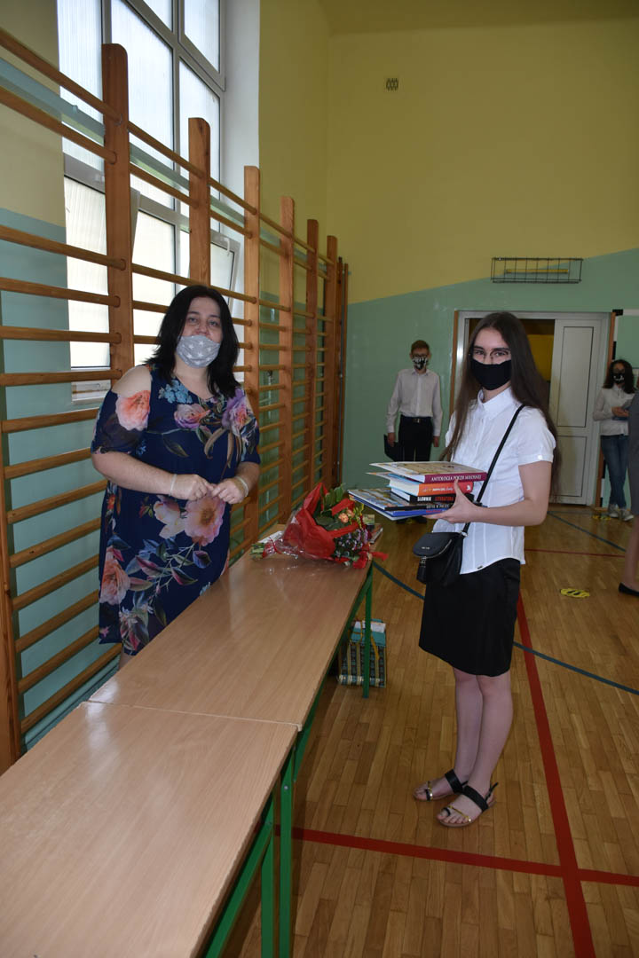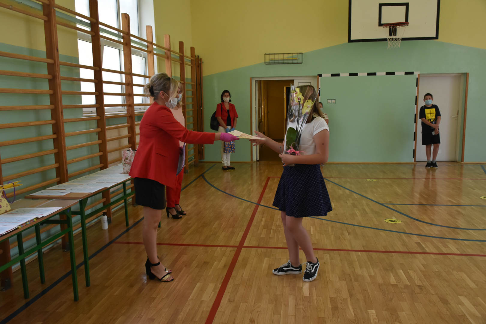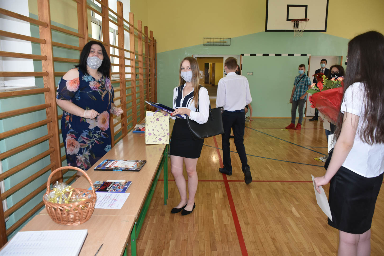 Z powodu pandemii nie mogliśmy pożegnać Was tak, jakbyśmy chcieli, oraz tak, jak na to zasługujecie. Bezpieczeństwo nas wszystkich stało się bowiem sprawą priorytetową i to ono wyznaczyło zasady pobytu w szkole. Obowiązkowe były maseczki i dezynfekcja rąk przy wejściu. Budynek szkoły został perfekcyjnie przygotowany na Wasze przyjście: oklejony szlak komunikacyjny i wszelkie informacje z dziedziny bezpieczeństwa wyznaczyły trasę wędrówki po szkole. Niemożliwe okazały się niestety przyjacielskie uściski i dowody sympatii dla uczniów, nauczycieli i pracowników. Maseczki na twarzach wszystkich skrywały wzruszenie, powagę i skupienie. Tylko oczy były zwierciadłem emocji…