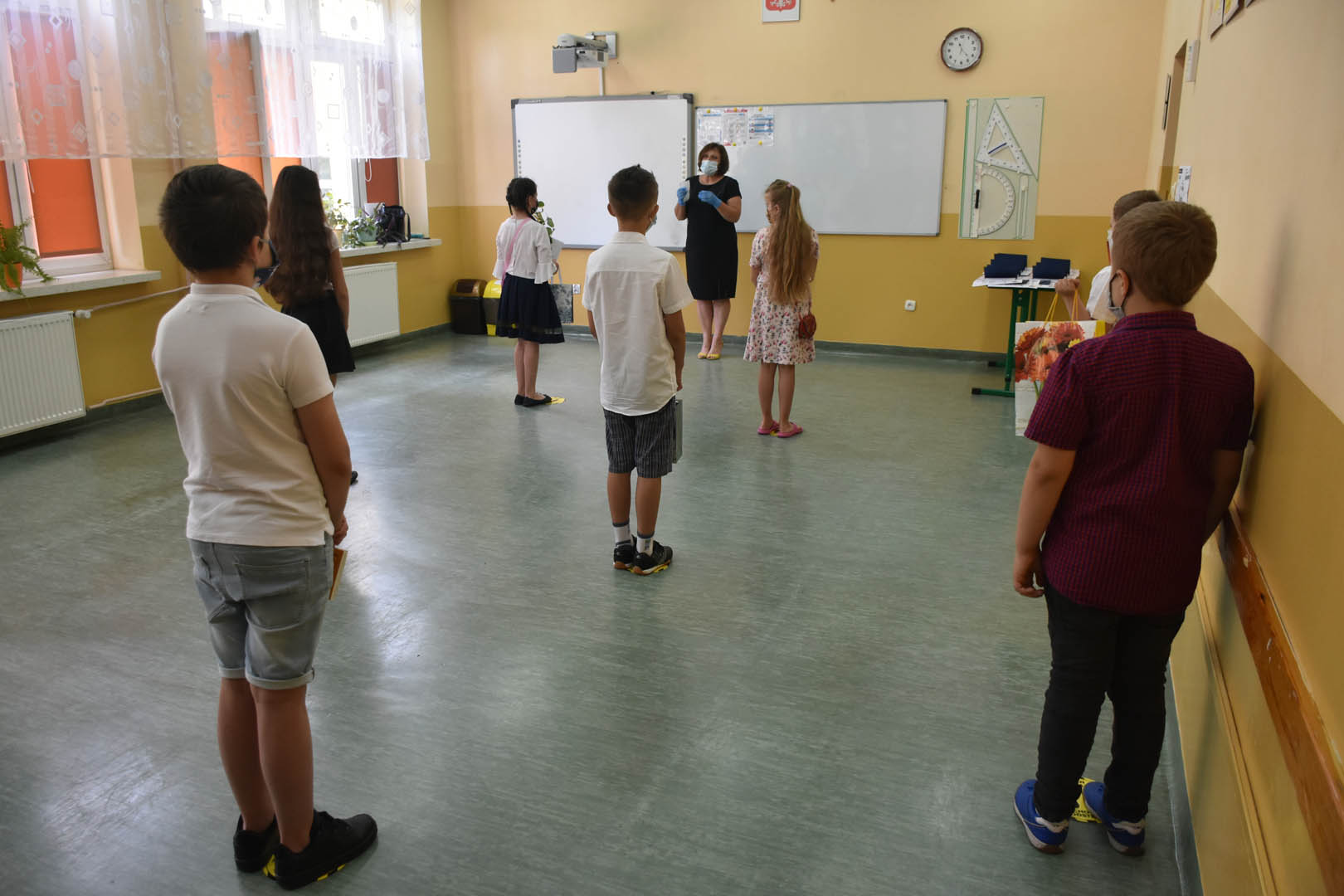 Z powodu pandemii nie mogliśmy pożegnać Was tak, jakbyśmy chcieli, oraz tak, jak na to zasługujecie. Bezpieczeństwo nas wszystkich stało się bowiem sprawą priorytetową i to ono wyznaczyło zasady pobytu w szkole. Obowiązkowe były maseczki i dezynfekcja rąk przy wejściu. Budynek szkoły został perfekcyjnie przygotowany na Wasze przyjście: oklejony szlak komunikacyjny i wszelkie informacje z dziedziny bezpieczeństwa wyznaczyły trasę wędrówki po szkole. Niemożliwe okazały się niestety przyjacielskie uściski i dowody sympatii dla uczniów, nauczycieli i pracowników. Maseczki na twarzach wszystkich skrywały wzruszenie, powagę i skupienie. Tylko oczy były zwierciadłem emocji…