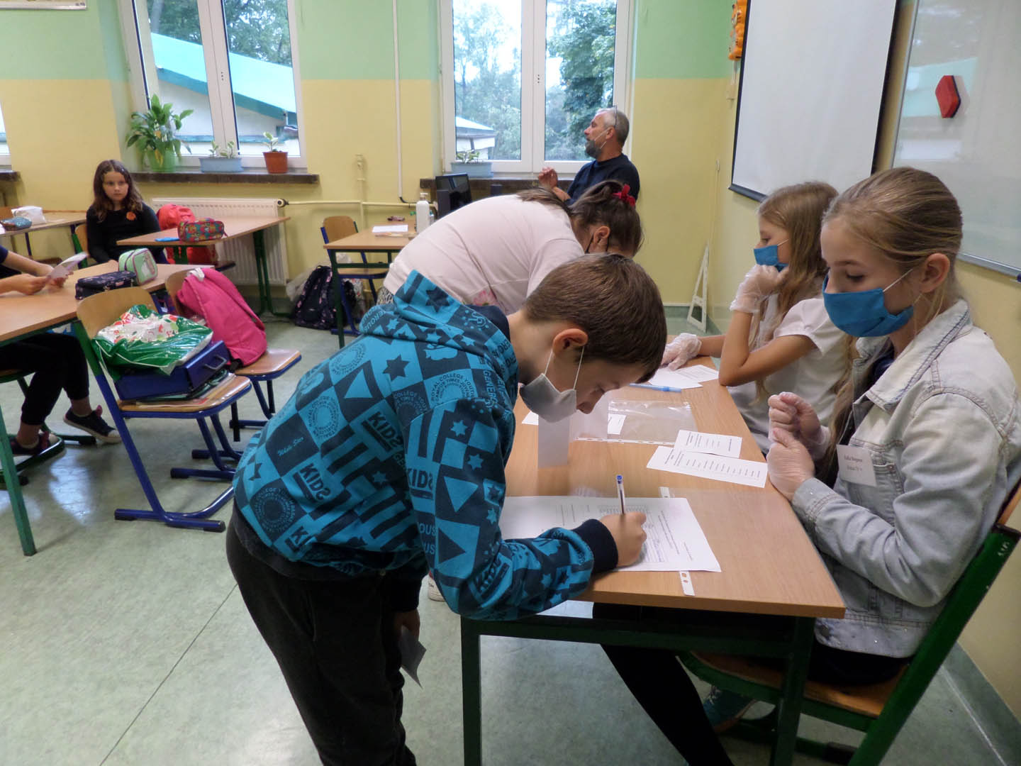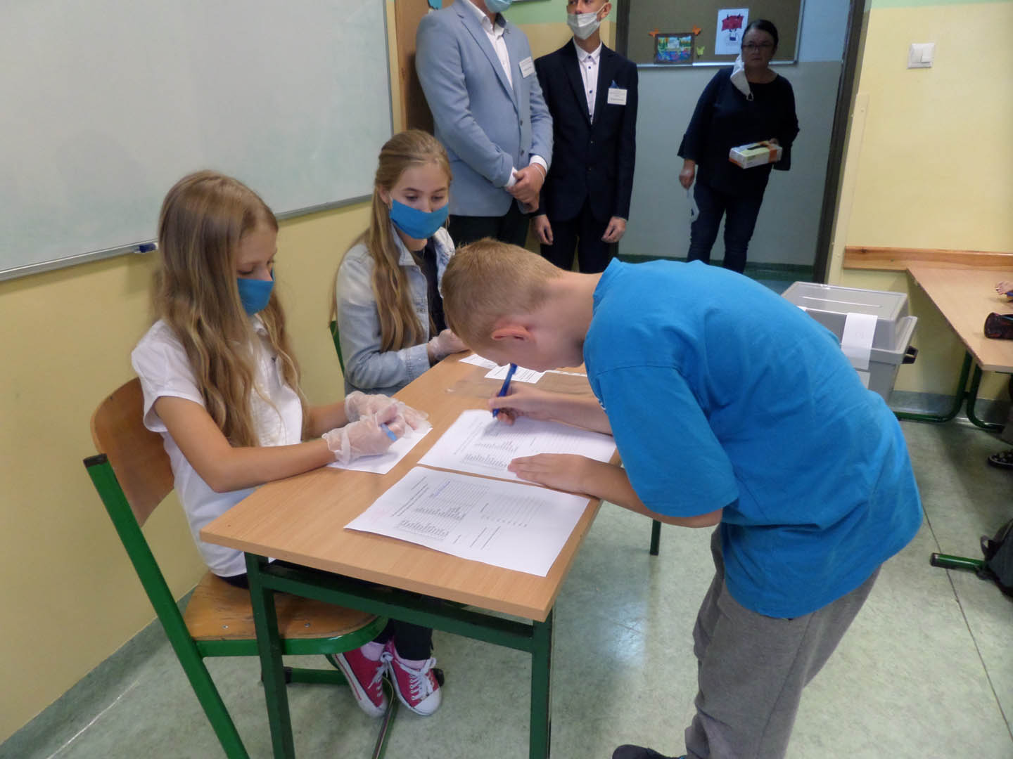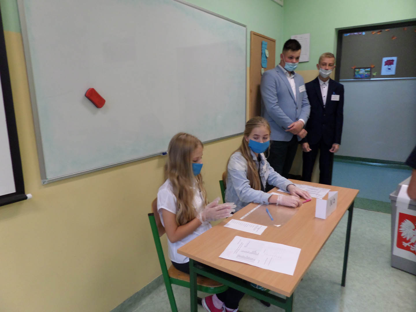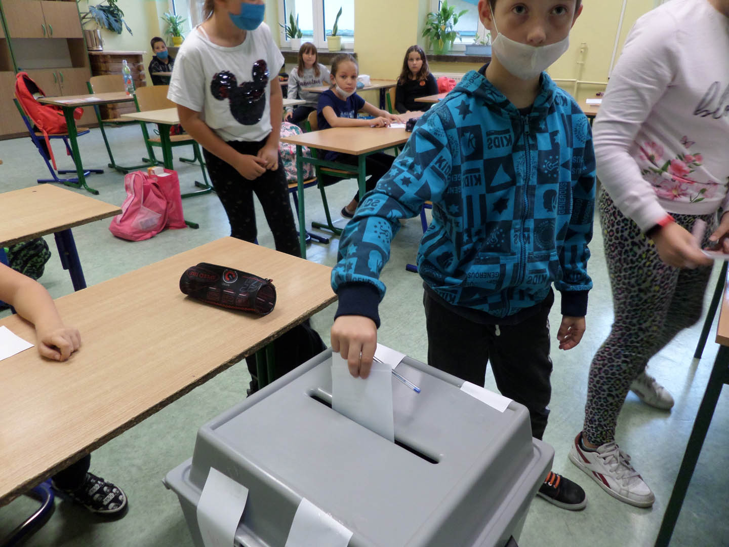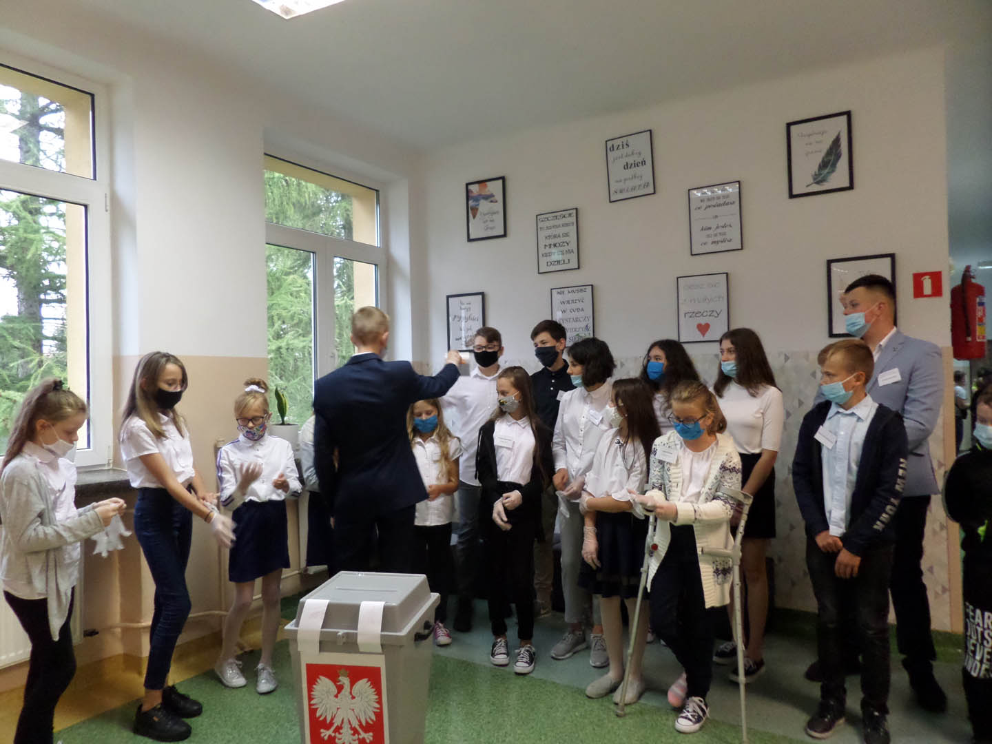 W tym dniu przy zachowaniu zasad bezpieczeństwa obowiązujących na terenie szkoły w okresie pandemii uczniowie klas IV – VIII wybierali swojego przedstawiciela oraz opiekuna SU.  Kandydaci na przewodniczącego Samorządu Uczniowskiego to: Patrycja Kopciowska (kl. VIII a), Szymon Matczuk (kl. VII a) oraz Nadia Mochniej (kl. VII a). Po przeliczeniu głosów ważnych  opiekunem Samorządy Uczniowskiego została Pani Anna Popek, a Przewodniczącą – Patrycja Kopciowska.
