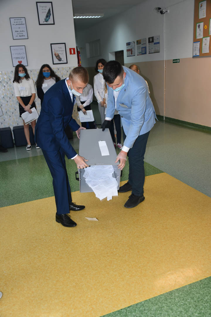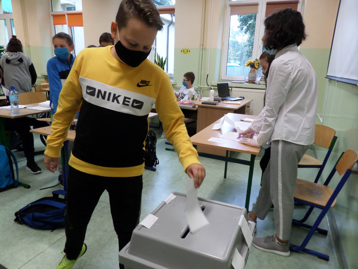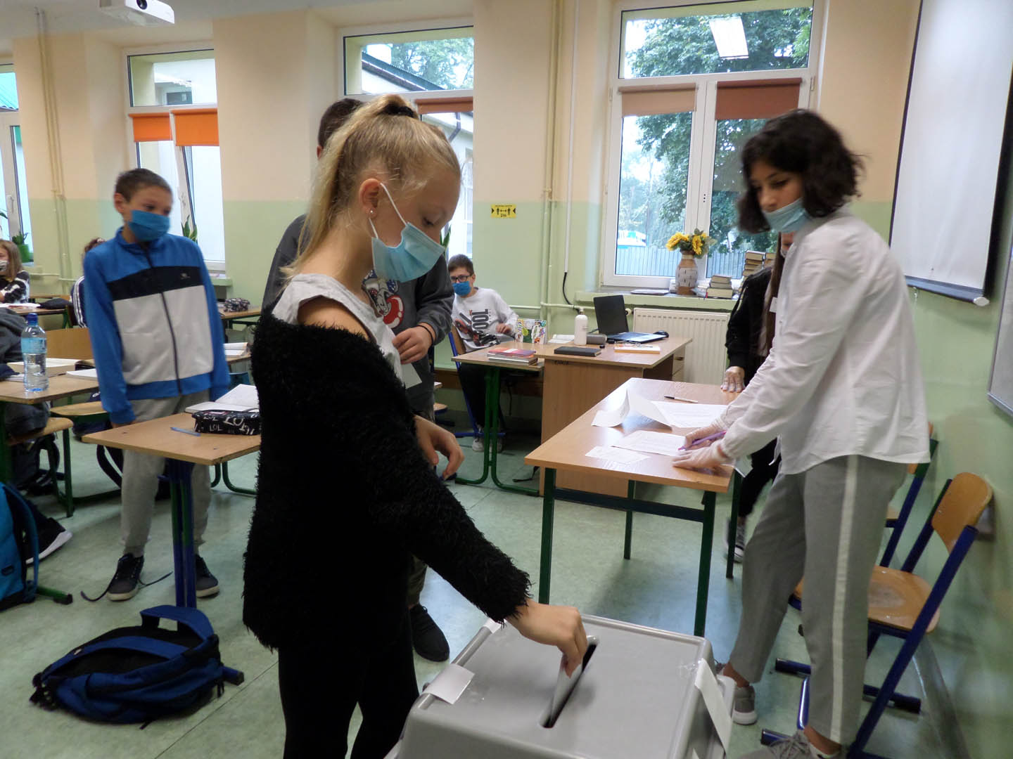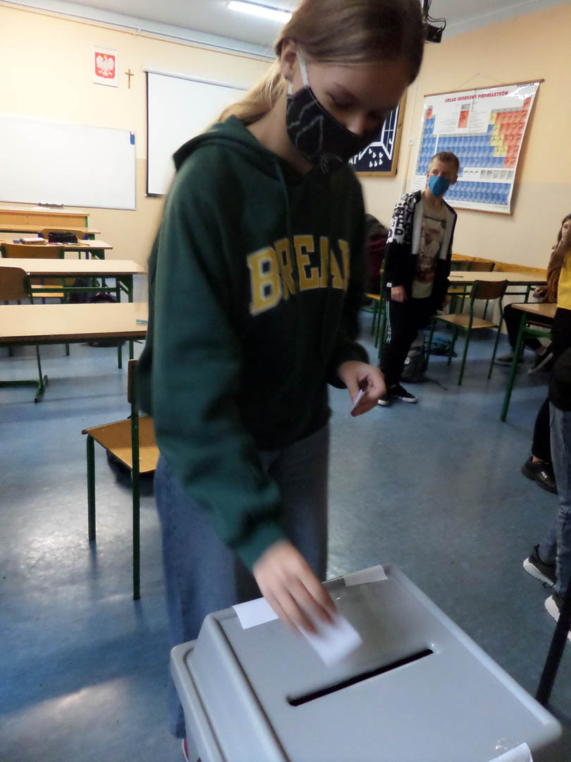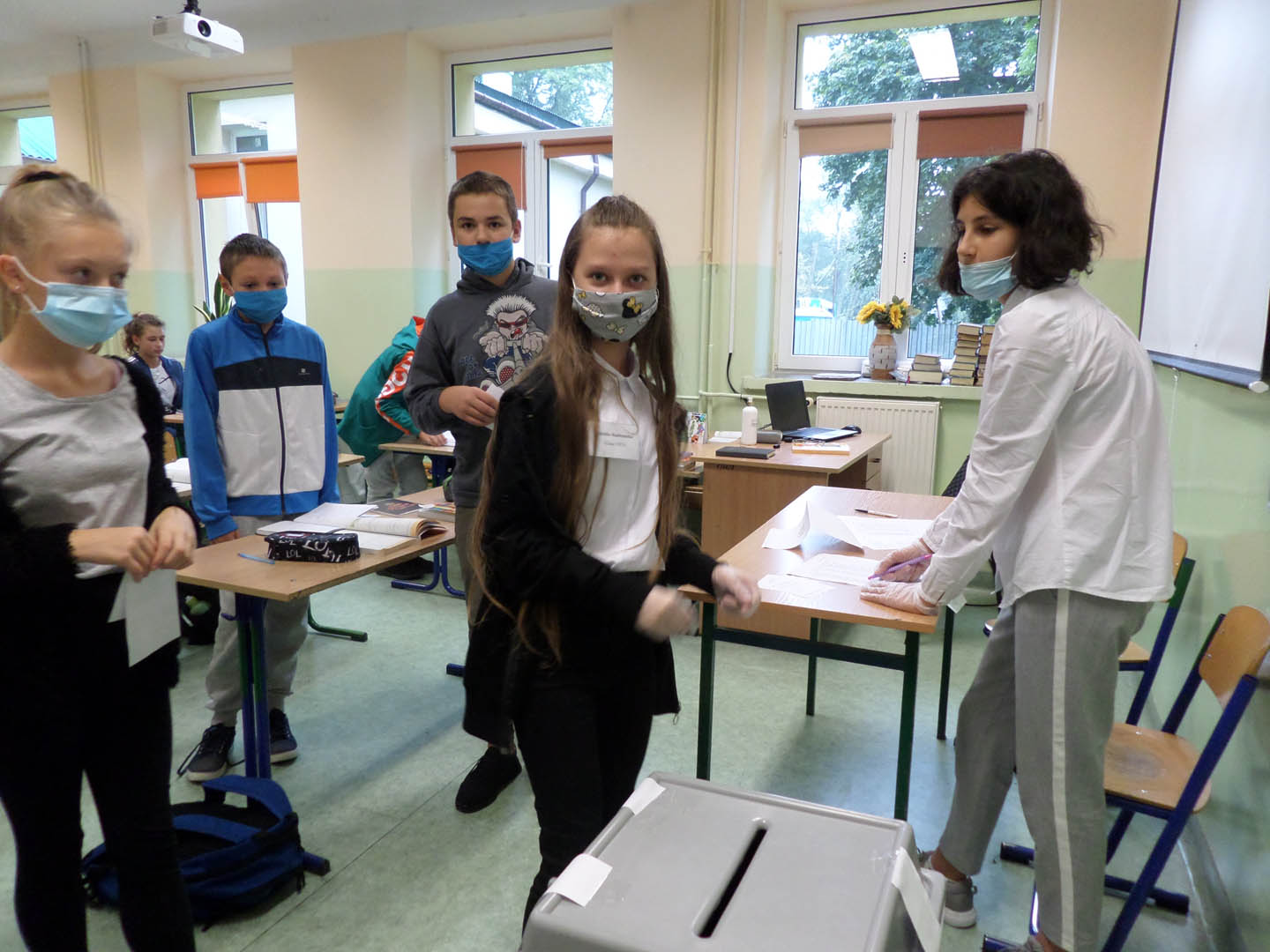 W tym dniu przy zachowaniu zasad bezpieczeństwa obowiązujących na terenie szkoły w okresie pandemii uczniowie klas IV – VIII wybierali swojego przedstawiciela oraz opiekuna SU.  Kandydaci na przewodniczącego Samorządu Uczniowskiego to: Patrycja Kopciowska (kl. VIII a), Szymon Matczuk (kl. VII a) oraz Nadia Mochniej (kl. VII a). Po przeliczeniu głosów ważnych  opiekunem Samorządy Uczniowskiego została Pani Anna Popek, a Przewodniczącą – Patrycja Kopciowska.