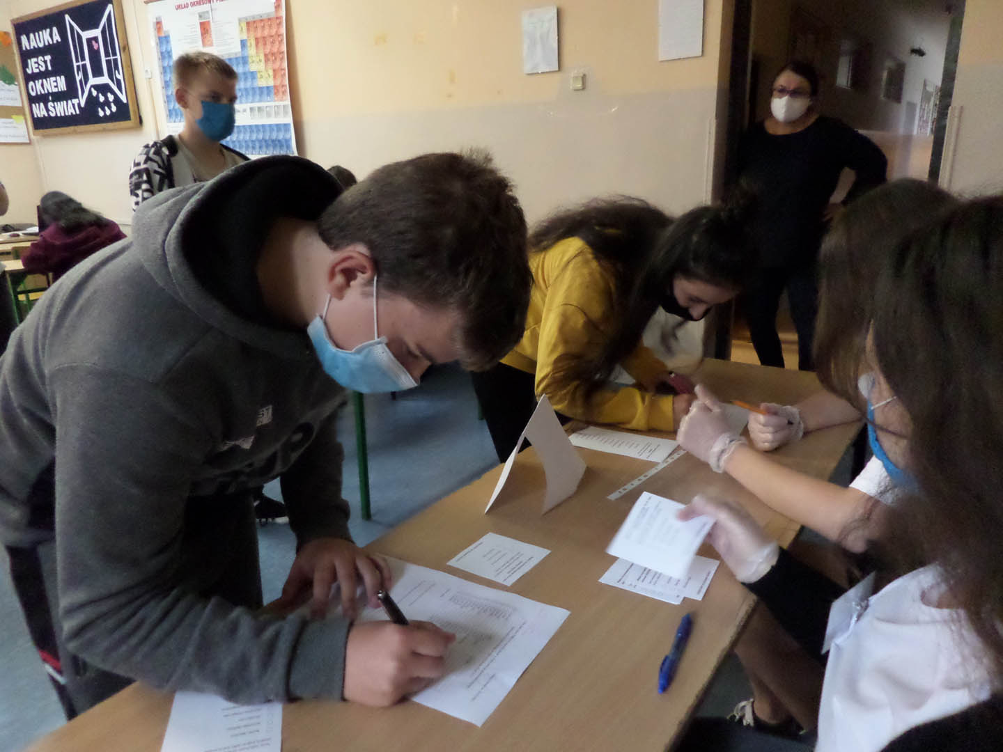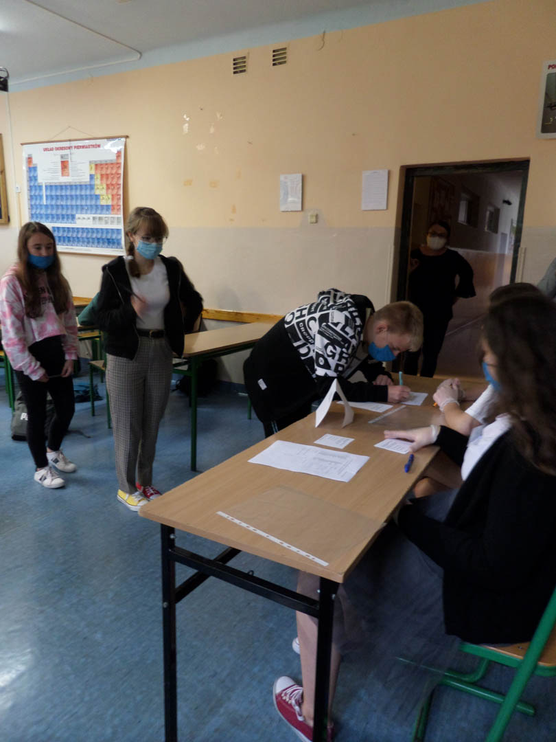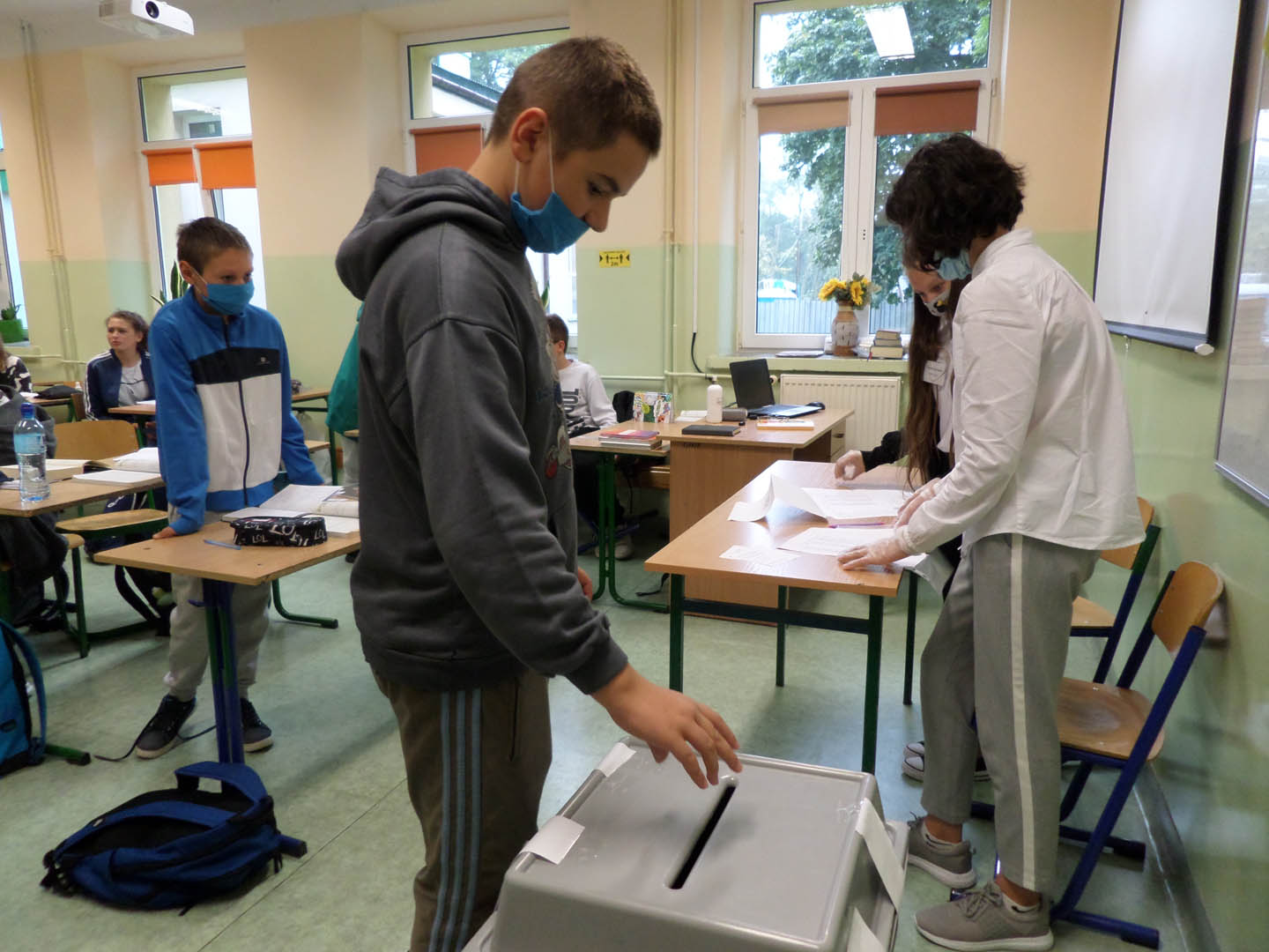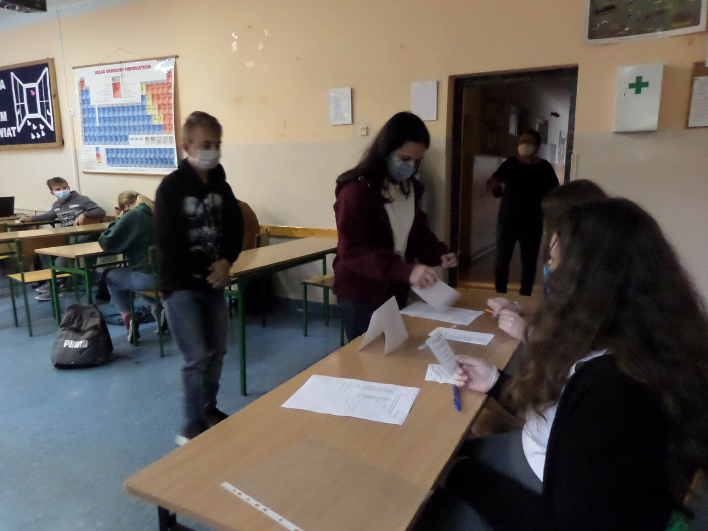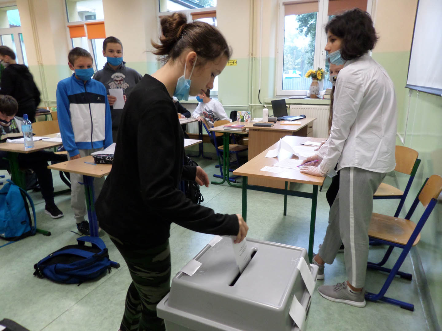 W tym dniu przy zachowaniu zasad bezpieczeństwa obowiązujących na terenie szkoły w okresie pandemii uczniowie klas IV – VIII wybierali swojego przedstawiciela oraz opiekuna SU.  Kandydaci na przewodniczącego Samorządu Uczniowskiego to: Patrycja Kopciowska (kl. VIII a), Szymon Matczuk (kl. VII a) oraz Nadia Mochniej (kl. VII a). Po przeliczeniu głosów ważnych  opiekunem Samorządy Uczniowskiego została Pani Anna Popek, a Przewodniczącą – Patrycja Kopciowska.