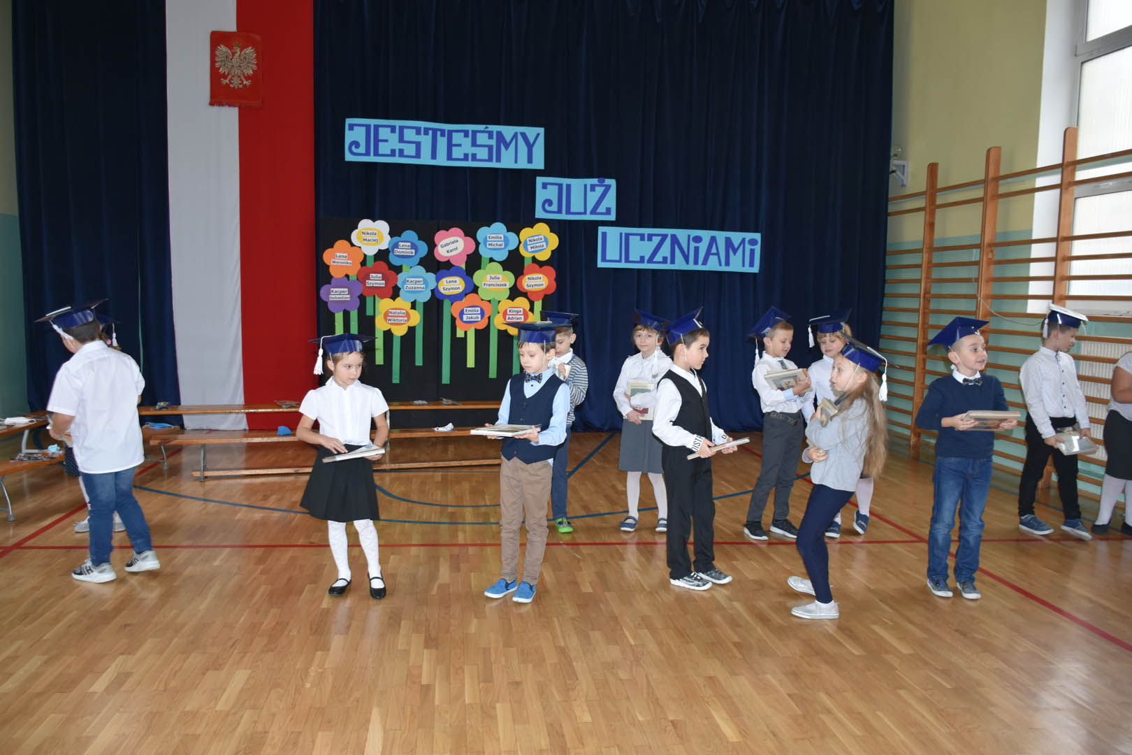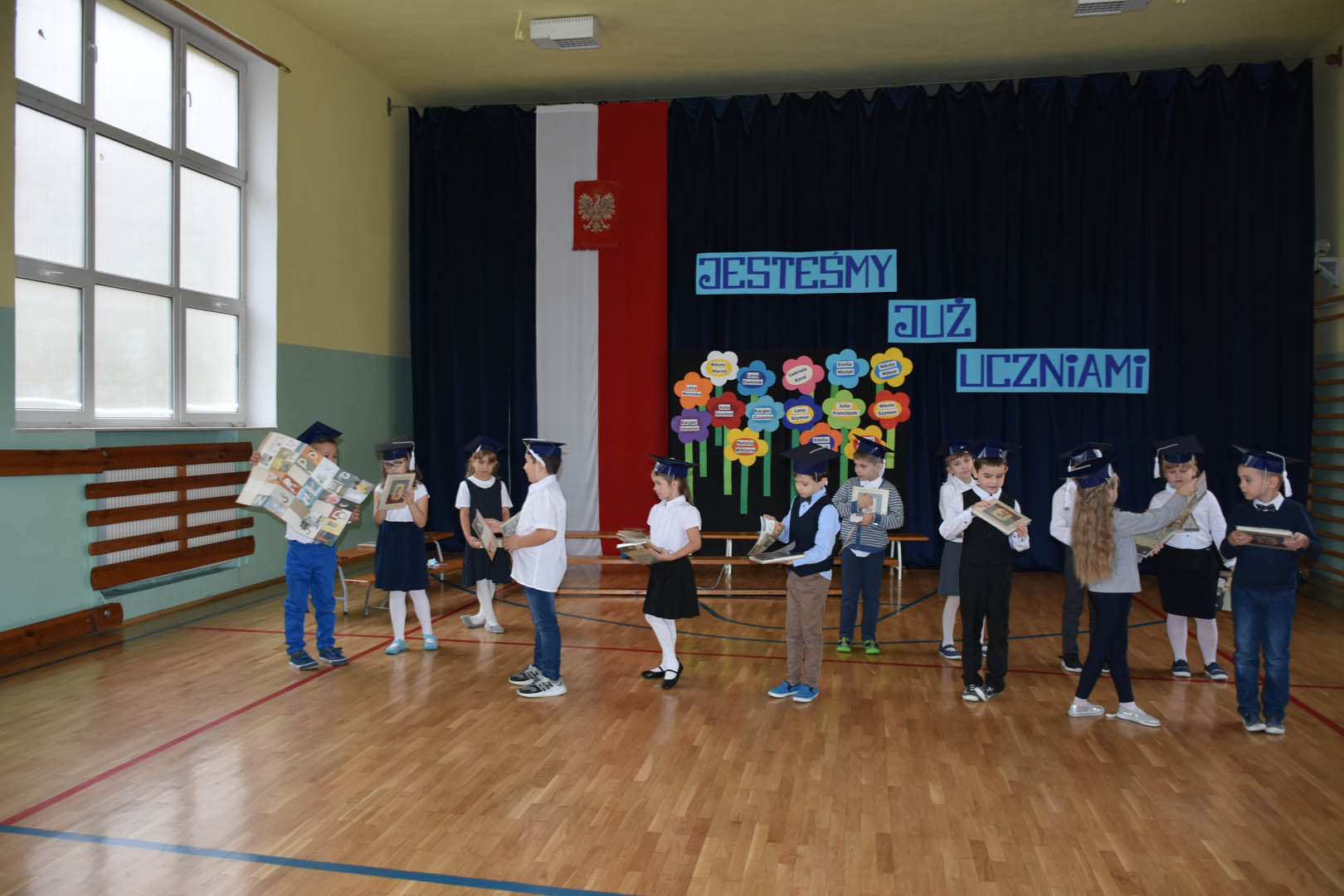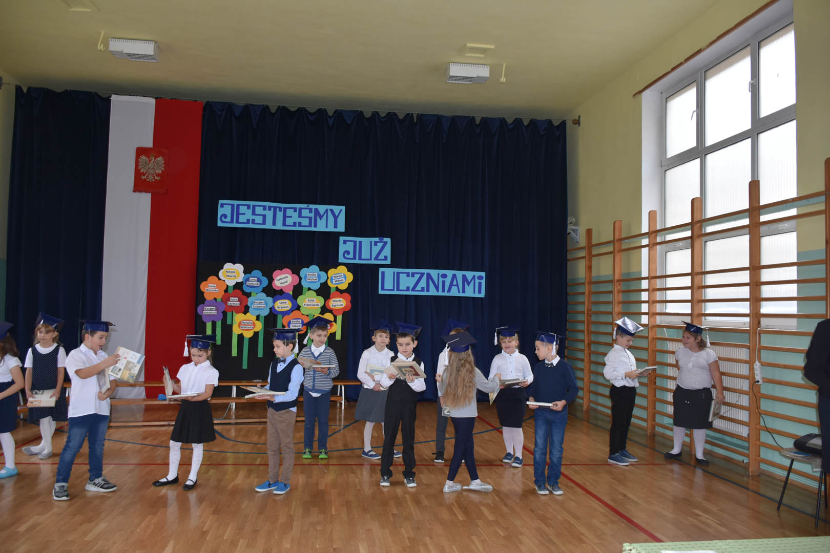 Po odśpiewaniu hymnu państwowego aktu pasowania na ucznia dokonała Dyrektor Szkoły Podstawowej im. Synów Pułku w Siennicy Różanej Pani Katarzyna Czajka, a wychowawczynie Pani Mariola Niewiadomska i Pani Jolanta Łukasik wręczyły swoim uczniom pamiątkowe dyplomy.