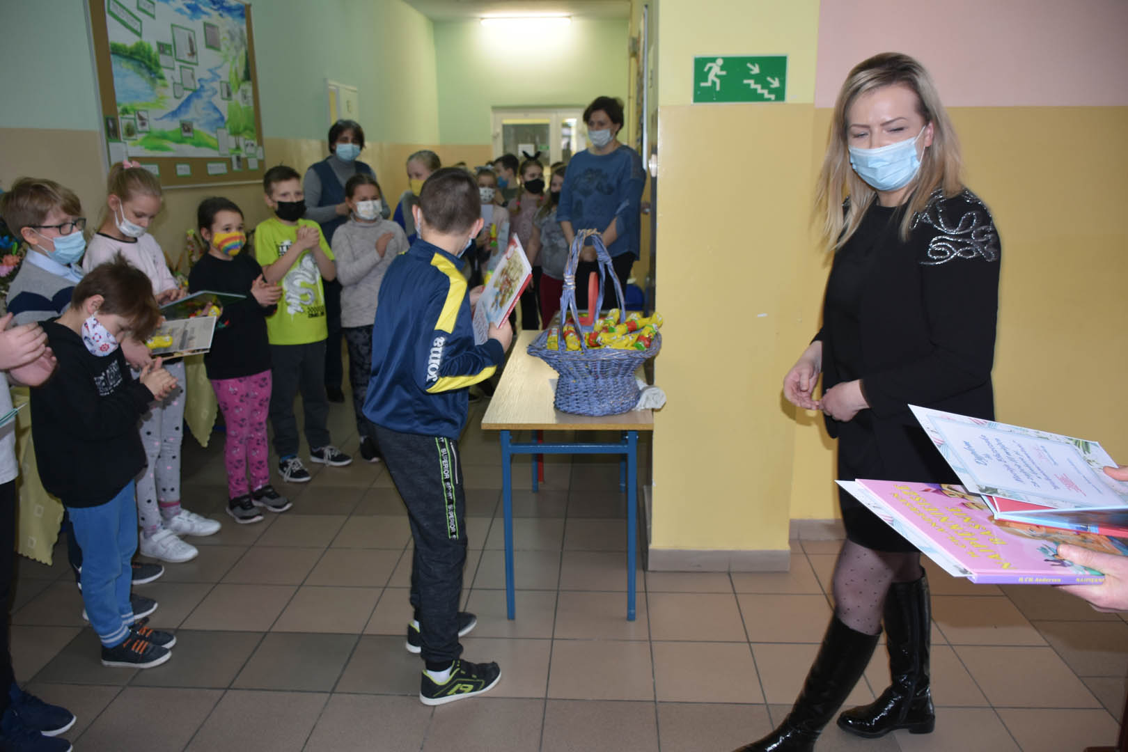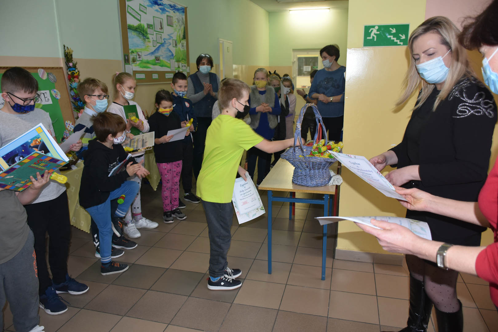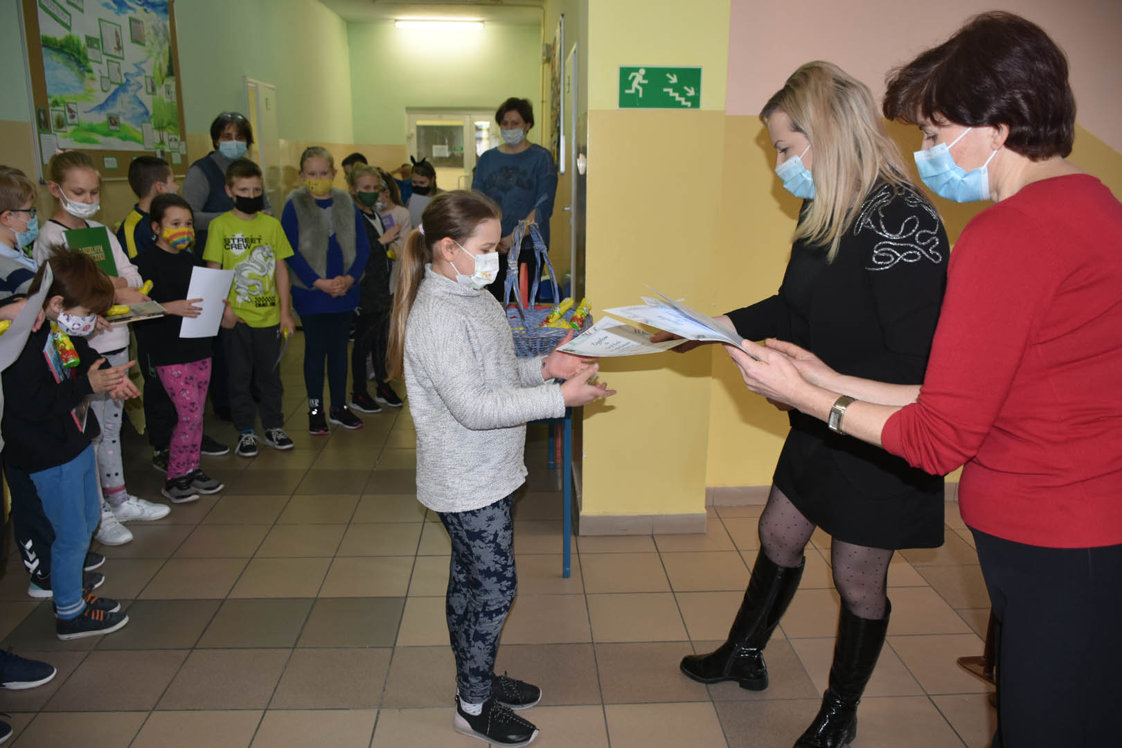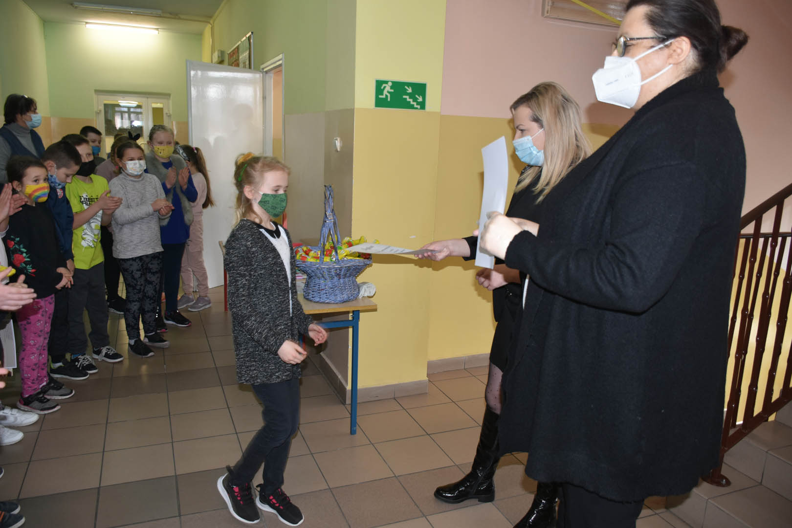 19 marca pani dyrektor Katarzyna Czajka wręczyła nagrody laureatom obu konkursów. Doceniała wysiłek uczniów i ich ogromne zaangażowanie w przygotowanie się do obu konkursów. Laureaci otrzymali książki, dyplomy oraz czekoladowe zajączki przypominające o nadchodzących świętach i nawiązujące tematycznie do konkursu „Wielkanocne rozmaitości”.