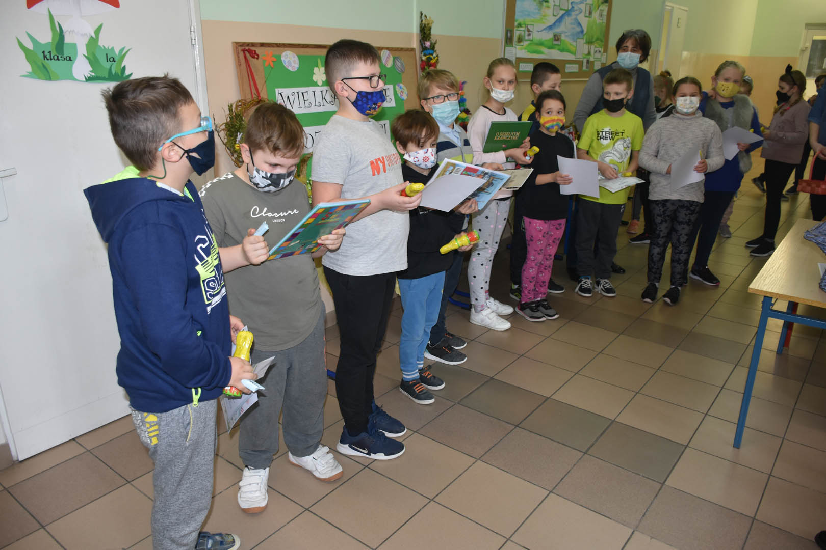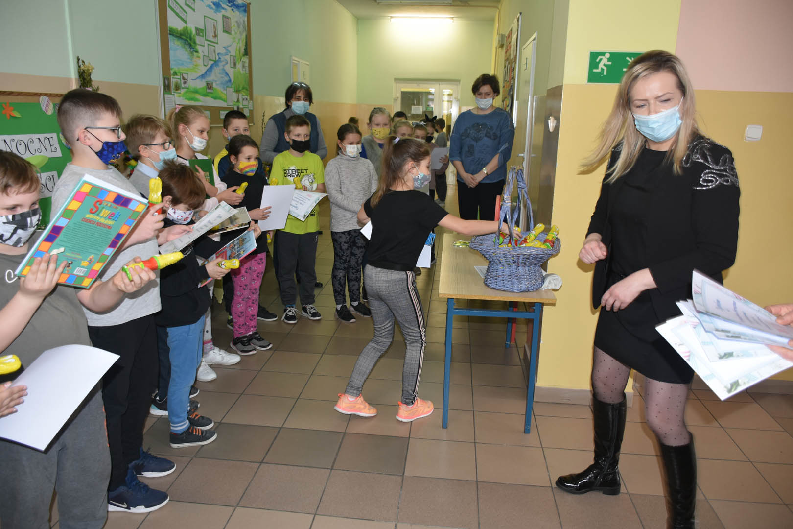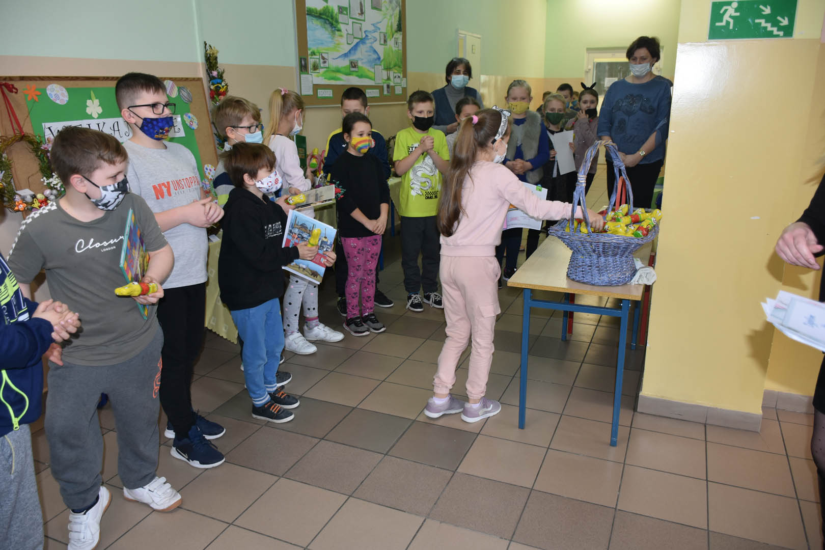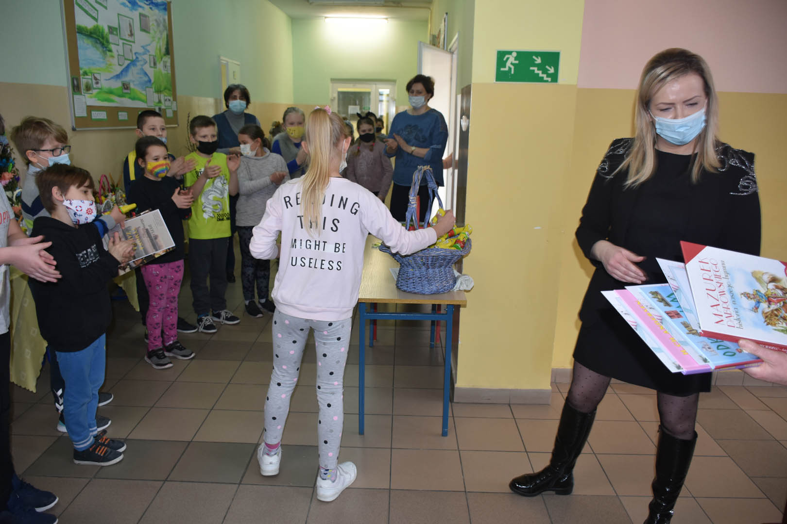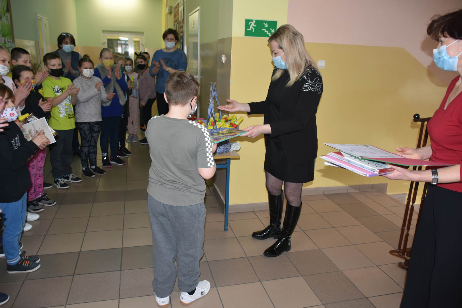 19 marca pani dyrektor Katarzyna Czajka wręczyła nagrody laureatom obu konkursów. Doceniała wysiłek uczniów i ich ogromne zaangażowanie w przygotowanie się do obu konkursów. Laureaci otrzymali książki, dyplomy oraz czekoladowe zajączki przypominające o nadchodzących świętach i nawiązujące tematycznie do konkursu „Wielkanocne rozmaitości”.