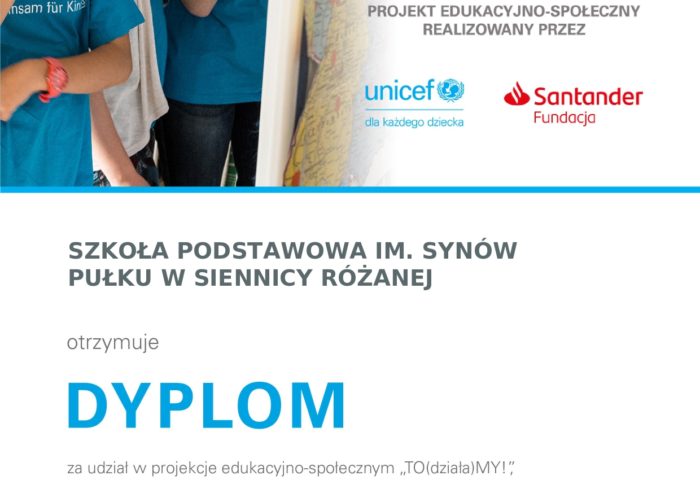 Zakończyliśmy realizację działań podjętych w ramach ogólnopolskiego projektu edukacyjno-społecznego UNICEF Polska i Fundacji Santander Bank Polska – „TO(działa)MY! Cele projektu: kształtowanie postawy zaangażowania społecznego wśród dzieci i młodzieży zwrócenie uwagi młodego pokolenia na potrzeby swojego najbliższego otoczenia, budowanie świadomości młodych ludzi w obszarach związanych z ekologią, zdrowiem i edukacją. W ramach projektu podjęliśmy się realizacji […]
