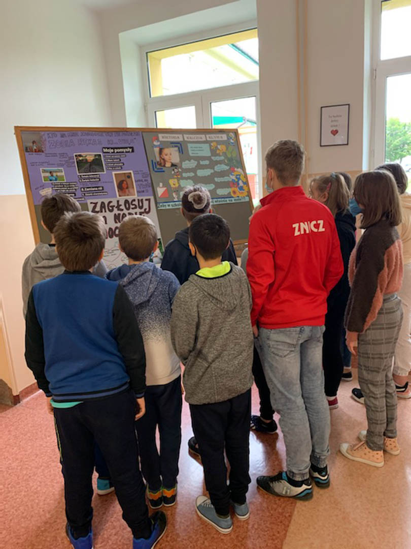 W tym dniu przy zachowaniu zasad bezpieczeństwa obowiązujących na terenie szkoły w okresie pandemii uczniowie klas IV – VIII wybierali swojego przedstawiciela oraz opiekuna SU. Kandydaci na przewodniczącego Samorządu Uczniowskiego to: