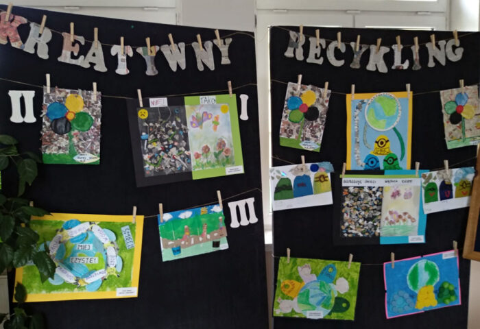 Wszystkie grupy przedszkolaków z dużym zaangażowaniem włączyły się w realizację szkolnego projektu „Kreatywny recykling”. Aby od najmłodszych lat kształtować świadomość potrzeby segregowania śmieci i poddawania ich recyklingowi, przeprowadzone zostały zajęcia, w ramach których dzieci poznały ideę ich segregacji. Następnie wykonały prace na konkurs plastyczny pt. „Segreguję odpady”. Zadanie konkursowe polegało na przygotowaniu pracy plastycznej w […]