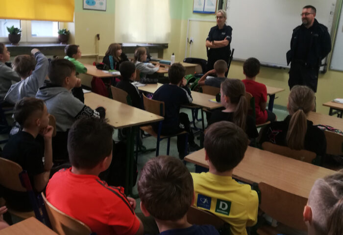 Uczniowie klas czwartych w piątek 28 października brali udział w nietypowej lekcji techniki, na którą zostali zaproszeni policjanci z miejscowego posterunku: sierżant sztabowy Anna Kędra i aspirant Radosław Zaraza. Opowiedzieli oni uczniom o przyczynach wypadków drogowych, podstawowych przepisach ruchu drogowego dotyczących rowerzystów oraz zawodzie policjanta. Dzieci mogły zobaczyć kajdanki i pałkę policyjną. Nasi goście poświęcili […]