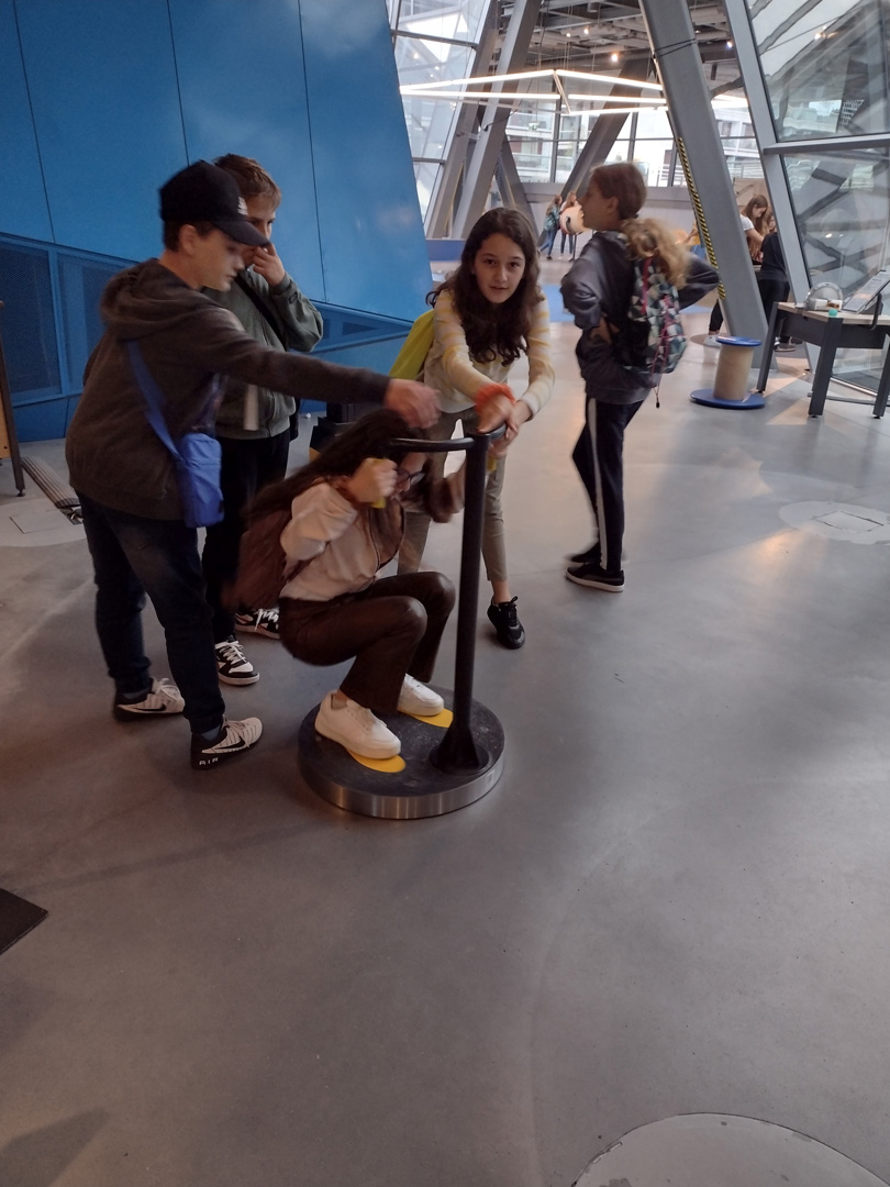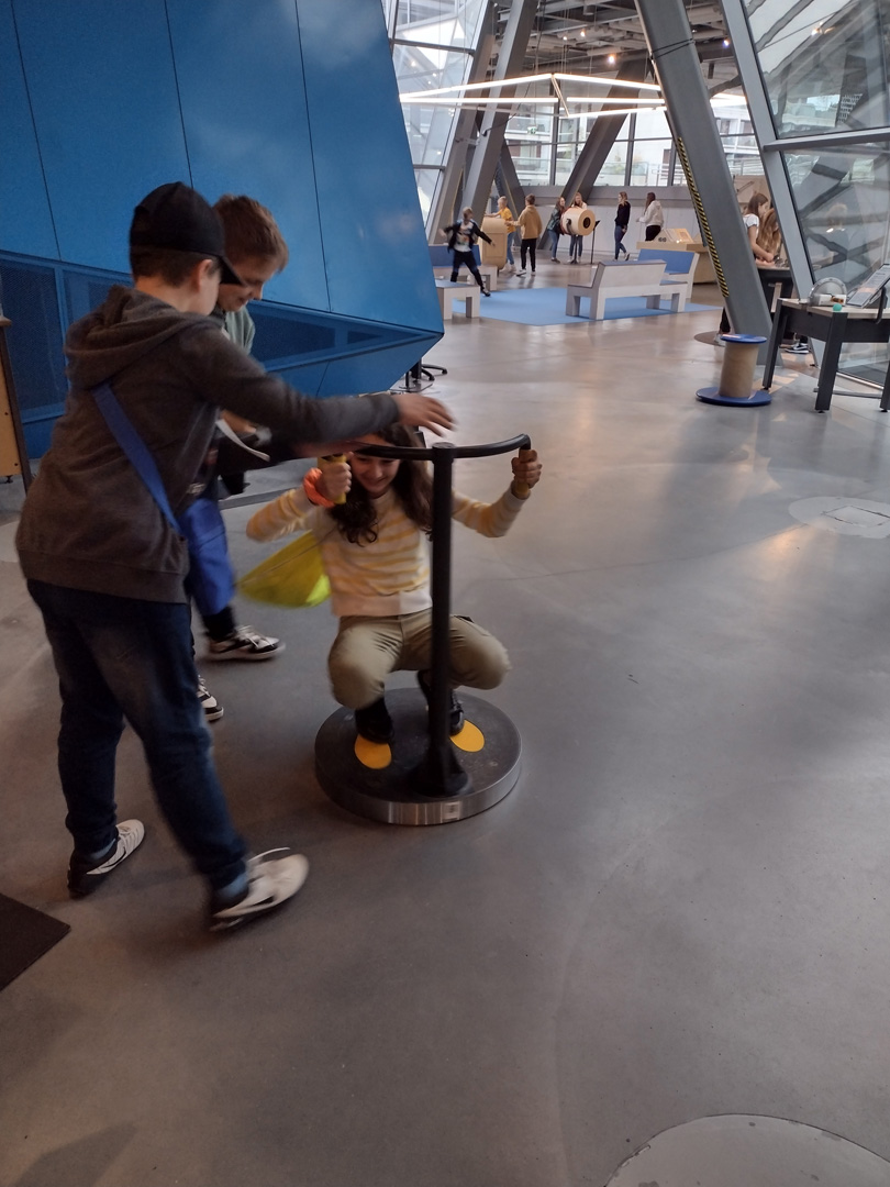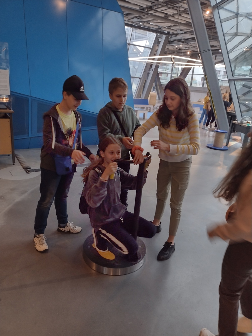 Kolejnym punktem wycieczki był pobyt w Centrum Nauki Kopernik, gdzie uczniowie mogli poznać prawa nauki poprzez samodzielnie przeprowadzone doświadczenia na interaktywnych wystawach. Wystawa czasowa „GraMY – WYgramy” to niezwykła podróż przez krainę dźwięków i wibracji. Stukając, pukając, poklepując i dmuchając, uczniowie zmieniali eksponaty w instrumenty, na których grali własne melodie. Jedną z atrakcji było również Planetarium, w którym uczestnicy wycieczki obejrzeli pokaz zatytułowany “Niewidzialny Wszechświat”.