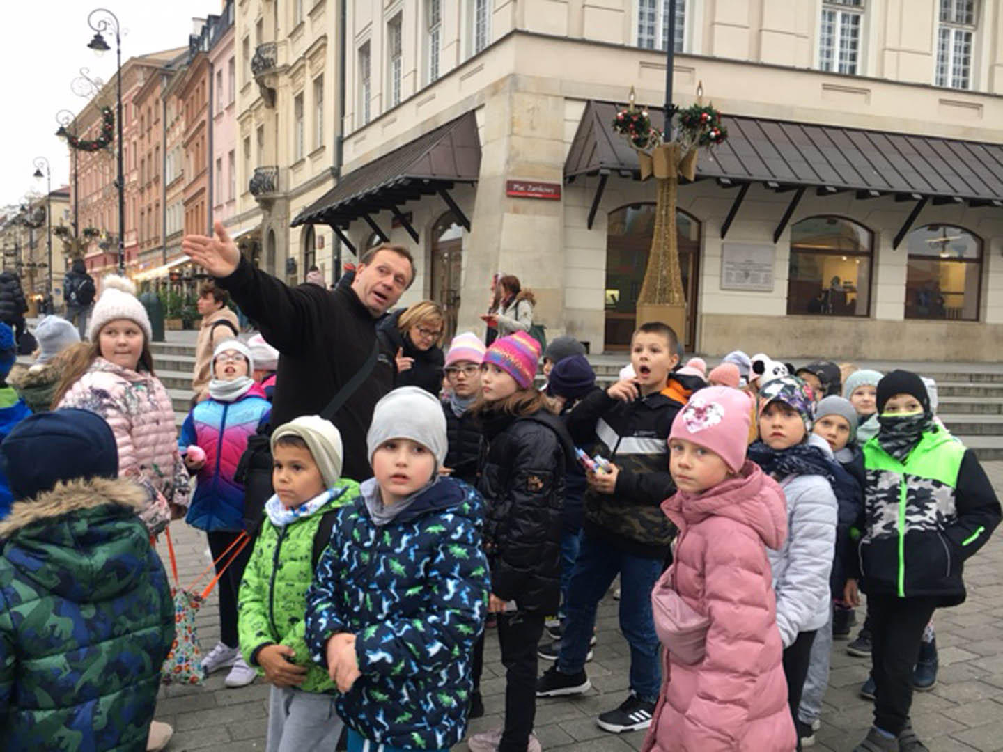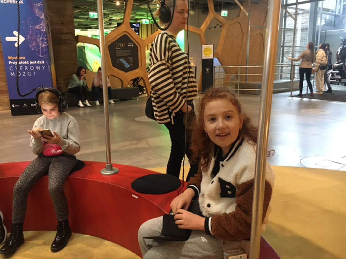 Skąd się biorą kolory? Co człowiek ma wewnątrz? Jak powstaje dźwięk? Dlaczego magnes przyciąga? Te i inne pytania gnębiły uczniów klas 1-3. Dzieci postanowiły raz położyć kres wątpliwościom i udały się wraz ze swoimi wychowawczyniami do Centrum Nauki Kopernik, by odnaleźć odpowiedzi na dręczące je pytania. 15 listopada mali odkrywcy wyruszyli do Warszawy. Pełni ekscytacji na pierwszą niespodziankę natknęli się podczas… postoju, kiedy to nad ich głowami zaczęły nieoczekiwanie przelatywać piękne papugi ary. Rozweseleni uczniowie kontynuowali podróż, a po wjeździe do stolicy nie mogli doczekać się widoku bryły Stadionu Narodowego. Centrum Nauki Kopernik zapewniło poszukiwaczom przygód mnóstwo atrakcji. Uczniowie chętnie wykonywali przeróżne doświadczenia, wędrując po piętrach gmachu. Oczywiście nie ominęli sklepu z pamiątkami. Jednak największe wrażenie wywarło na dzieciach planetarium, gdzie mogły nauczyć się, jak rozpoznawać gwiazdozbiory czy w którym punkcie nieba odnaleźć Gwiazdę Polarną. W planetarium dzieci obejrzały również film „Astronauta”, z którego dowiedziały się, jak wpływ mają podróże kosmiczne na organizm ludzki. Spacer po Starym Mieście pozwolił odetchnąć po naukowym trudzie. W spowitych listopadowym zmierzchem Łazienkach Królewskich uczniowie pożegnali się ze stolicą i rozpoczęli wesołą podróż powrotną. Nikomu nie brakowało sił i wigoru, kiedy dzieci dzieliły się wrażeniami dnia i śpiewały piosenki.
