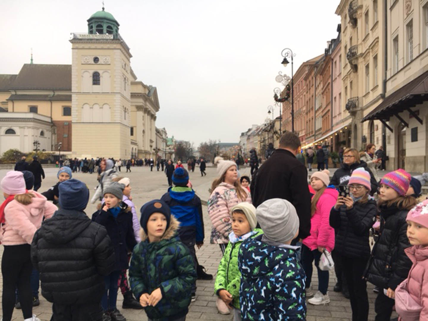 Skąd się biorą kolory? Co człowiek ma wewnątrz? Jak powstaje dźwięk? Dlaczego magnes przyciąga? Te i inne pytania gnębiły uczniów klas 1-3. Dzieci postanowiły raz położyć kres wątpliwościom i udały się wraz ze swoimi wychowawczyniami do Centrum Nauki Kopernik, by odnaleźć odpowiedzi na dręczące je pytania. 15 listopada mali odkrywcy wyruszyli do Warszawy. Pełni ekscytacji na pierwszą niespodziankę natknęli się podczas… postoju, kiedy to nad ich głowami zaczęły nieoczekiwanie przelatywać piękne papugi ary. Rozweseleni uczniowie kontynuowali podróż, a po wjeździe do stolicy nie mogli doczekać się widoku bryły Stadionu Narodowego. Centrum Nauki Kopernik zapewniło poszukiwaczom przygód mnóstwo atrakcji. Uczniowie chętnie wykonywali przeróżne doświadczenia, wędrując po piętrach gmachu. Oczywiście nie ominęli sklepu z pamiątkami. Jednak największe wrażenie wywarło na dzieciach planetarium, gdzie mogły nauczyć się, jak rozpoznawać gwiazdozbiory czy w którym punkcie nieba odnaleźć Gwiazdę Polarną. W planetarium dzieci obejrzały również film „Astronauta”, z którego dowiedziały się, jak wpływ mają podróże kosmiczne na organizm ludzki. Spacer po Starym Mieście pozwolił odetchnąć po naukowym trudzie. W spowitych listopadowym zmierzchem Łazienkach Królewskich uczniowie pożegnali się ze stolicą i rozpoczęli wesołą podróż powrotną. Nikomu nie brakowało sił i wigoru, kiedy dzieci dzieliły się wrażeniami dnia i śpiewały piosenki.