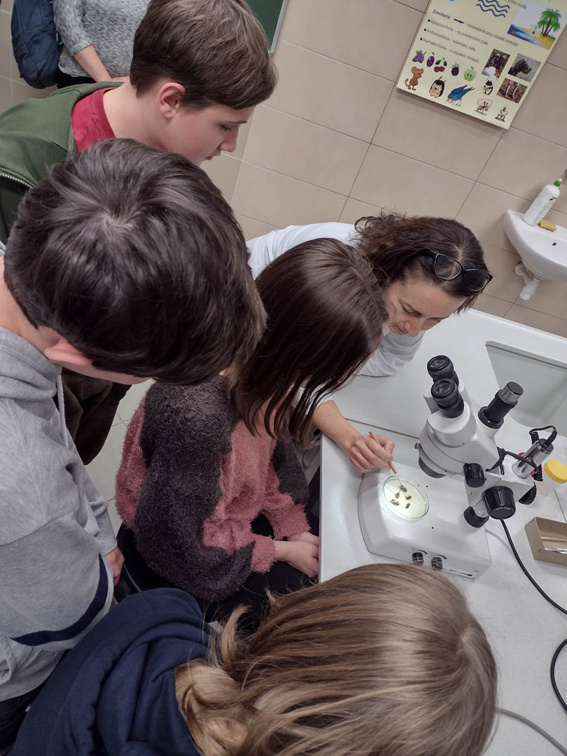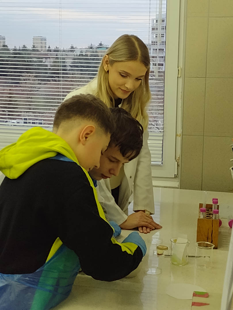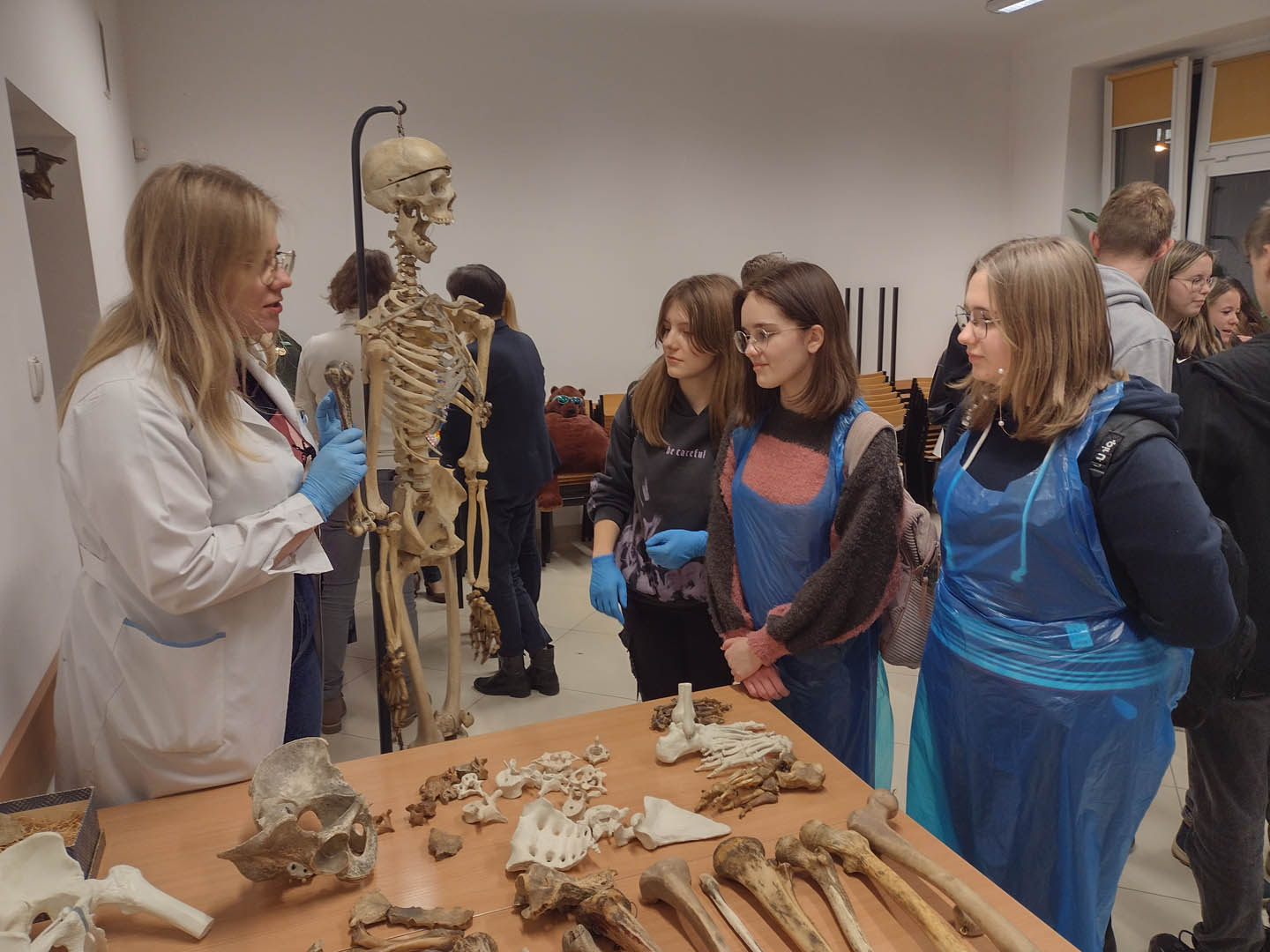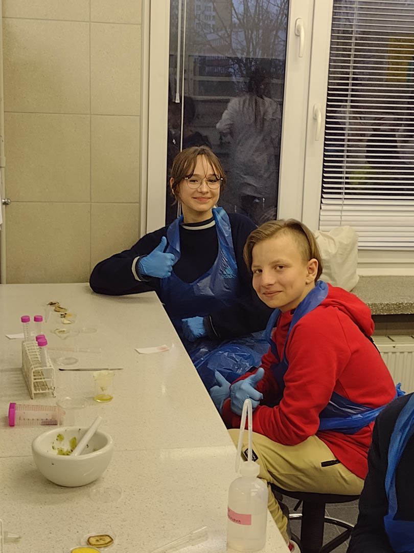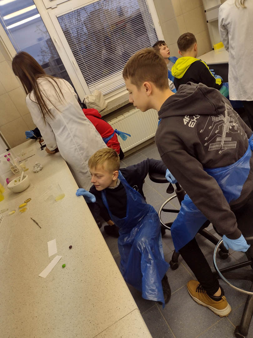 Dnia 13 stycznia 2023 r. uczniowie naszej szkoły wzięli kolejny już raz udział w ogólnopolskiej akcji „Noc Biologów”. W tym dniu „noc” dla uczniów rozpoczęła się już krótko po godzinie 15, bo na tę godzinę były zaplanowane pierwsze zajęcia na Wydziale Biologii i Biotechnologii UMCS w Lublinie. Młodzież uczestniczyła w warsztatach, pokazach, a także zajęciach laboratoryjnych. Uczestnicy warsztatów „Wiem, co jem” wykrywali skrobię w produktach spożywczych, dokonywali izolacji kwasów nukleinowych z owoców, rozdzielali i badali skład barwników obecnych w dostępnych słodyczach. Na zajęciach laboratoryjnych „Pyłek roślinny i zapylanie” oraz „Kwiaty, pszczoły i owoce. Współdziałanie dla bioróżnorodności” poznawali budowę kwiatów, ziaren pyłku i pszczoły miodnej, a także zostali zapoznani z procesem zapylenia. W trakcie zajęć korzystali z mikroskopów, obserwując pyłek roślin zbierany przez pszczoły, a także sami sporządzali preparaty mikroskopowe. Mogli sobie uświadomić znaczenie pyłku oraz procesów zapylania w przyrodzie i działalności człowieka. Na pokazach pt. „Opowieści z krypty” odbyła się prezentacja wybranych narządów anatomicznych oraz ciekawostek dotyczących ich budowy i funkcjonowania. Ostatnim punktem imprezy były warsztaty „Bezkręgowce na wyciągnięcie ręki”, gdzie każdy uczestnik mógł samodzielnie wykonać preparat mikroskopowy z żywym organizmem, a także poobserwować i „pogłaskać” żywe owady tropikalne. Czy młodzi adepci nauki dobrze się bawili? Zobaczcie sami…