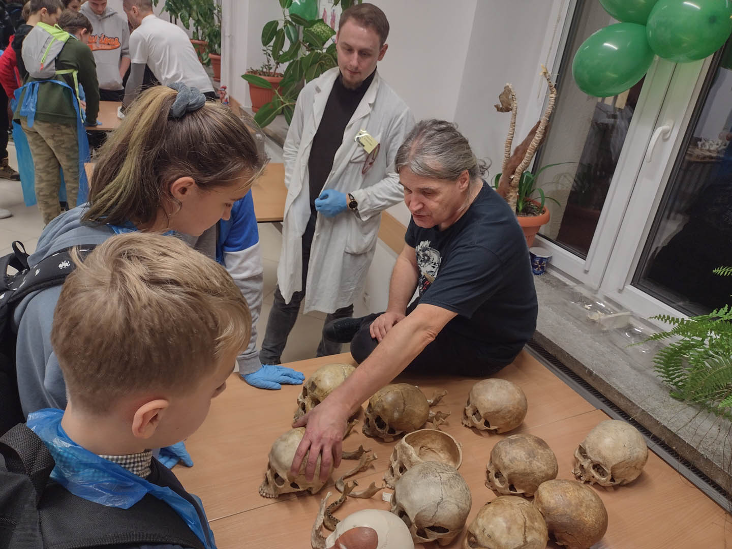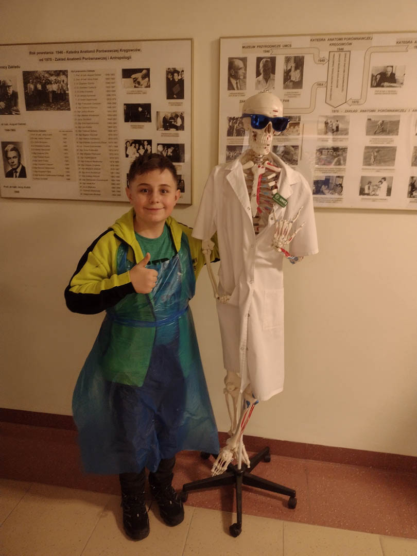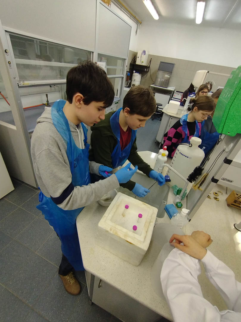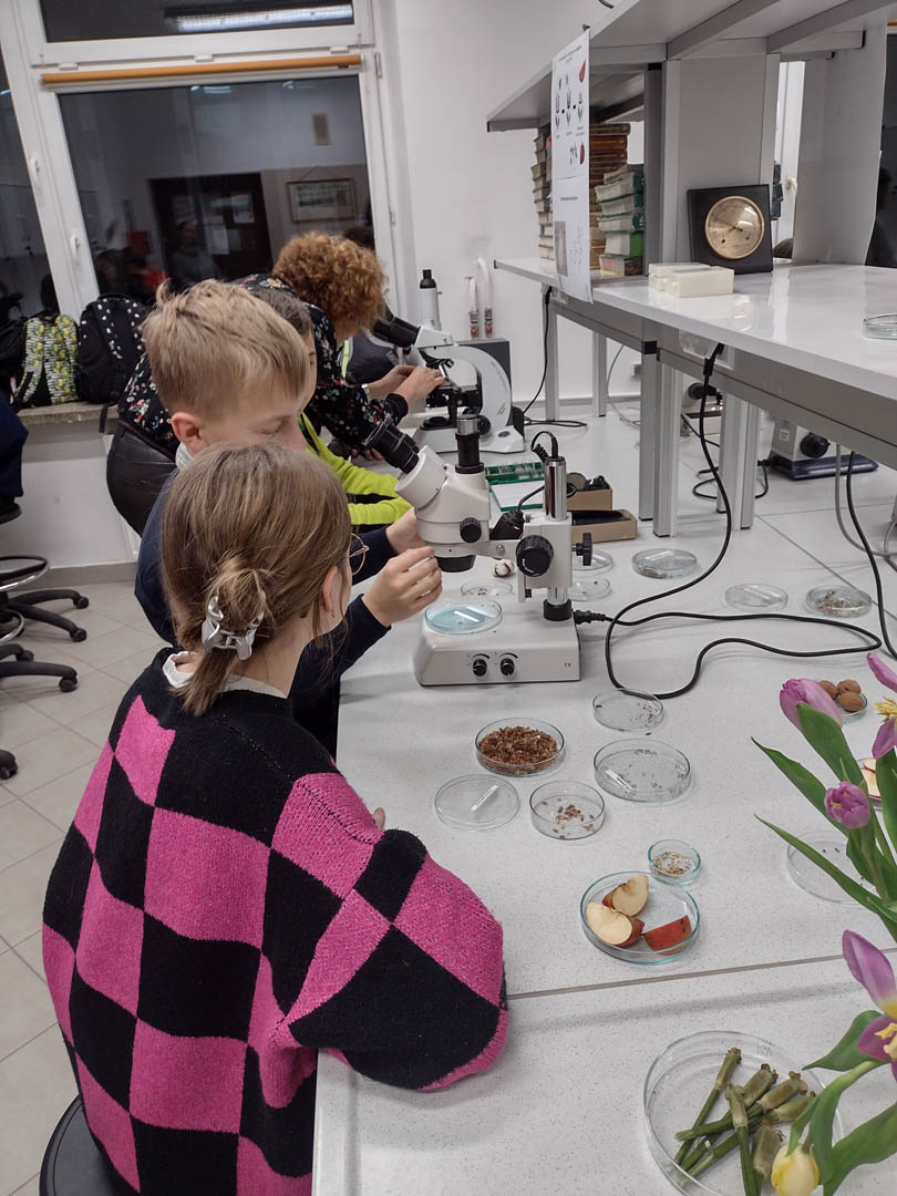 Dnia 13 stycznia 2023 r. uczniowie naszej szkoły wzięli kolejny już raz udział w ogólnopolskiej akcji „Noc Biologów”. W tym dniu „noc” dla uczniów rozpoczęła się już krótko po godzinie 15, bo na tę godzinę były zaplanowane pierwsze zajęcia na Wydziale Biologii i Biotechnologii UMCS w Lublinie. Młodzież uczestniczyła w warsztatach, pokazach, a także zajęciach laboratoryjnych. Uczestnicy warsztatów „Wiem, co jem” wykrywali skrobię w produktach spożywczych, dokonywali izolacji kwasów nukleinowych z owoców, rozdzielali i badali skład barwników obecnych w dostępnych słodyczach. Na zajęciach laboratoryjnych „Pyłek roślinny i zapylanie” oraz „Kwiaty, pszczoły i owoce. Współdziałanie dla bioróżnorodności” poznawali budowę kwiatów, ziaren pyłku i pszczoły miodnej, a także zostali zapoznani z procesem zapylenia. W trakcie zajęć korzystali z mikroskopów, obserwując pyłek roślin zbierany przez pszczoły, a także sami sporządzali preparaty mikroskopowe. Mogli sobie uświadomić znaczenie pyłku oraz procesów zapylania w przyrodzie i działalności człowieka. Na pokazach pt. „Opowieści z krypty” odbyła się prezentacja wybranych narządów anatomicznych oraz ciekawostek dotyczących ich budowy i funkcjonowania. Ostatnim punktem imprezy były warsztaty „Bezkręgowce na wyciągnięcie ręki”, gdzie każdy uczestnik mógł samodzielnie wykonać preparat mikroskopowy z żywym organizmem, a także poobserwować i „pogłaskać” żywe owady tropikalne. Czy młodzi adepci nauki dobrze się bawili? Zobaczcie sami…