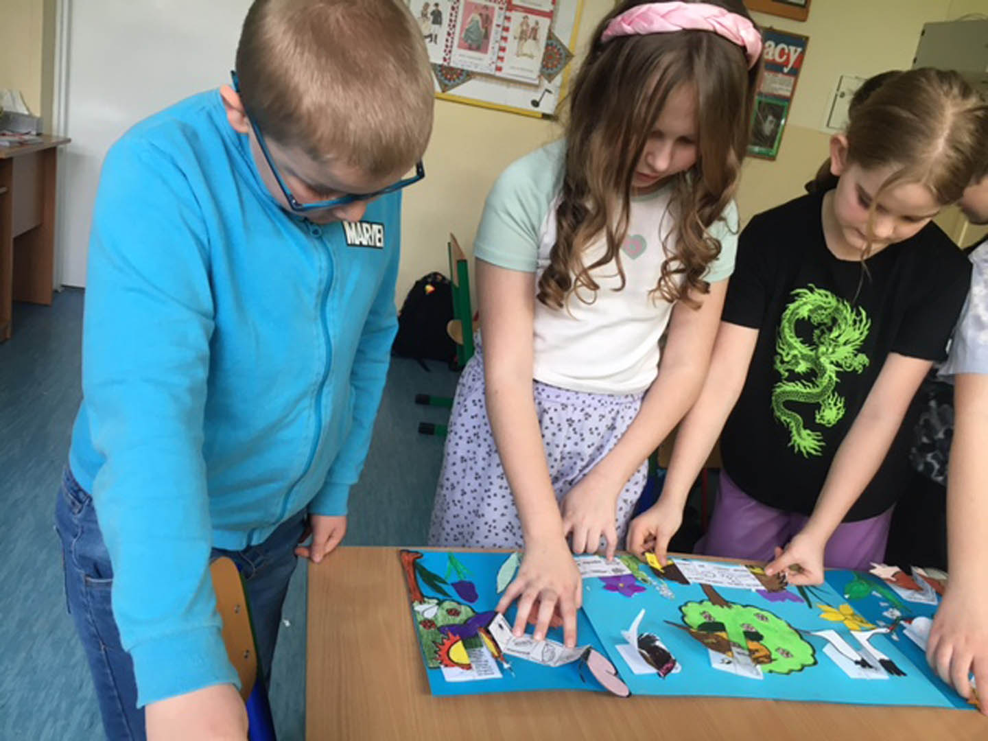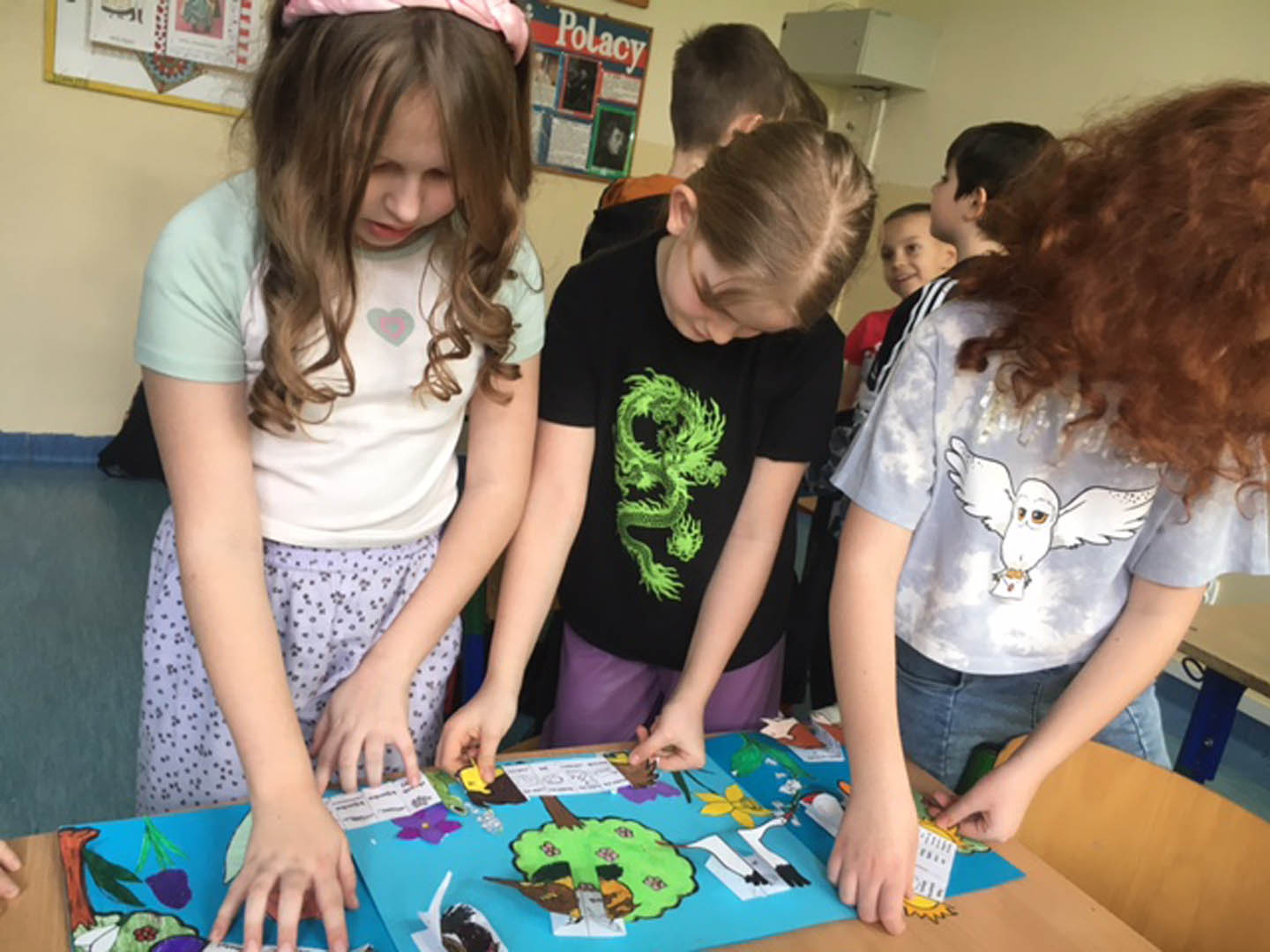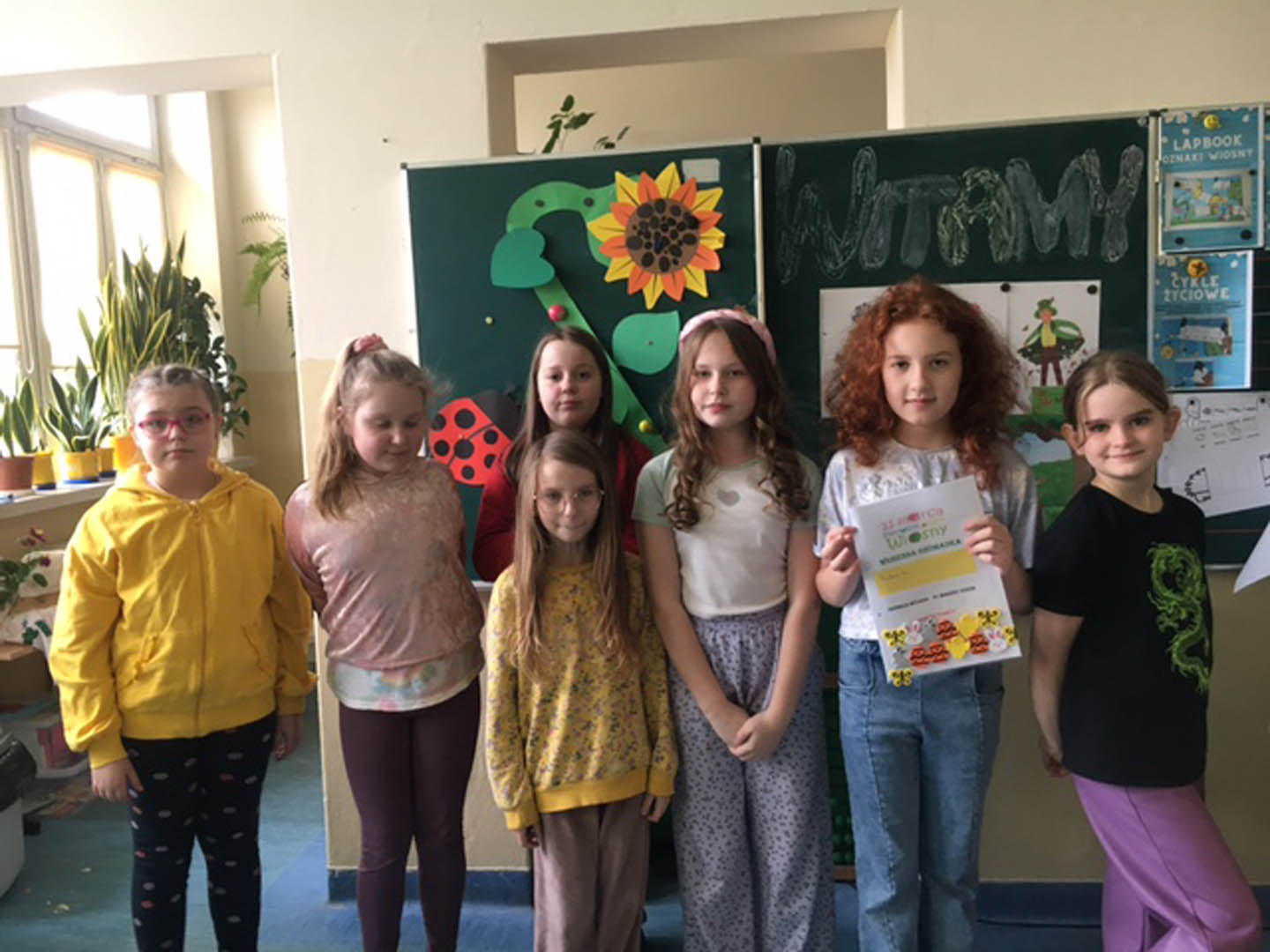 Wiosna to najpiękniejsza pora roku, dlatego Pierwszy Dzień Wiosny jest bardzo radosny i wyczekiwany przez wszystkie dzieci. 21 marca uczniowie klasy IIIa zgodnie z tradycją pożegnały zimę i powitały upragnioną wiosnę. Tego dnia zajęcia rozpoczęliśmy od przygotowania popiersia Pani Wiosny. Kolorową , przystrojoną kwiatami Panią Wiosnę uczniowie zabrali do domu. W klasie było bardzo wesoło, stworzono dwie wiosenne gromadki: dziewcząt i chłopców pod nazwami: „Kwiatuszki Hani” i „Piłka nożna”. Uczniowie rywalizowali ze sobą rozwiązując quizy, zagadki i matematyczne zadania o aktualnej porze roku, a także układali puzzle, które dostaliśmy w ramach współpracy z kl. IV. Jednym punktem zwyciężyły dziewczynki i jako zwycięska wiosenna gromadka wymyśliły zadanie dla chłopców: każdy z nich miał zaprezentować swój talent. Na zakończenie uczniowie wykonali wspólnie lapbook „Oznaki wiosny”