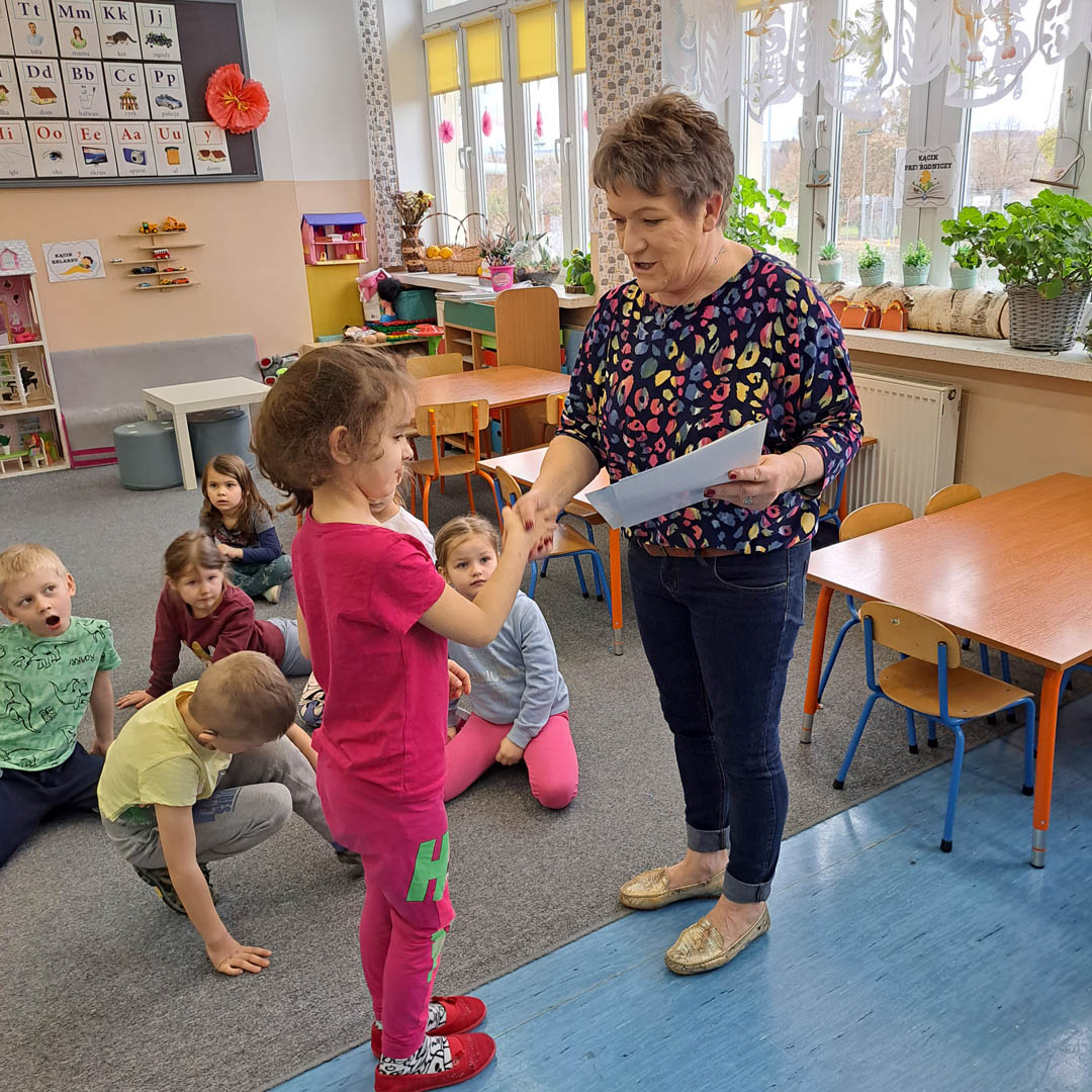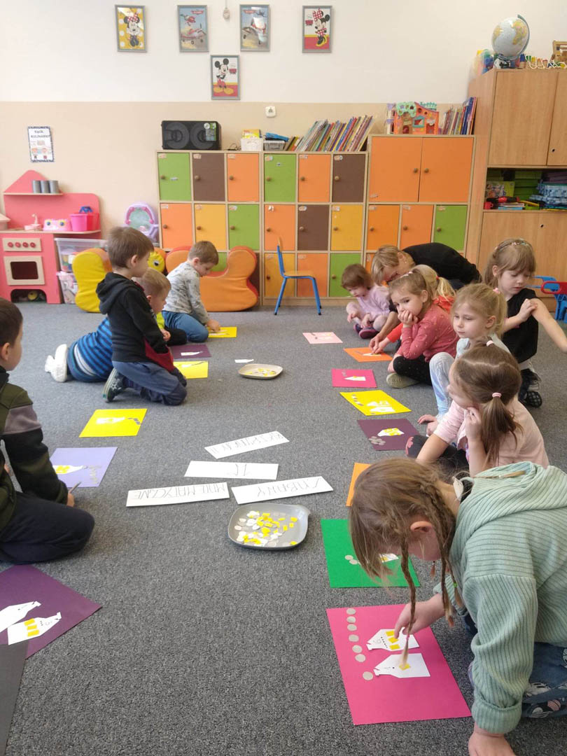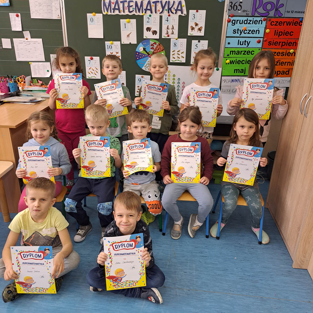 Wszystkie grupy przedszkolne przyłączyły się do ogólnoszkolnego projektu „Tydzień z matematyką”. Dzieci z wielkim zainteresowaniem uczestniczyły w zabawach matematycznych. Rozwijały orientację w przestrzeni, tworzyły zbiory, utrwalały znajomość figur geometrycznych, przeliczały, porównywały, klasyfikowały i kodowały. Poznały narzędzia służące do pomiaru długości, ważyły różnorodne przedmioty i porównywały ich wagę. Wspólnie z wychowawczyniami grały w matematyczne i logiczne gry planszowe, które uczą zdrowej rywalizacji, ale także godzenia się z porażką. Wystukując i licząc rytmy, dzieci miały okazję przekonać się, iż matematyka zawarta jest również w muzyce.