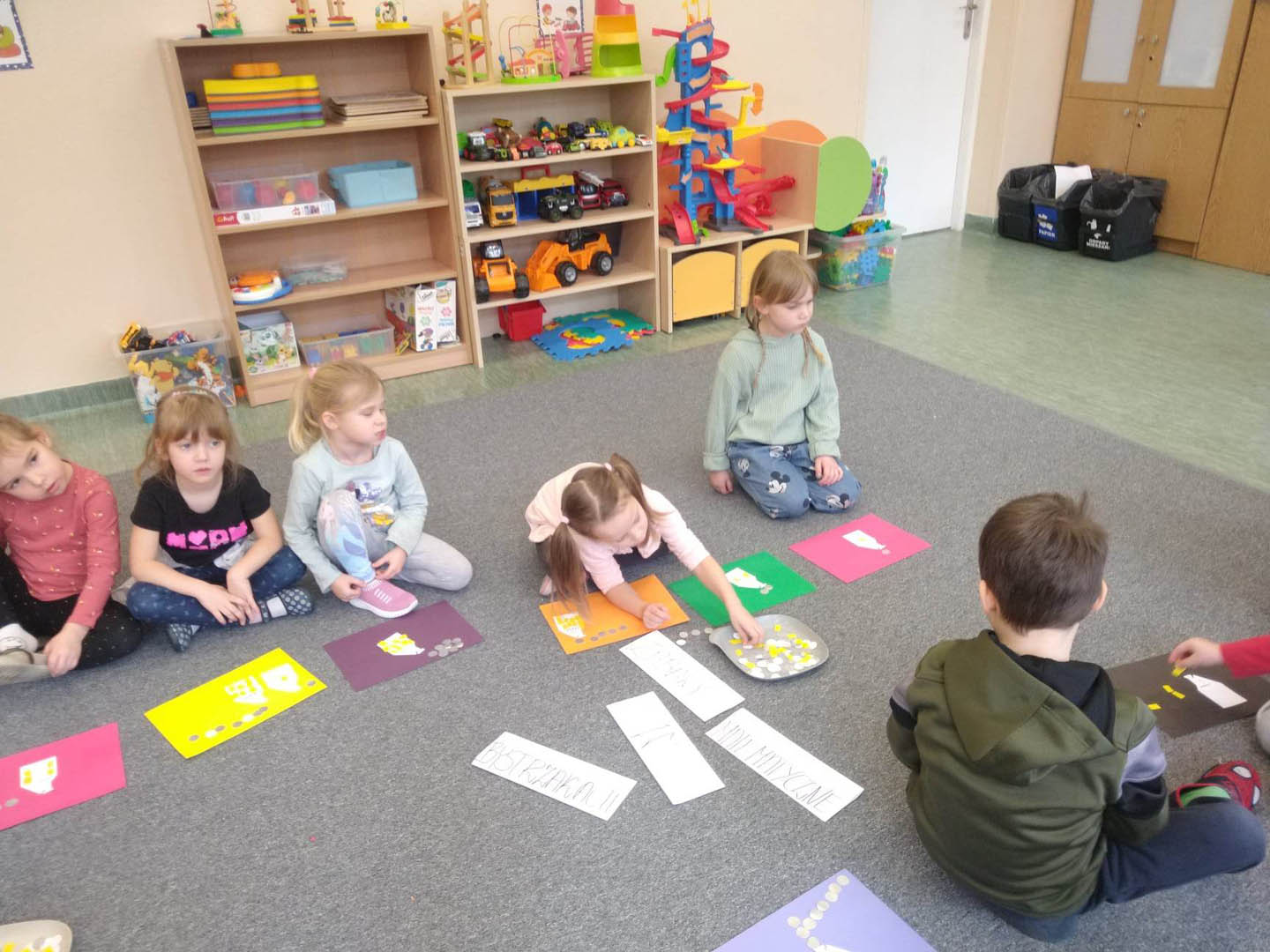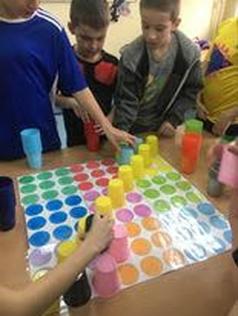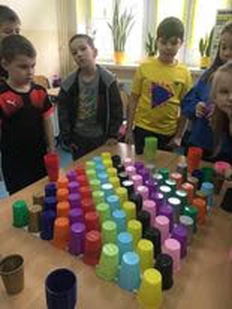 Na jednej z przerw dzieci w nietypowy sposób zagrały w sudoku – jedną z najpopularniejszych gier logicznych wszechczasów. Tak ustawiły kubeczki na planszy, aby zarówno w linii pionowej jak i poziomej nie powtórzył się kubeczek w tym samym kolorze.