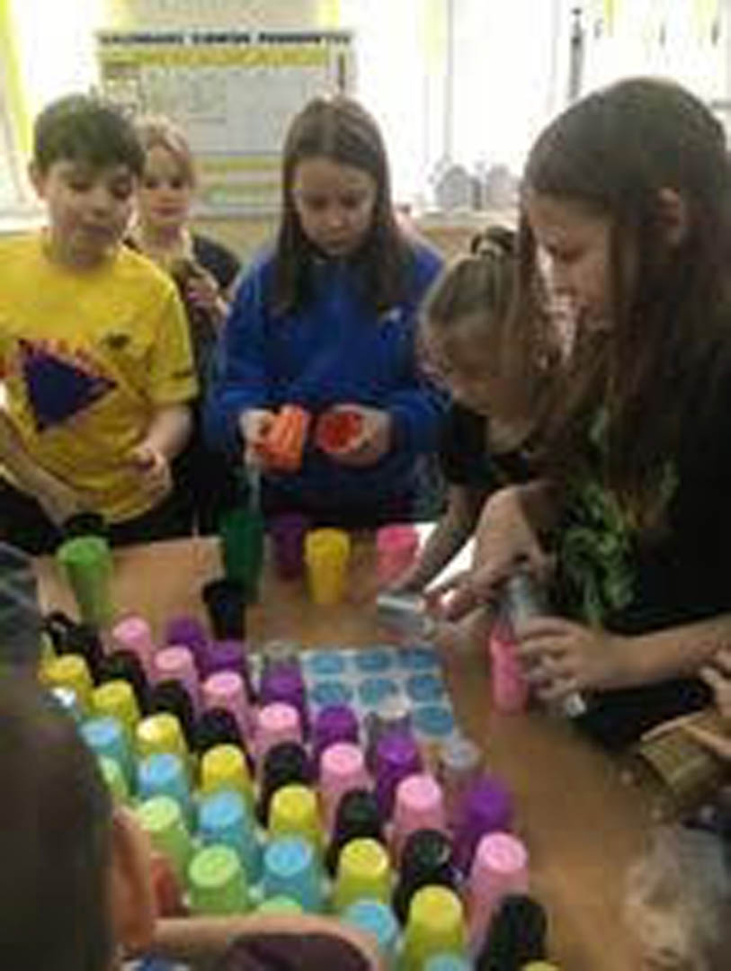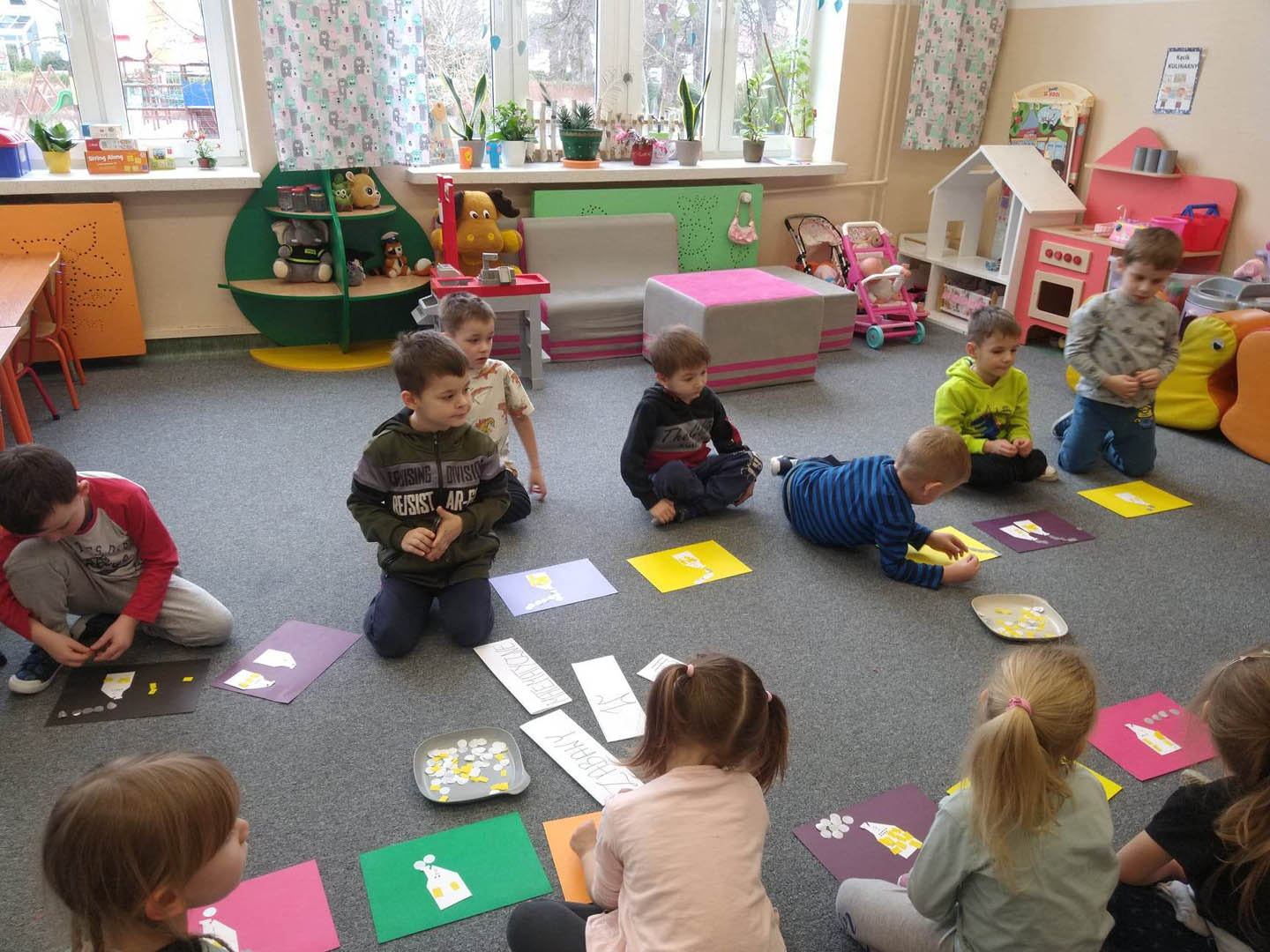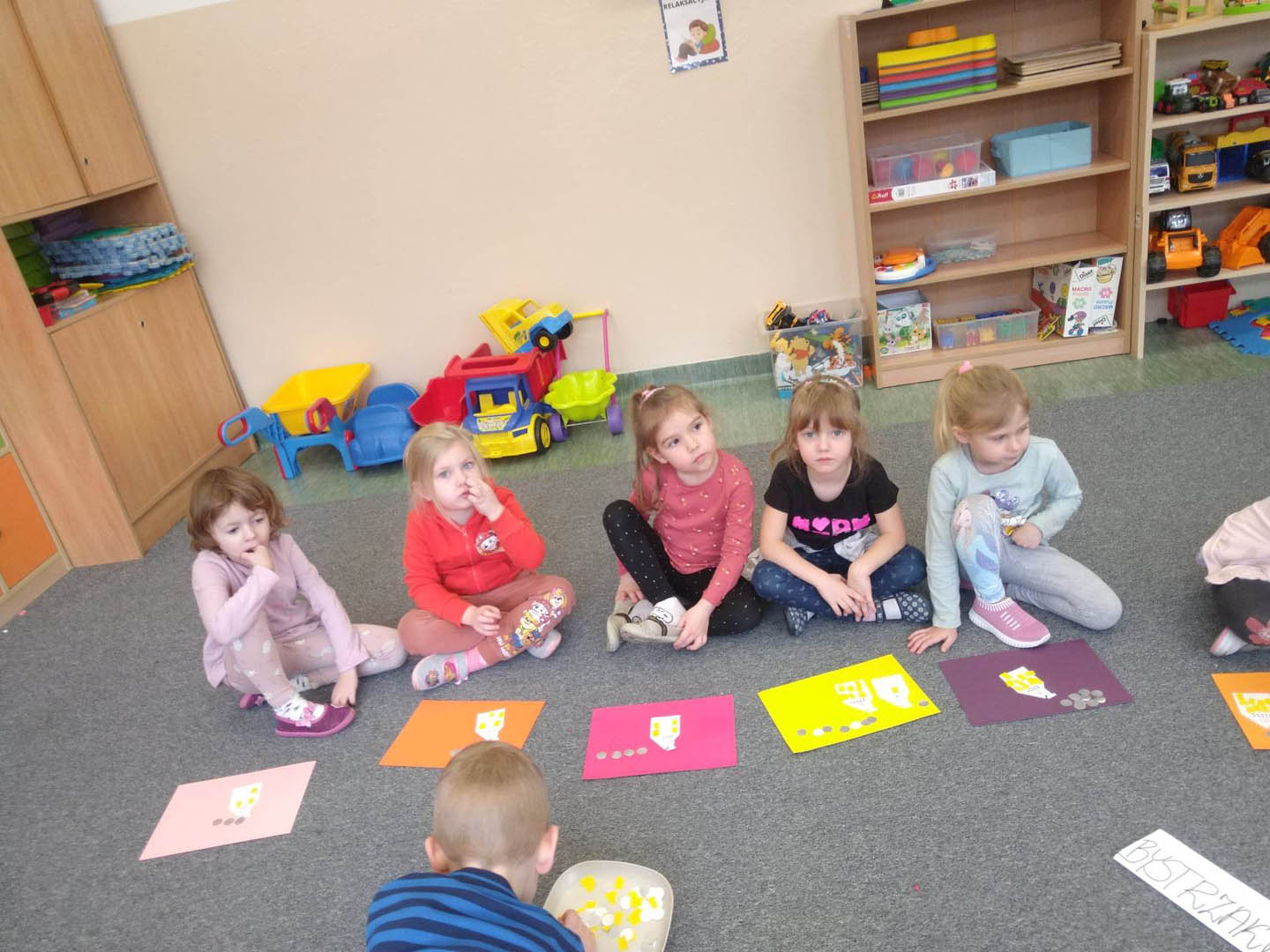 Na jednej z przerw dzieci w nietypowy sposób zagrały w sudoku – jedną z najpopularniejszych gier logicznych wszechczasów. Tak ustawiły kubeczki na planszy, aby zarówno w linii pionowej jak i poziomej nie powtórzył się kubeczek w tym samym kolorze.