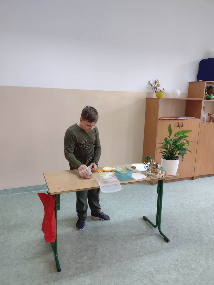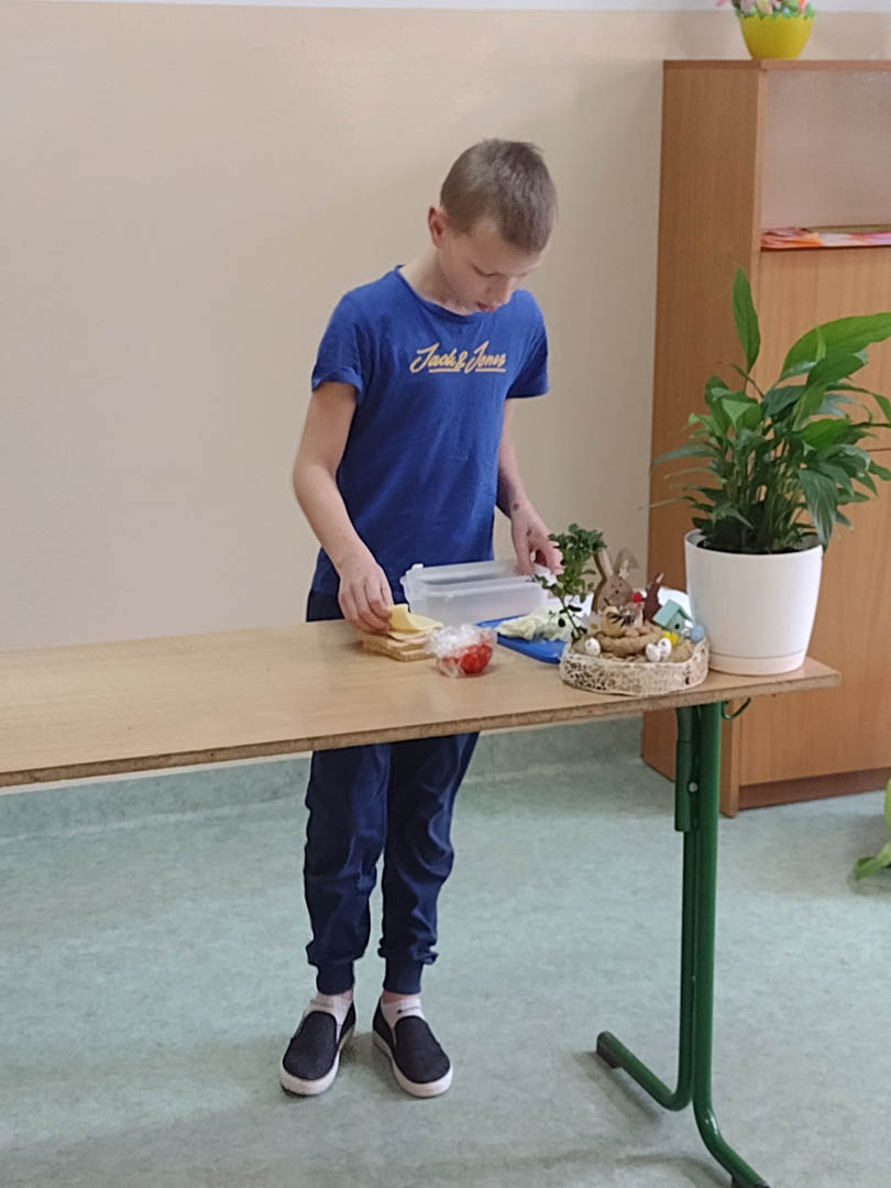 Dlaczego warto zdrowo się odżywiać? Jak racjonalnie komponować codzienną dietę? Jakie są podstawowe zasady zdrowego odżywiania? Na te pytania próbowali odpowiedzieć uczniowie klasy 5 podczas realizacji projektu „My healthy diet” na lekcji języka angielskiego. Na początku poznali podstawowe słownictwo związane z produktami spożywczymi oraz posiłkami spożywanymi w ciągu dnia. Następnie, po obejrzeniu krótkiego filmiku, dyskutowali o zasadach zdrowego odżywiania. Efektem końcowym projektu było przekazanie kilku informacji o swojej diecie i przygotowanie prostej i zdrowej przekąski.