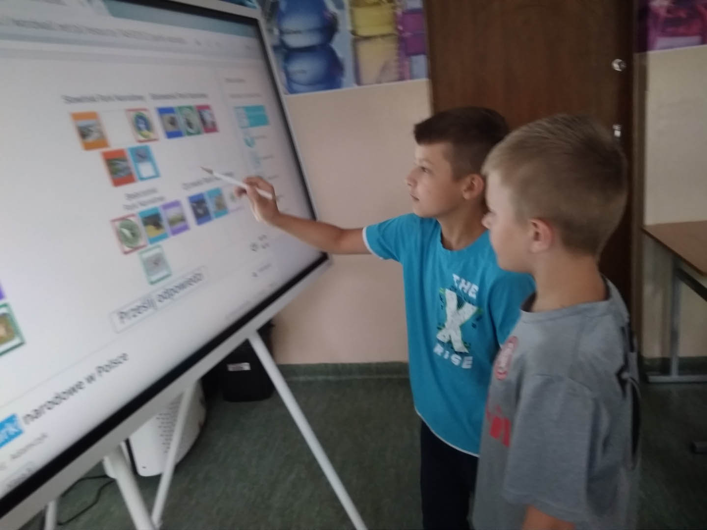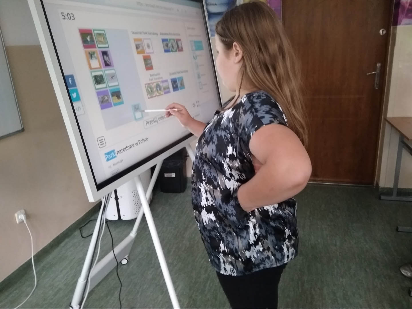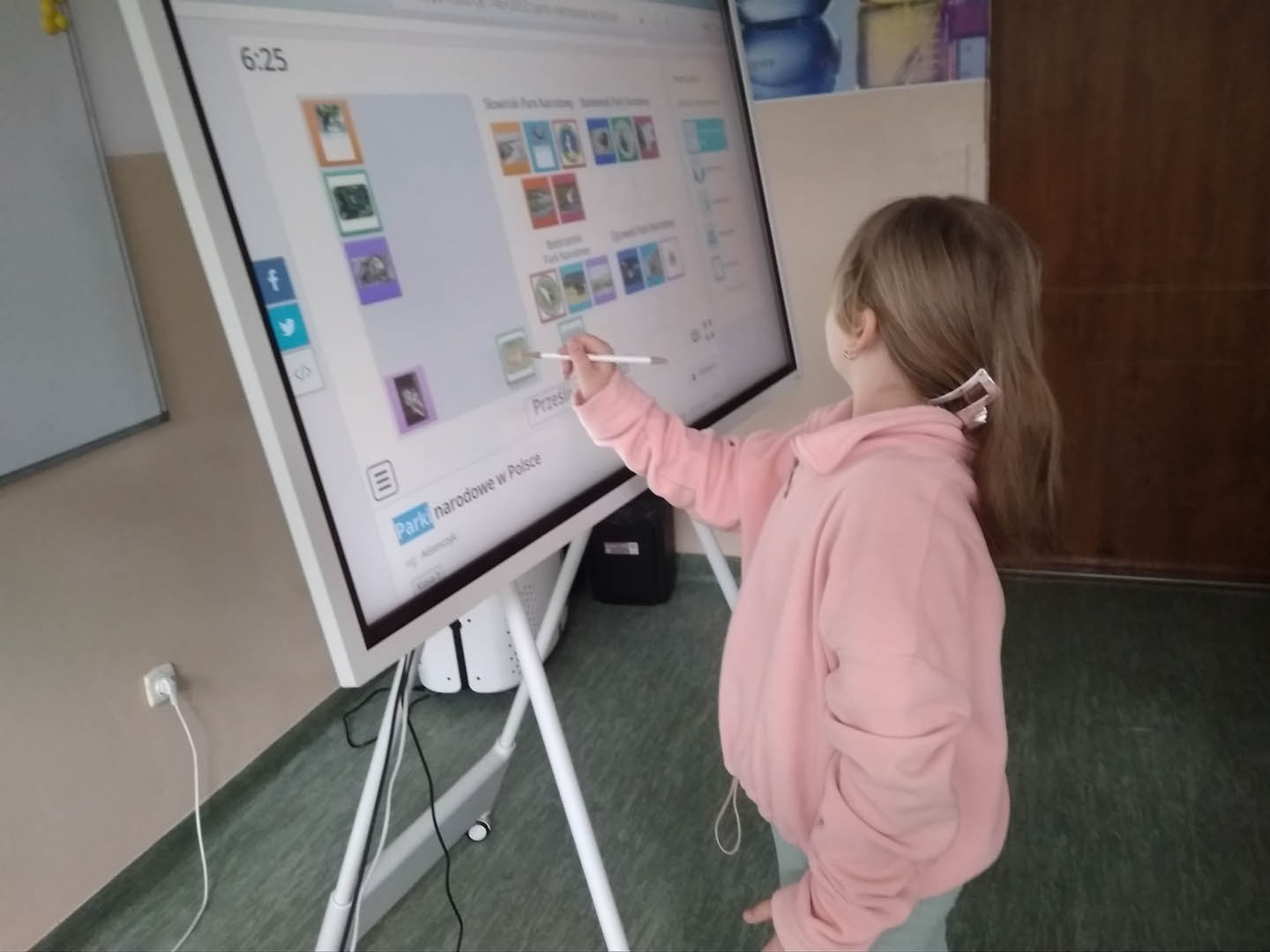 W dniu 5 czerwca 2023 r. kl. III b uczestniczyła w zajęciach edukacji przyrodniczej z wykorzystaniem tablicy interaktywnej zakupionej w ramach programu „Laboratoria przyszłości”. Uczniowie utrwalali wiedzę na temat parków narodowych znajdujących się w Polsce. Bardzo chętnie i z dużym zainteresowaniem wykonywali ćwiczenia doskonalące i systematyzujące poznane  wiadomości dotyczące rozpoznania konkretnego parku na podstawie jego cech charakterystycznych, takich jak: flora, fauna, elementy krajobrazu i prawidłowe przyporządkowanie lokalizacji tego parku na mapie Polski. Ponadto w czasie zajęć uczniowie doskonalili zrozumienie pojęć: „ścisła ochrona gatunkowa roślin i zwierząt”, „rezerwat przyrody”, „pomnik przyrody”, uzasadniali potrzebę  poszanowania przyrody i tworzenia parków narodowych oraz wykazywania postawy szacunku wobec przyrody, rozwijali umiejętności logicznego myślenia, doskonalili umiejętność wykorzystania wiedzy w praktyce. Praca z tablicą interaktywną bardzo uatrakcyjniła zajęcia i sprawiła, że trzecioklasiści mieli możliwość poprzez bardzo ciekawe ćwiczenia utrwalać zdobyte wcześniej wiadomości.