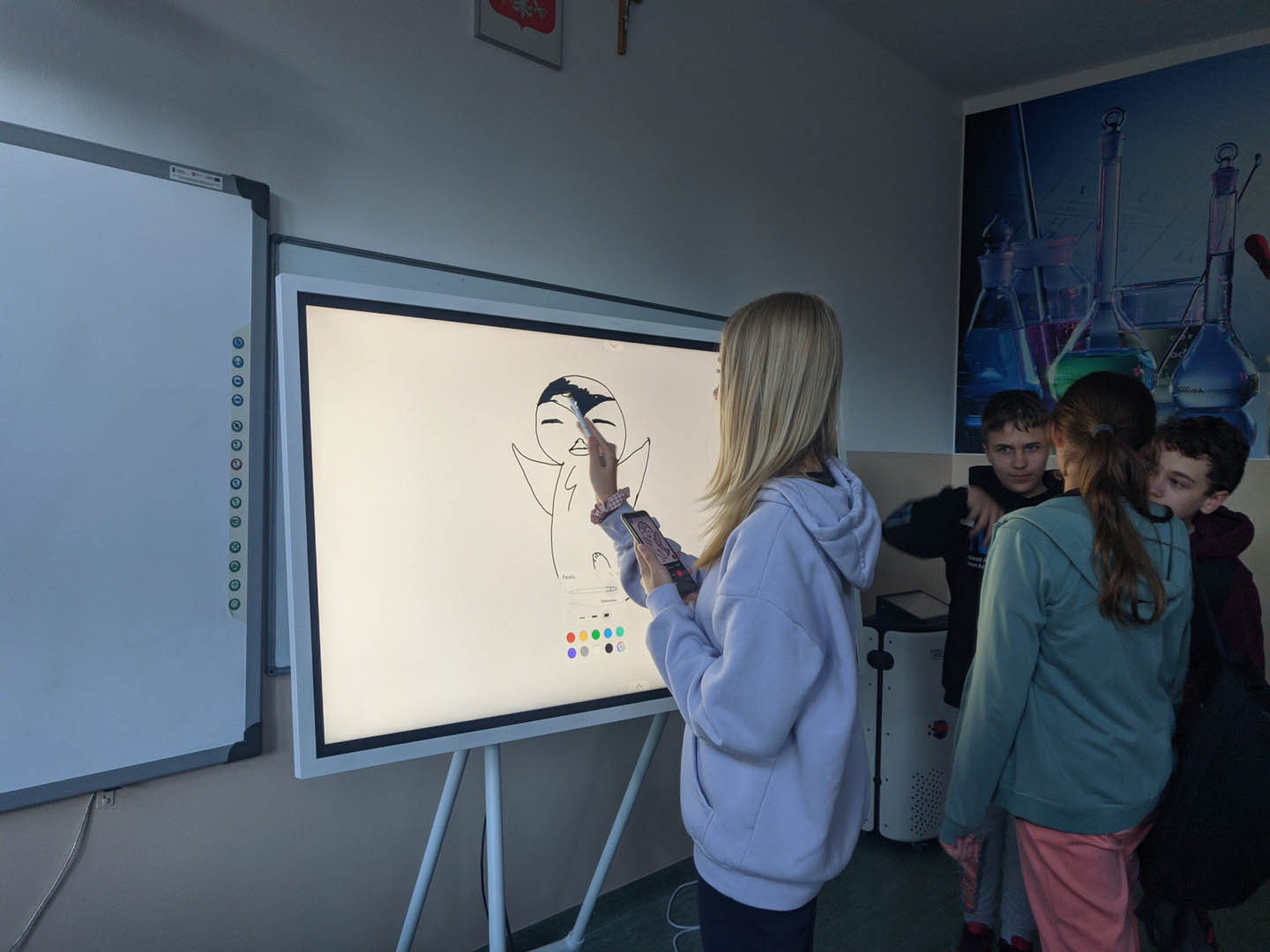Na tej pasjonującej lekcji wszyscy razem eksplorowali różne etapy produkcji filmowej. Tablica interaktywna stała się ich polem do kreatywnych poszukiwań, gdzie każdy mógł wyrazić swoją artystyczną duszę i wykazać się pomysłowością, tworząc unikalne sceny i postacie filmowe.