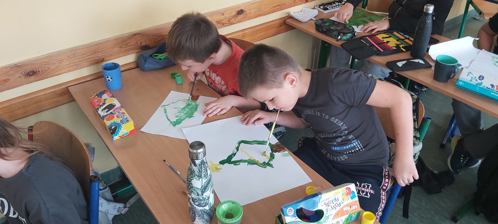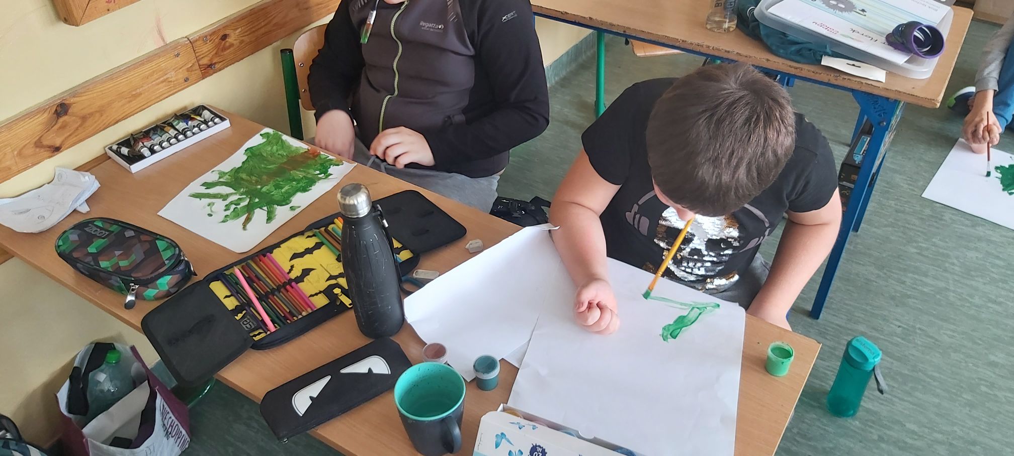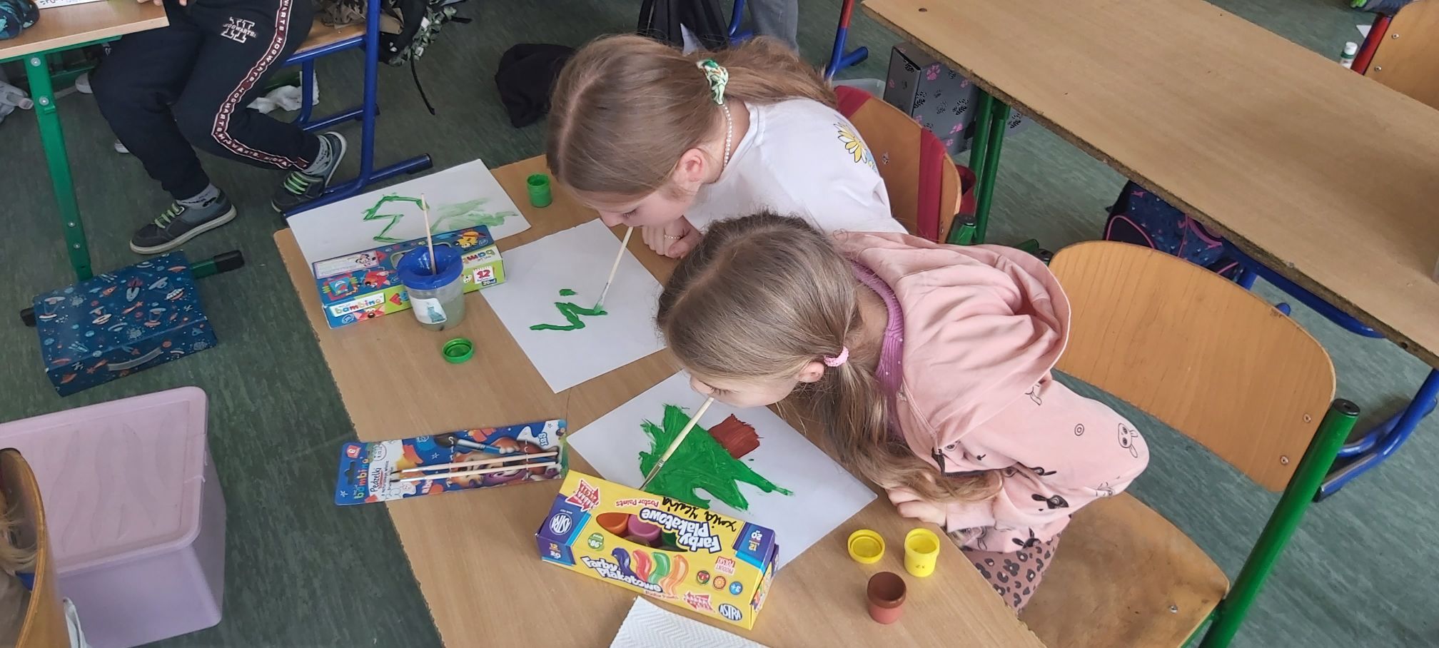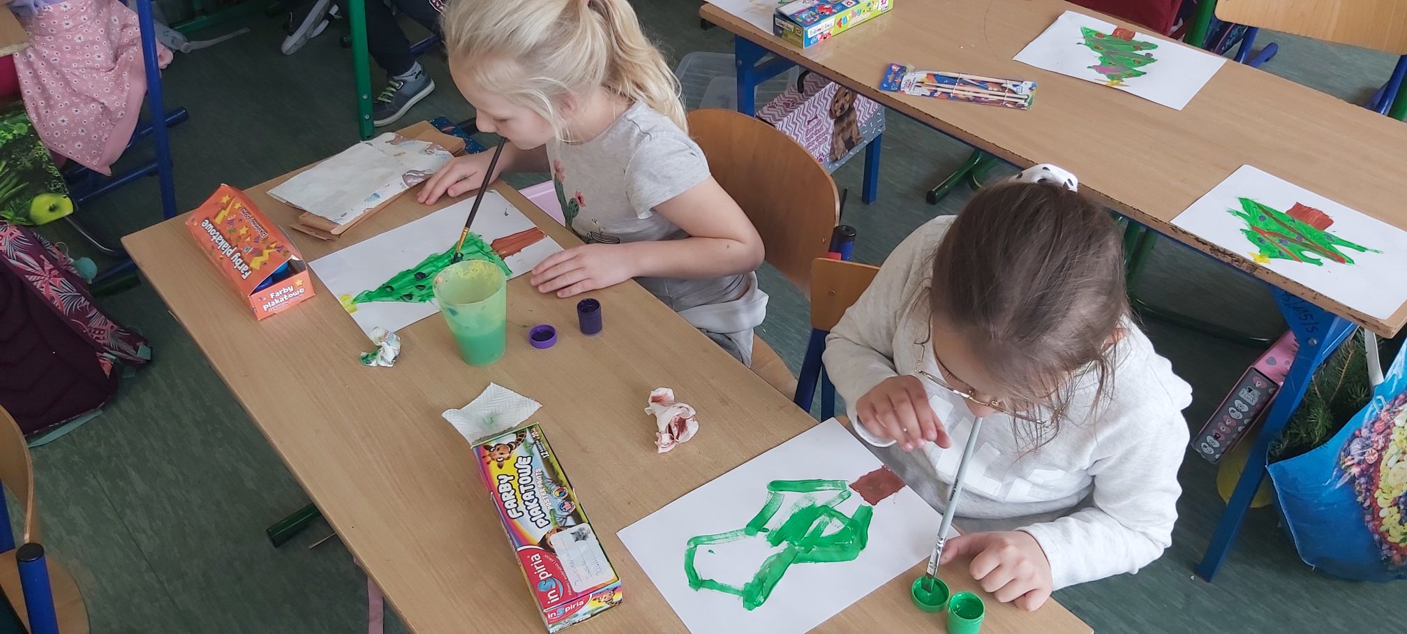 3 grudnia obchodzony jest Międzynarodowy Dzień Osób z Niepełnosprawnościami. Uczniowie klasy trzeciej w ramach projektu “Każdy inny – wszyscy równi” rozmawiali w trakcie zajęć o sytuacji osób niepełnosprawnych, a następnie podjęli próbę wykonania świątecznego obrazka bez użycia rąk. Dzieci zdecydowały się na malowanie ustami i stopami. Okazało się to dużym wyzwaniem. Wykonanie drobnych czynności, na które zwykle nie zwraca się uwagi, stało się sporym problemem. Trzecioklasiści podeszli do zadania poważnie i z dużym zaangażowaniem, a efekty ich pracy zostały uwiecznione na zdjęciach.
