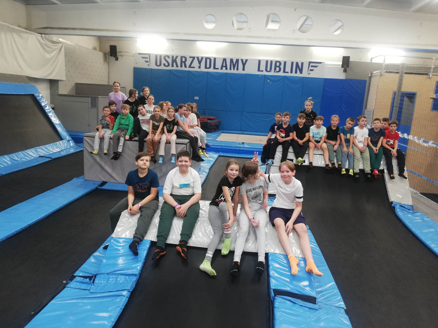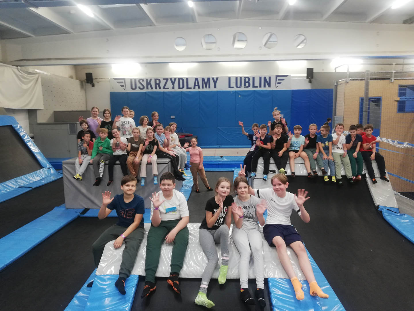 Uczniowie klas piątych zdecydowali się spędzić mikołajki wspólnie i aktywnie. Tego dnia wyjechali na wycieczkę do Lublina na zajęcia sportowe w parku trampolin. Pod fachowym okiem trenerów mogli skakać na trampolinach i poduszkach powietrznych, wspinać się po ściance, w strefie parkour pokonywać różne wymyślne przeszkody, a nawet grać w aeroball. Ćwiczenia proponowane przez instruktorów wcale nie były łatwe i wymagały nie tylko skoczności, ale także silnych mięśni ramion, nóg, a także umiejętności utrzymania równowagi. Trenerzy pokazywali uczniom takie ćwiczenia, które śmiało można już zaliczyć do akrobatyki sportowej, jak na przykład salta. Dodatkowo zajęcia uatrakcyjniły konkursy, bo nic tak nie podnosi poziomu emocji jak rywalizacja, oczywiście w duchu fair play. Wszystkie zabawy odbywały się według ściśle określonych zasad tak, aby były bezpieczne dla uczestników. Po dwóch godzinach świetnej zabawy uczestnicy wycieczki udali się na obiad w restauracji popularnej sieci, a późnym popołudniem wrócili do domów.