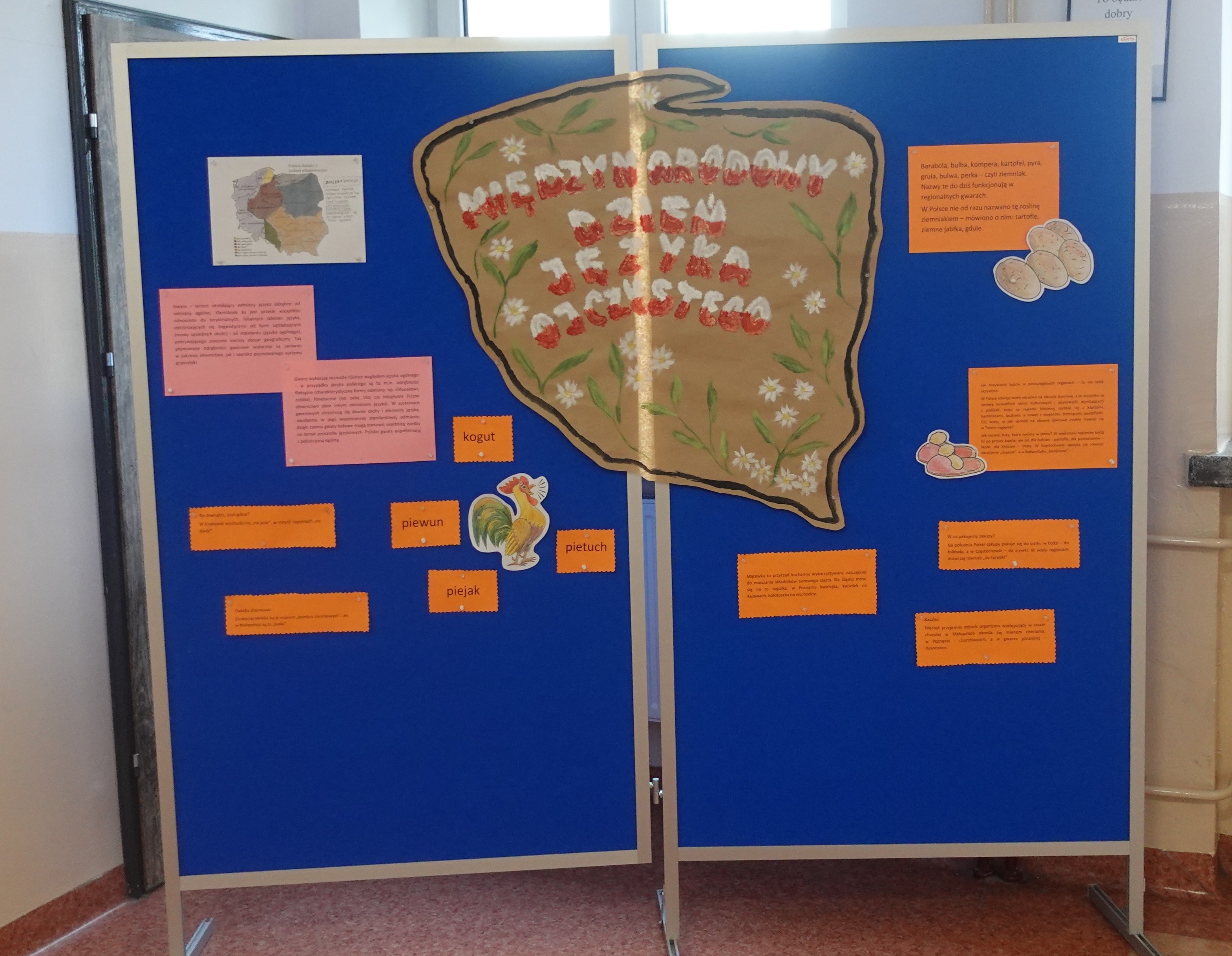 W tym roku w naszej szkole z okazji tego święta postanowiliśmy „reanimować” archaizmy. Uczniowie klas 5-8 podczas lekcji języka polskiego wzięli udział w projekcie poprzez dwa działania. Najpierw zmierzyli się z grą online polegającą na odpowiednim dopasowaniu znaczeń współczesnych wyrazów do kilkunastu archaizmów. Drugim etapem projektu był wybór „króla” wyrazów, które wyszły z użycia. Wyniki głosowania zostały zaprezentowane na gazetce na korytarzu szkolnym. Pierwsze miejsce na podium zajął stolec, czyli tron; na drugim miejscu znalazł się huncwot – łobuz; na trzecim miejscu uplasował się absztyfikant – zalotnik.